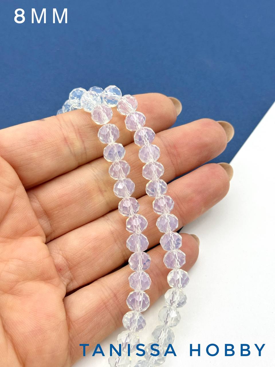 Хрусталь Рондели 8мм, лунный камень, нить Х021