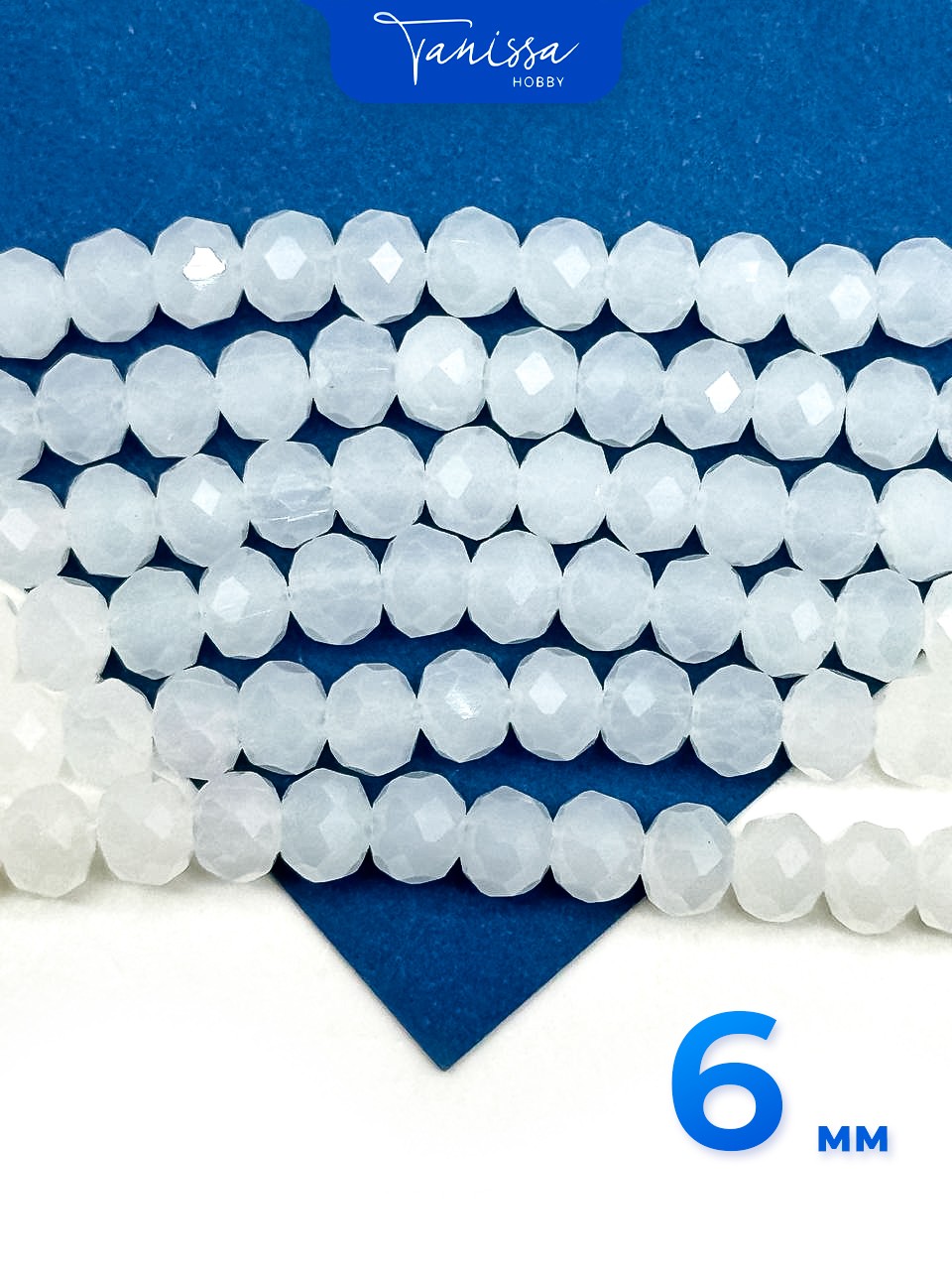 Хрусталь Рондели 6мм, белый опал, нить. Х083