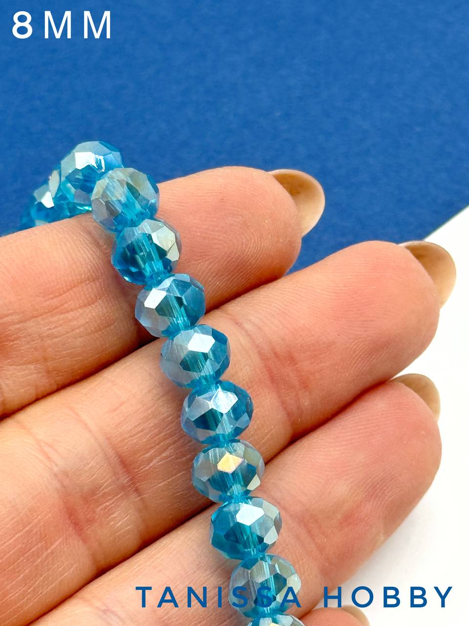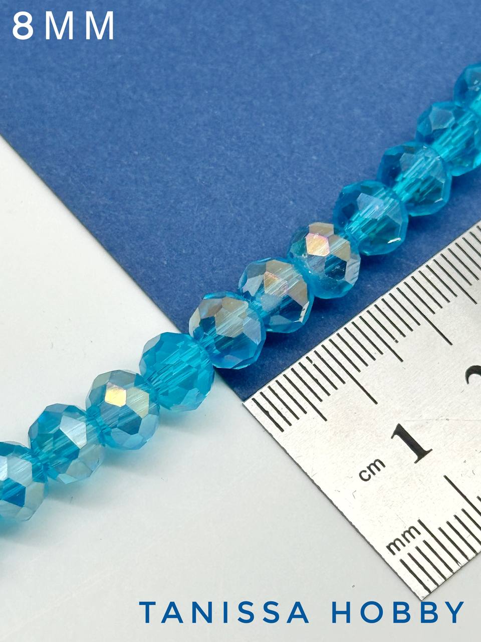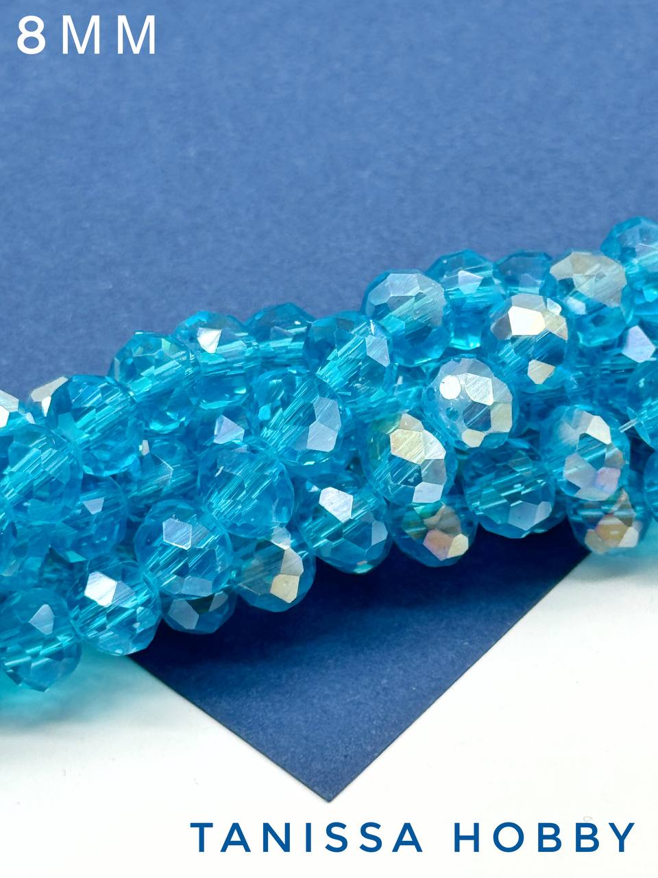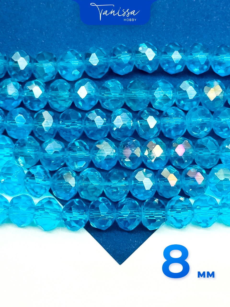 Хрусталь Рондели 8мм, голубой АВ, нить Х087