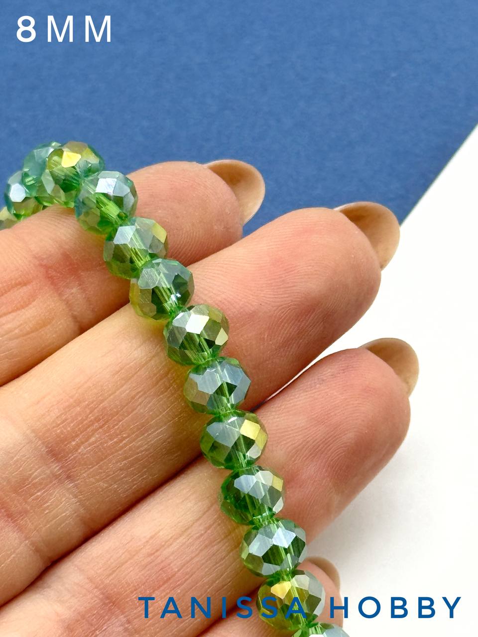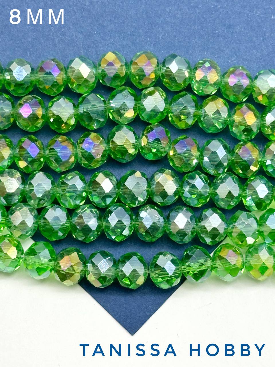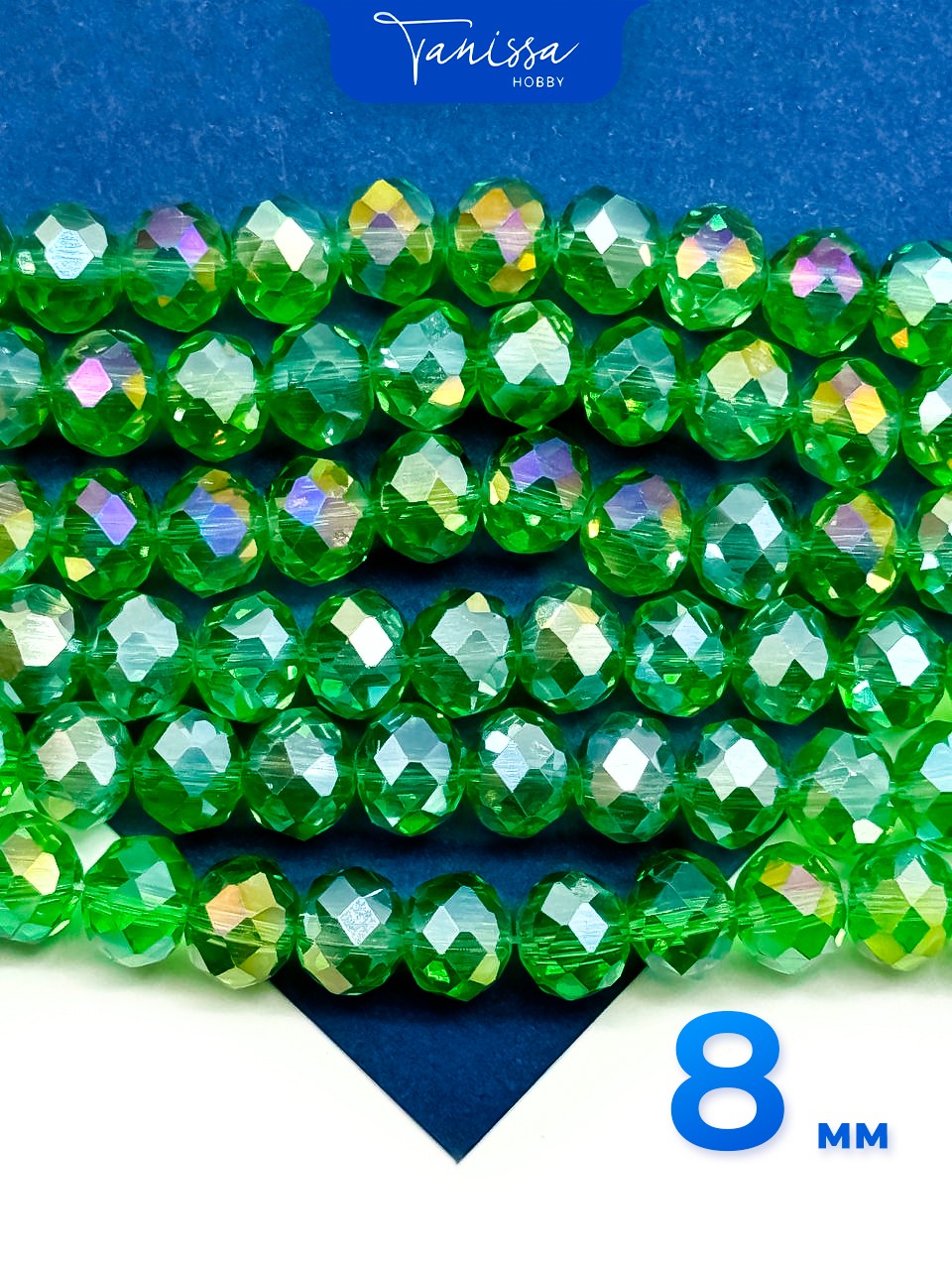 Хрусталь Рондели 8мм, зеленый травяной АВ, нить. Х092