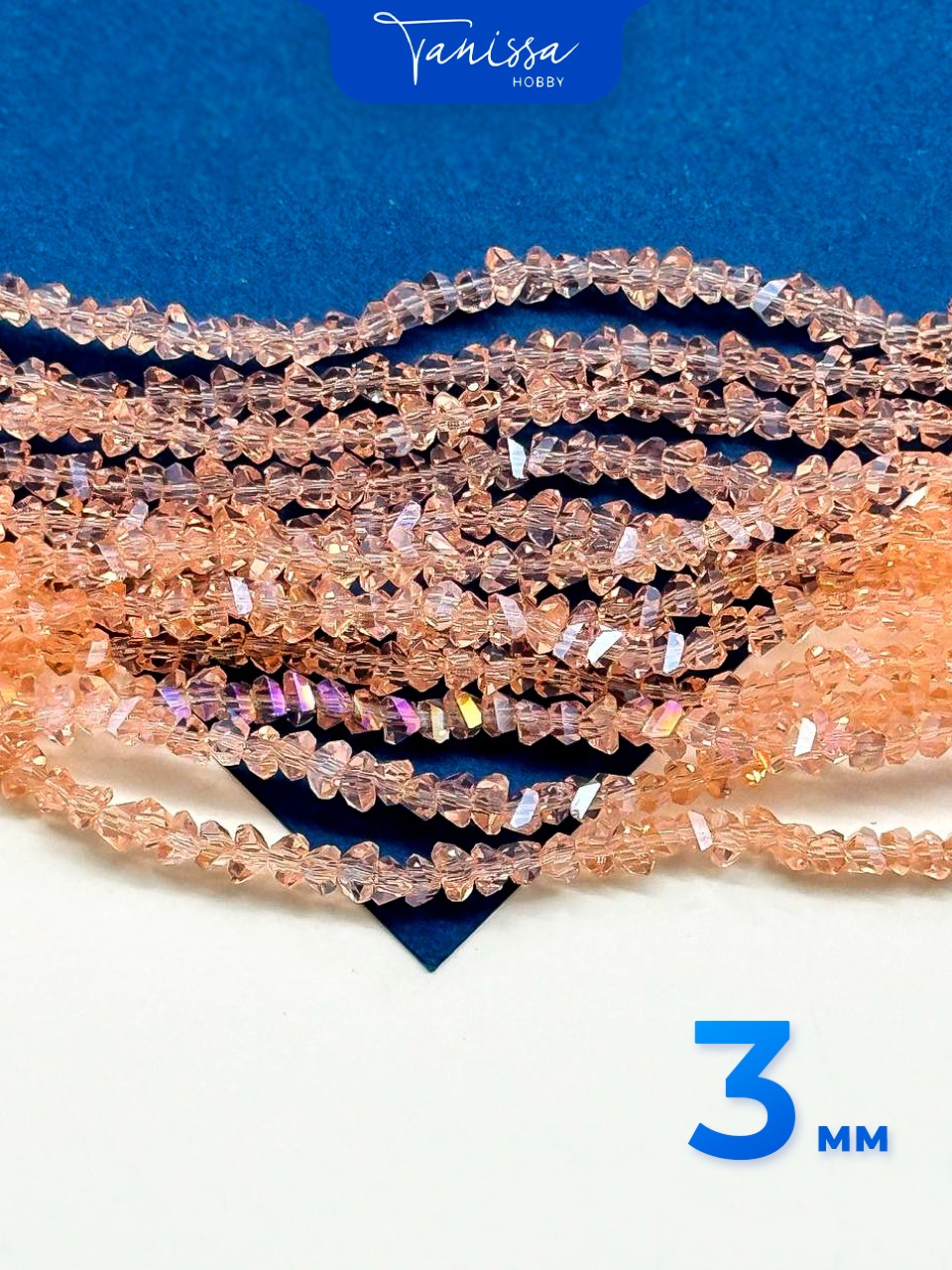 Хрусталь крошка треугольник 3мм, розовый персик АВ, нить. Х206