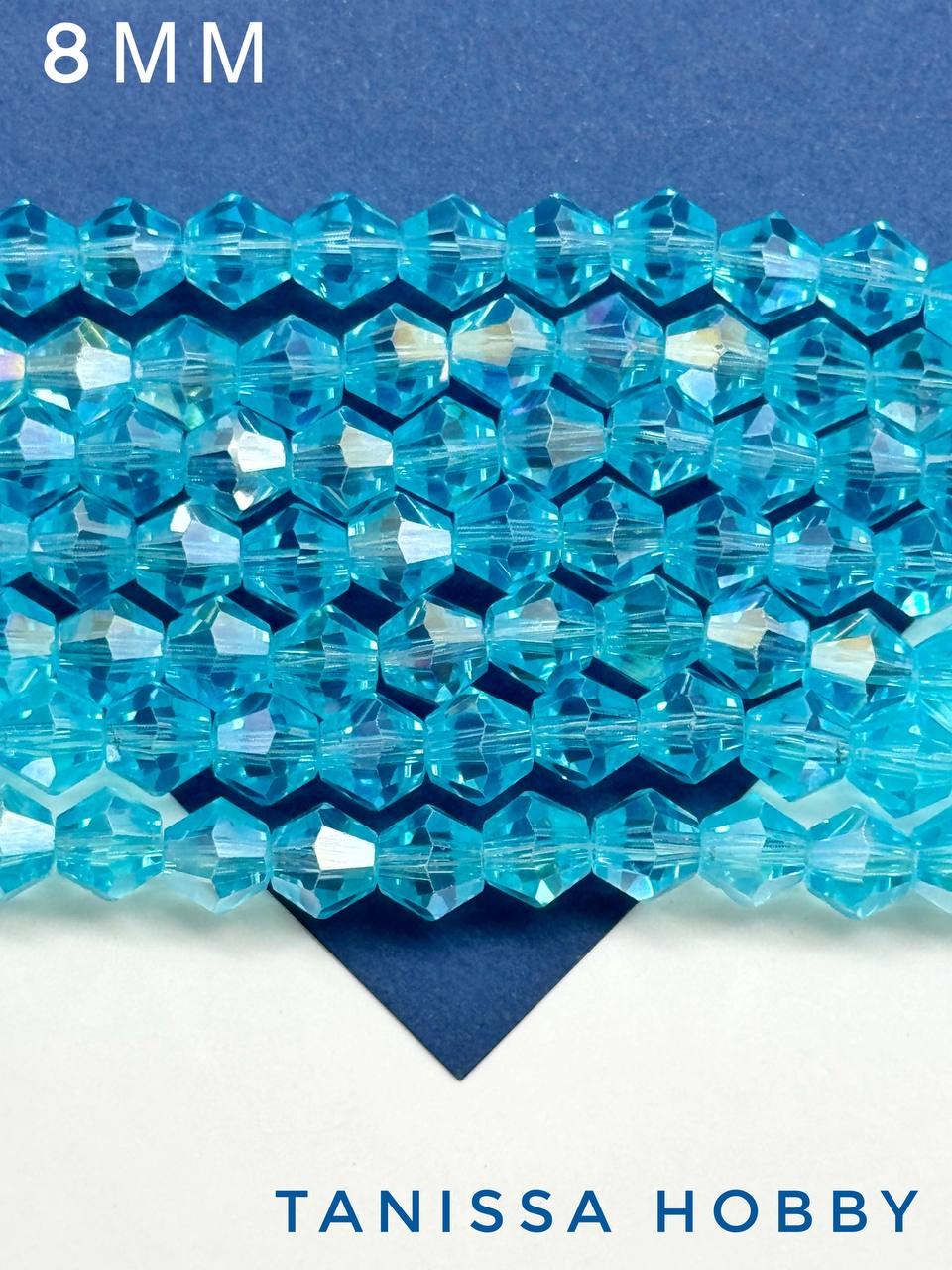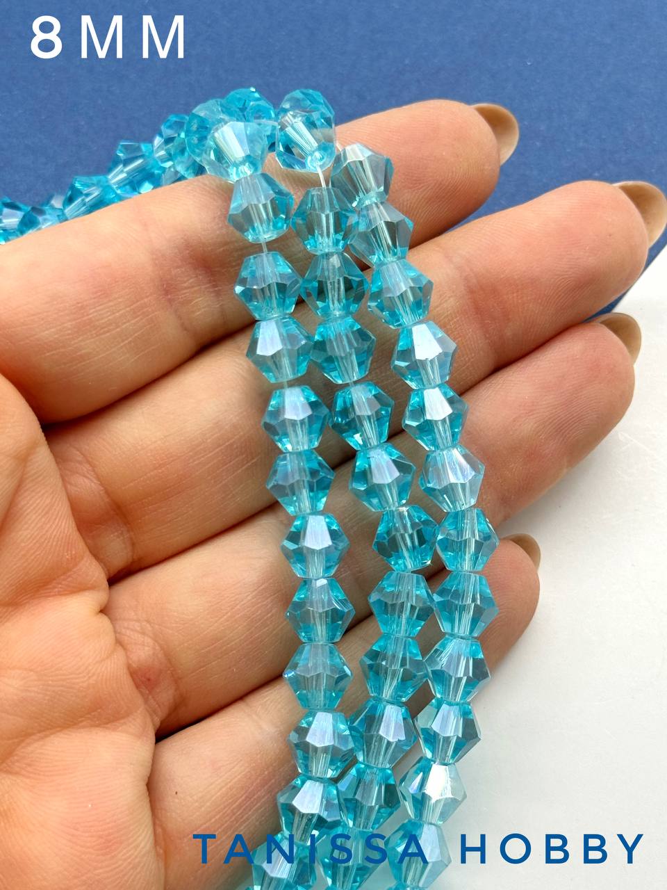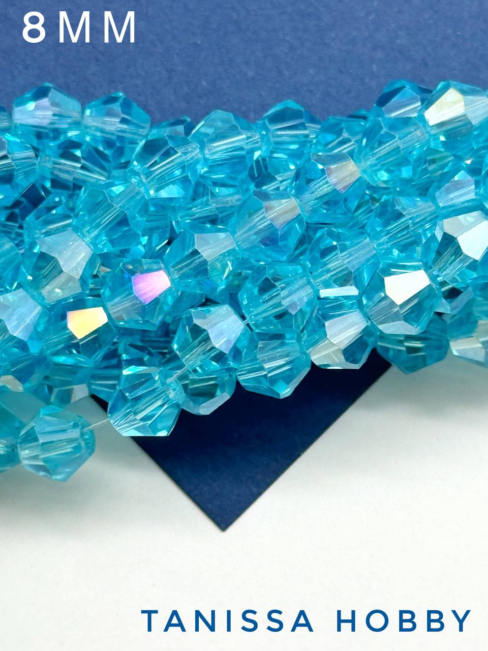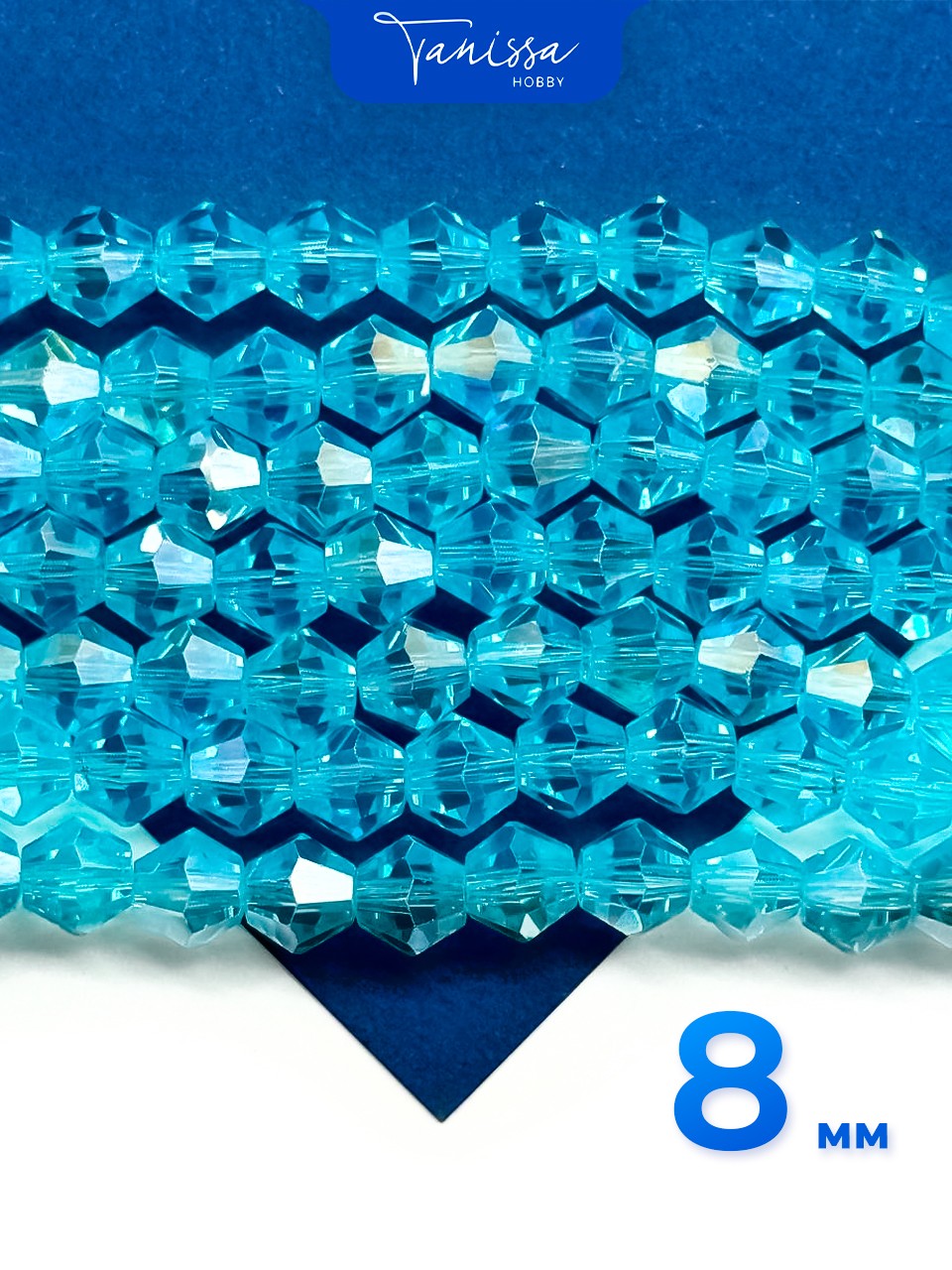 Хрусталь Биконусы 8мм, голубой АВ, нить, Х171