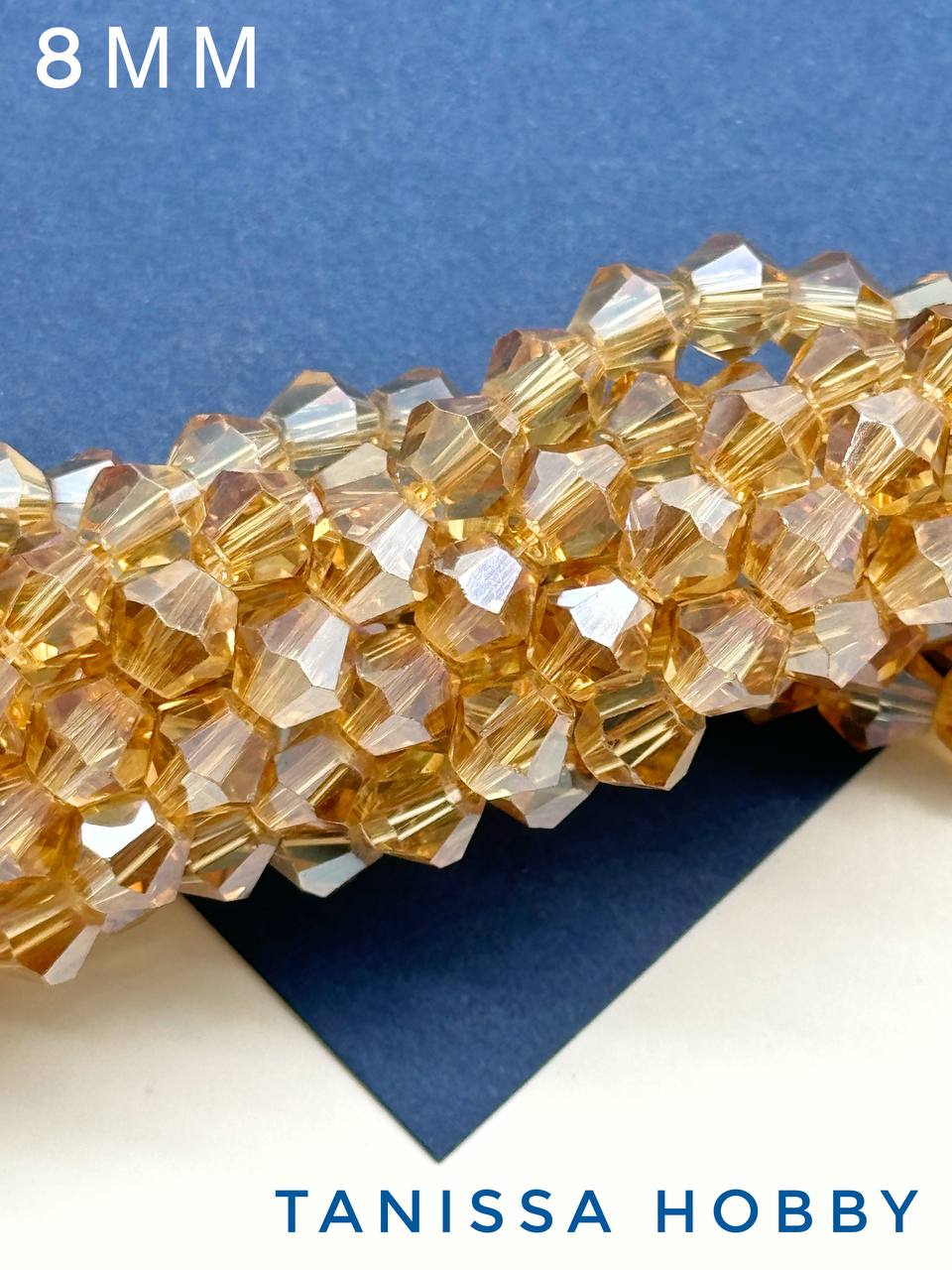 Хрусталь Биконусы 8мм, золото топаз АВ, нить, Х181
