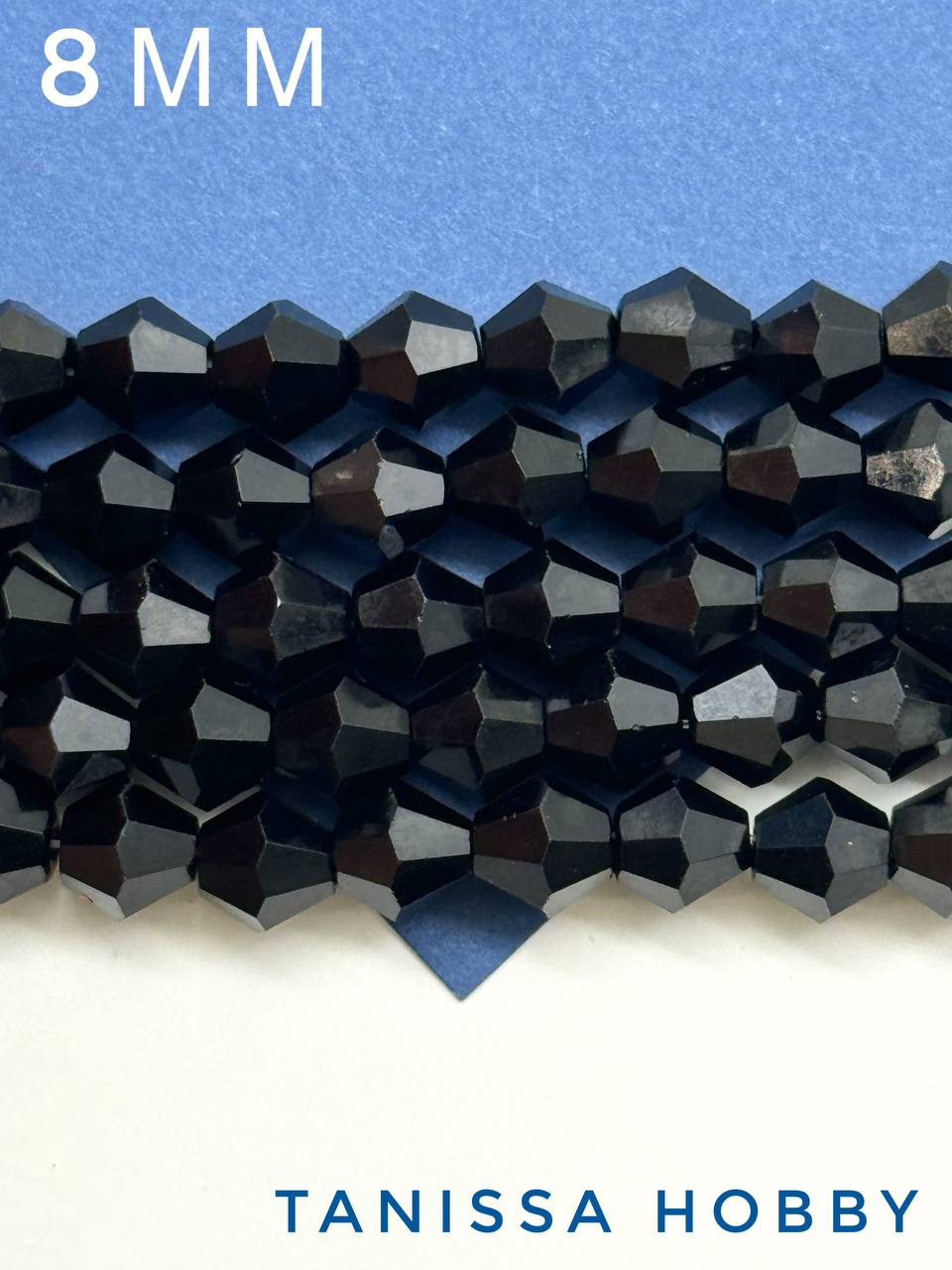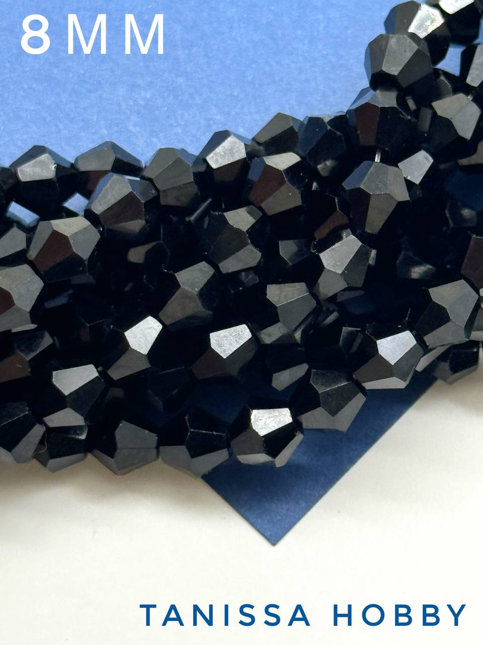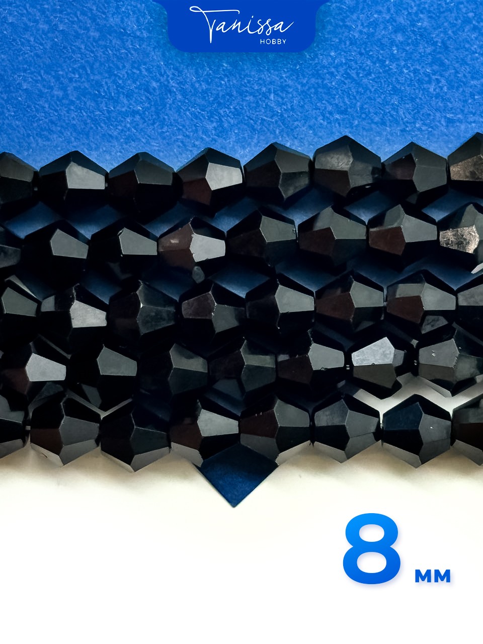 Хрусталь Биконусы 8мм, черный, нить, Х190
