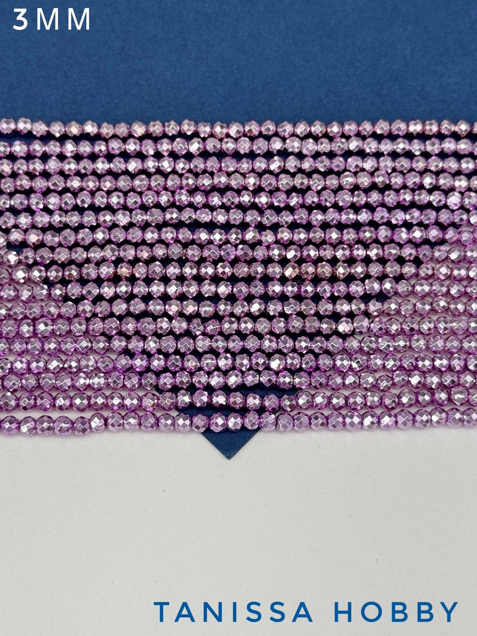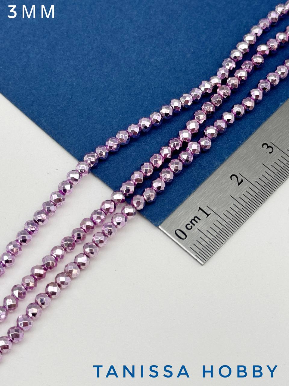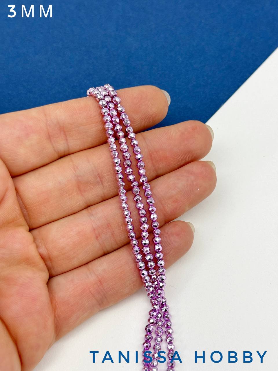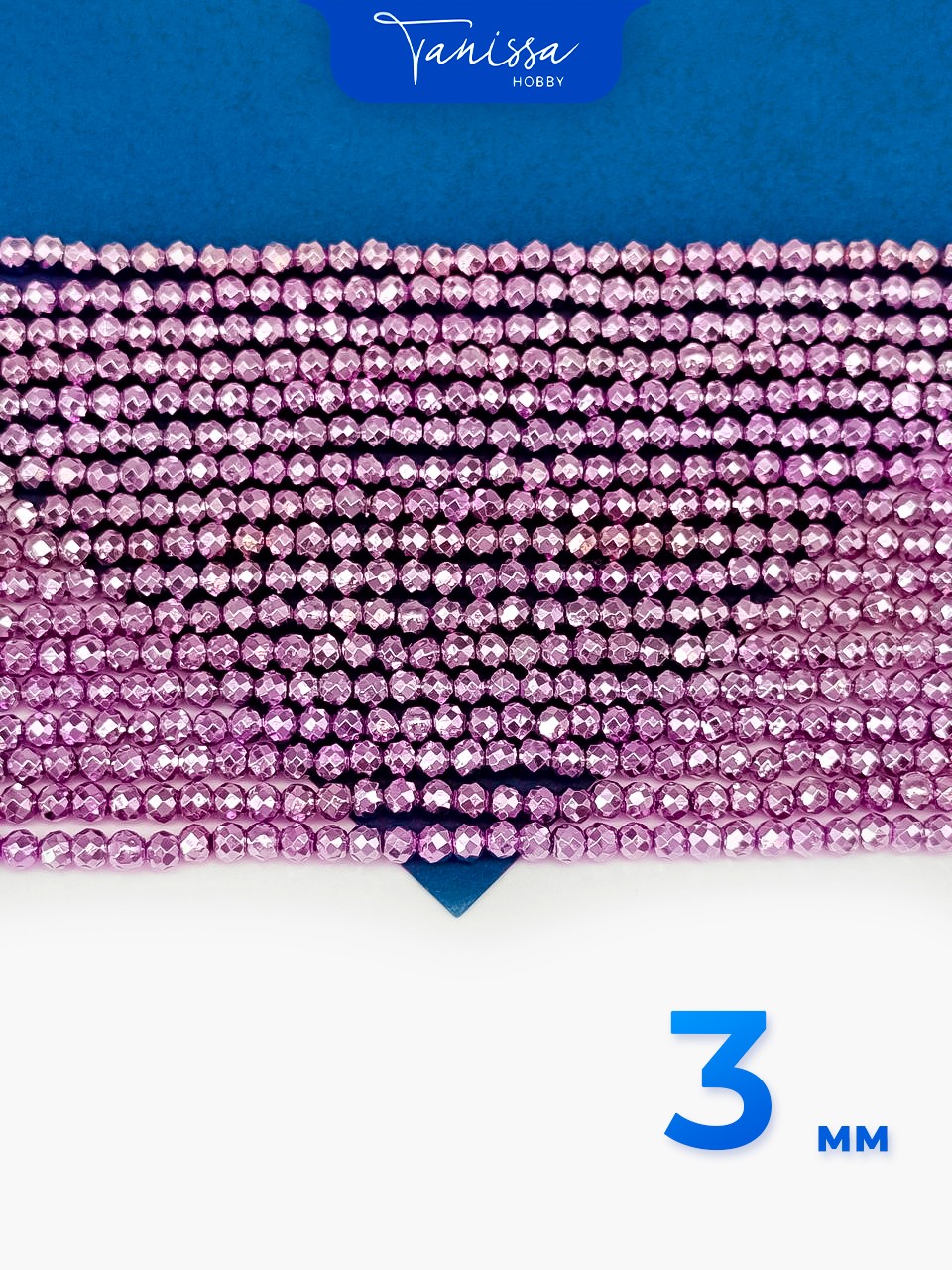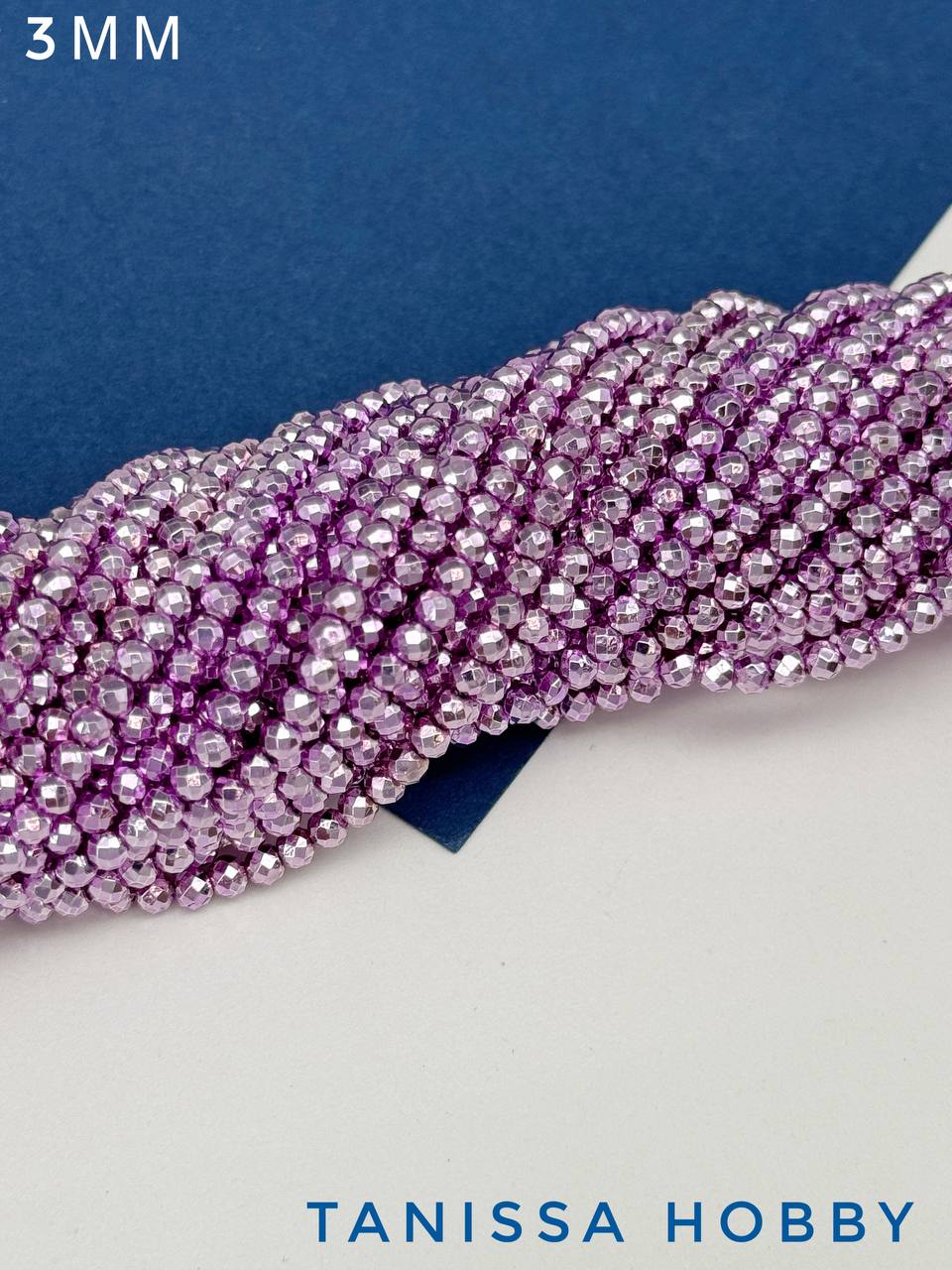 Хрусталь круглый, огранка, 3мм, фиолетовый металлик, нить, Х448