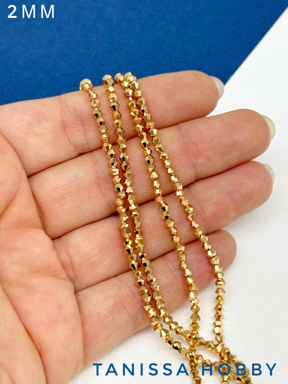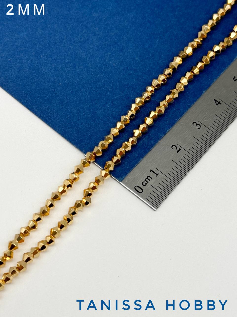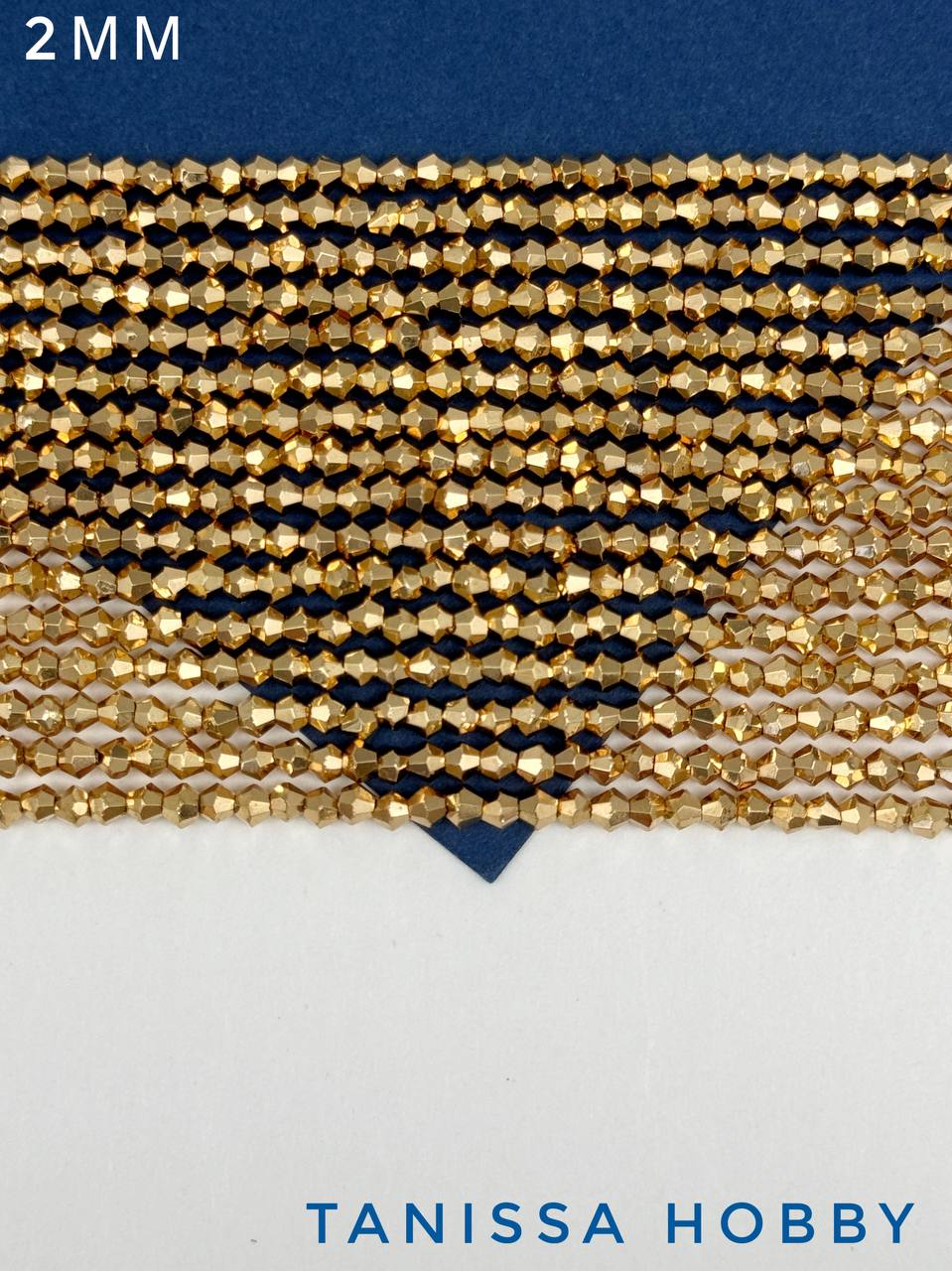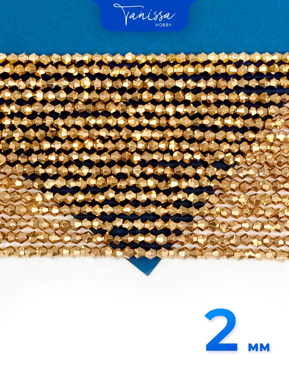 Хрусталь Биконусы 2мм, золото металлик, нить, Х462