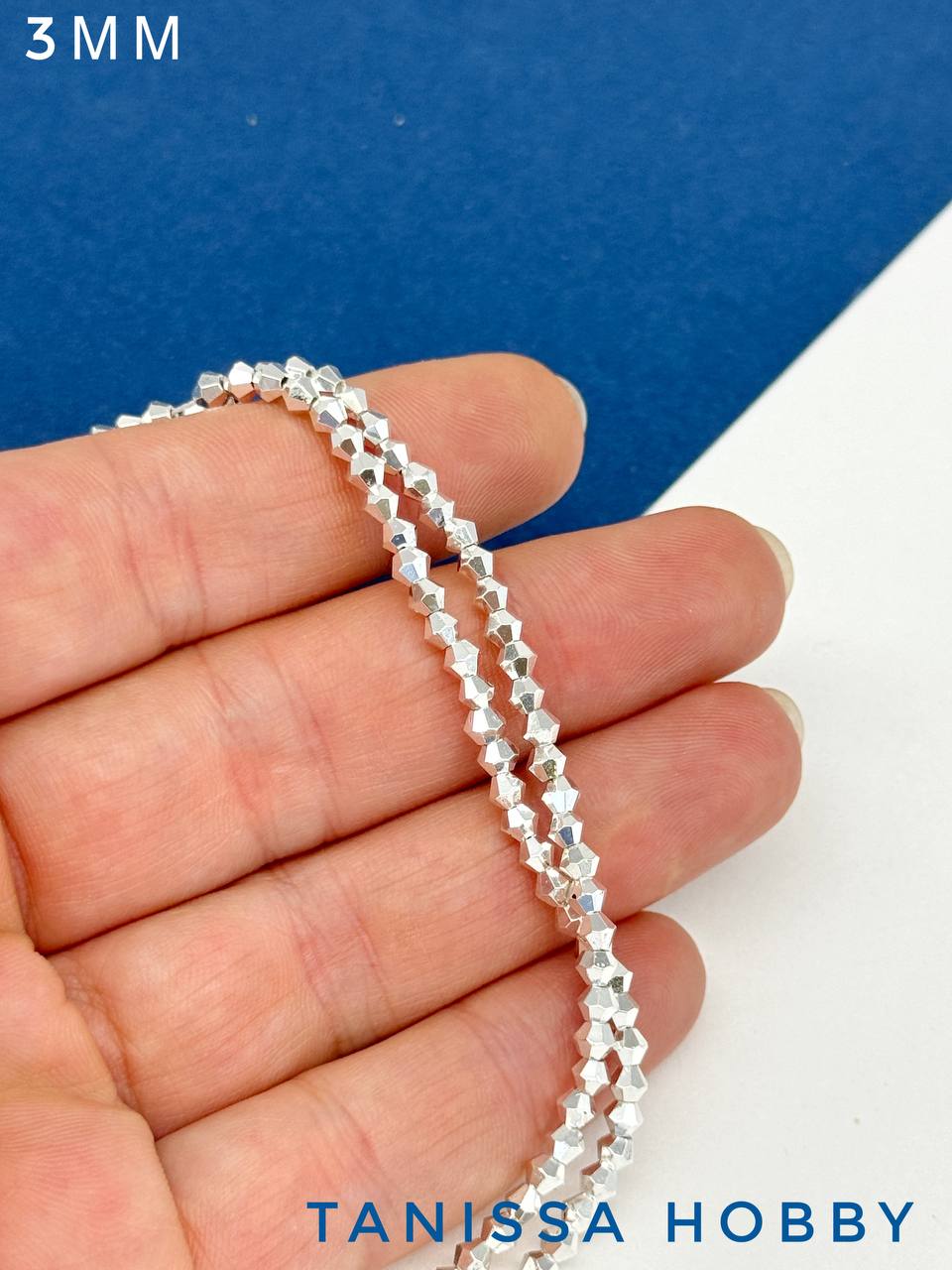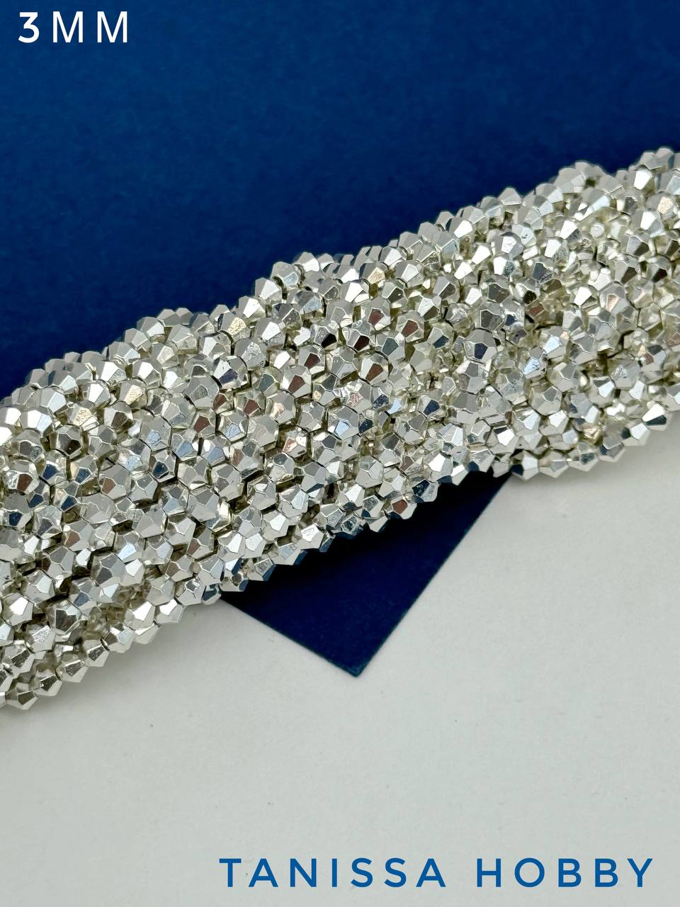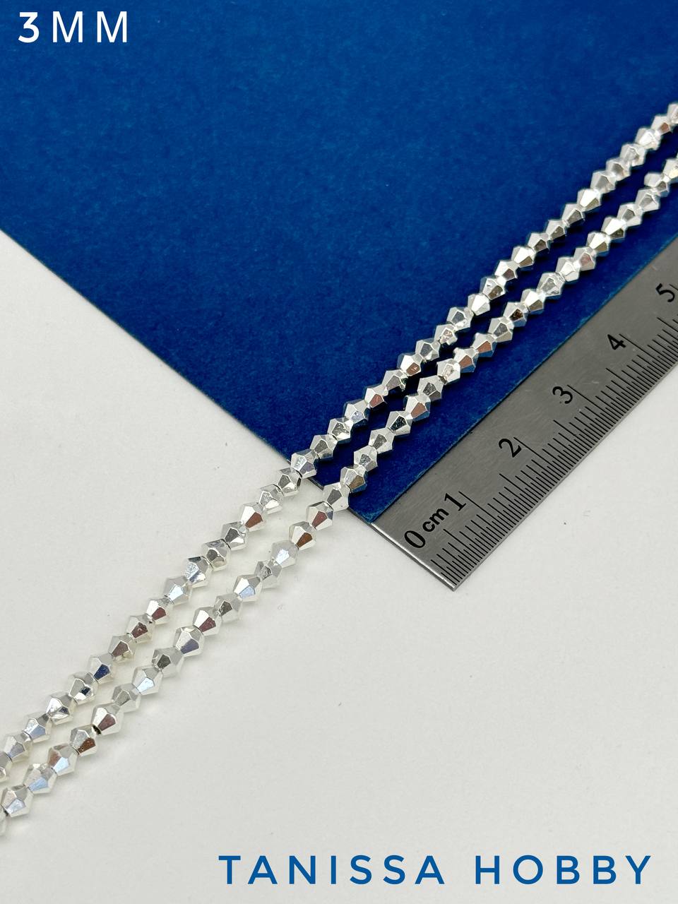 Хрусталь Биконусы 3мм, серебро металлик, нить, Х472