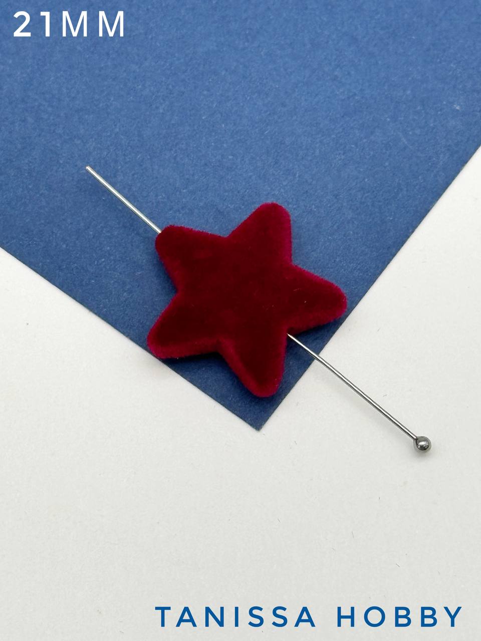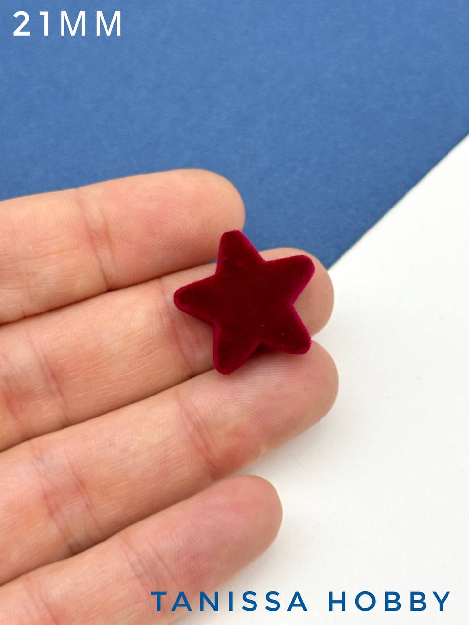 Бусина плюшевая звезда 21мм, бордовый бархат, Ю102
