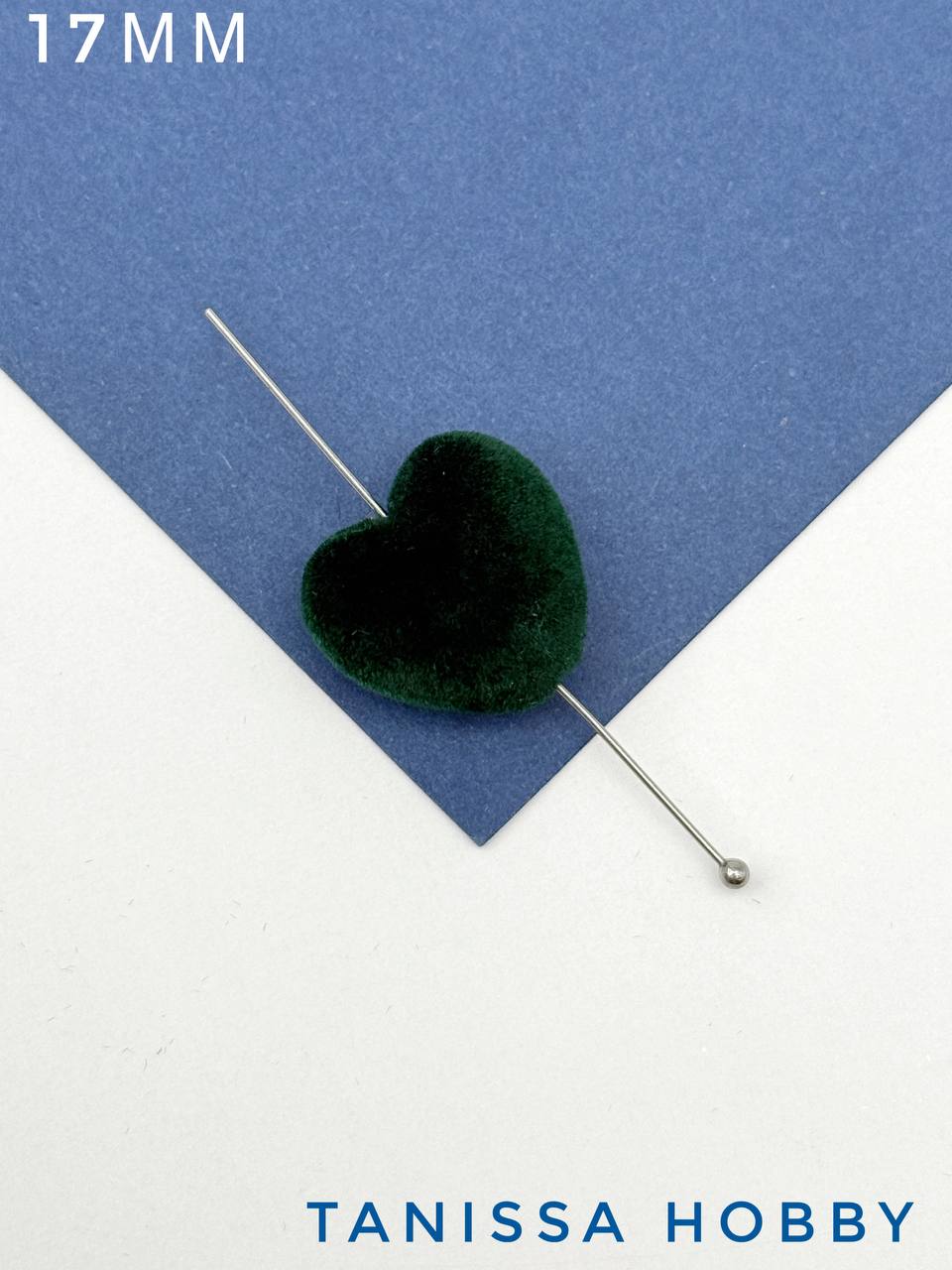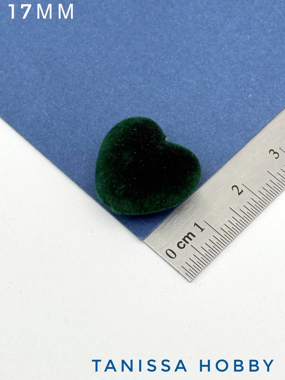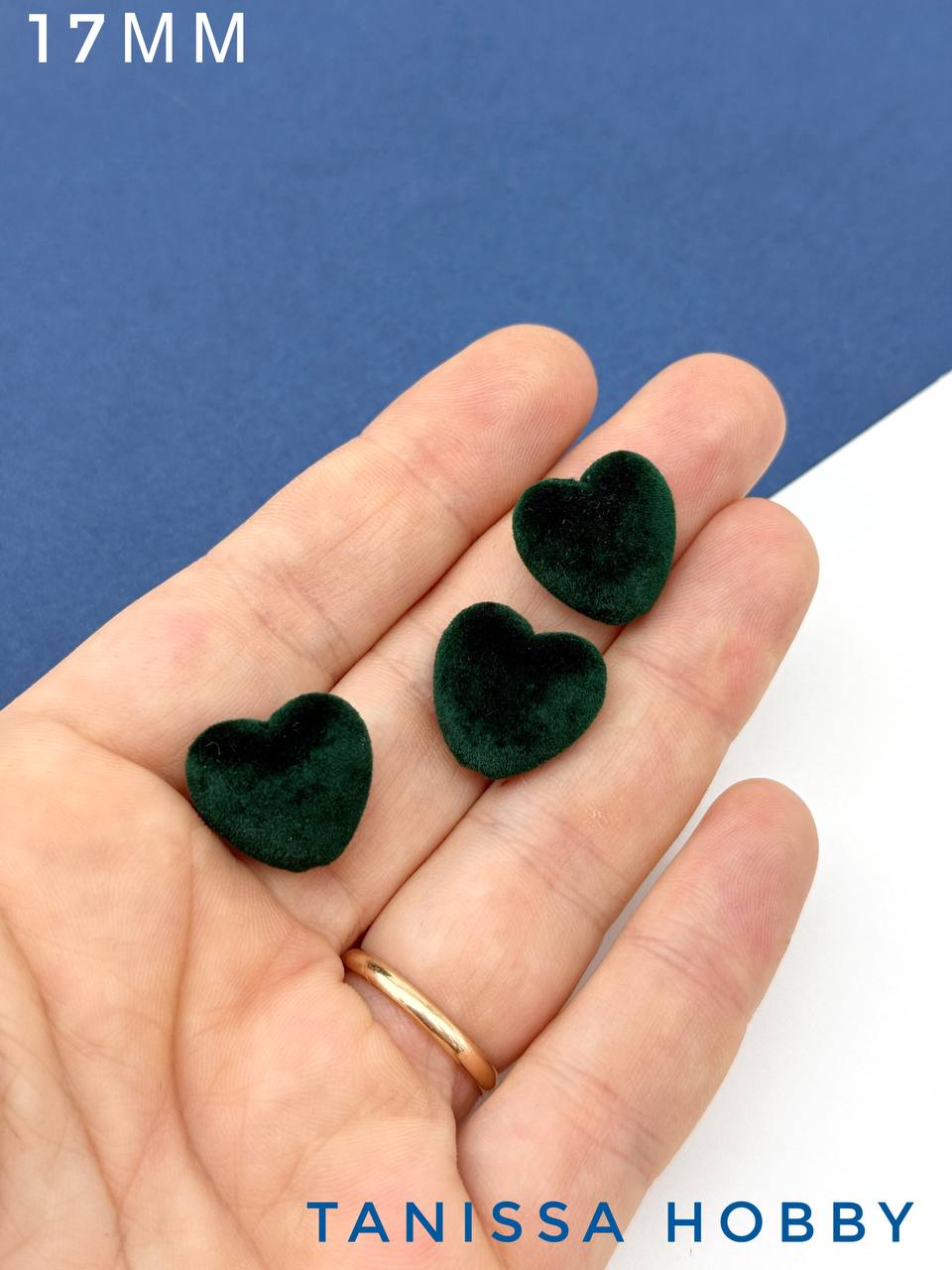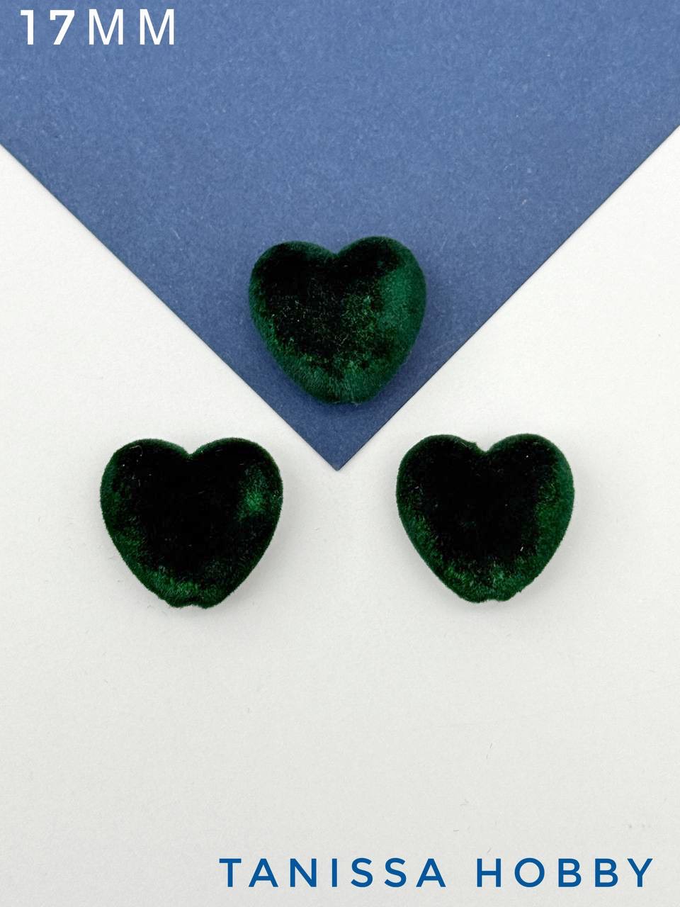 Бусина плюшевое сердце 17мм, зеленый бархат, Ю621