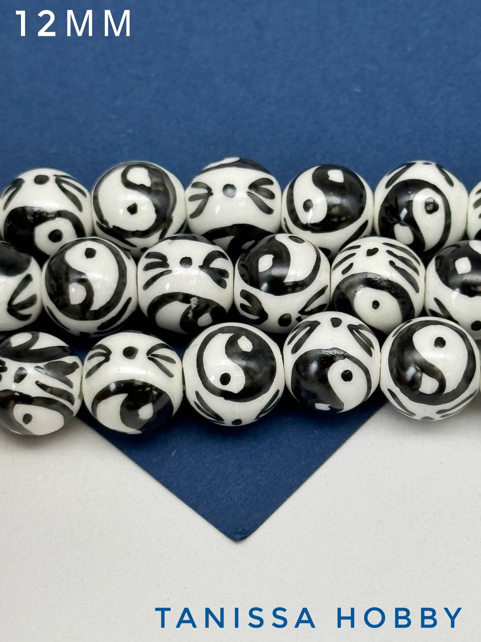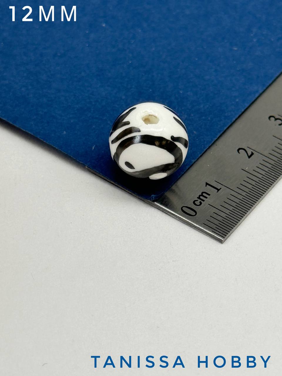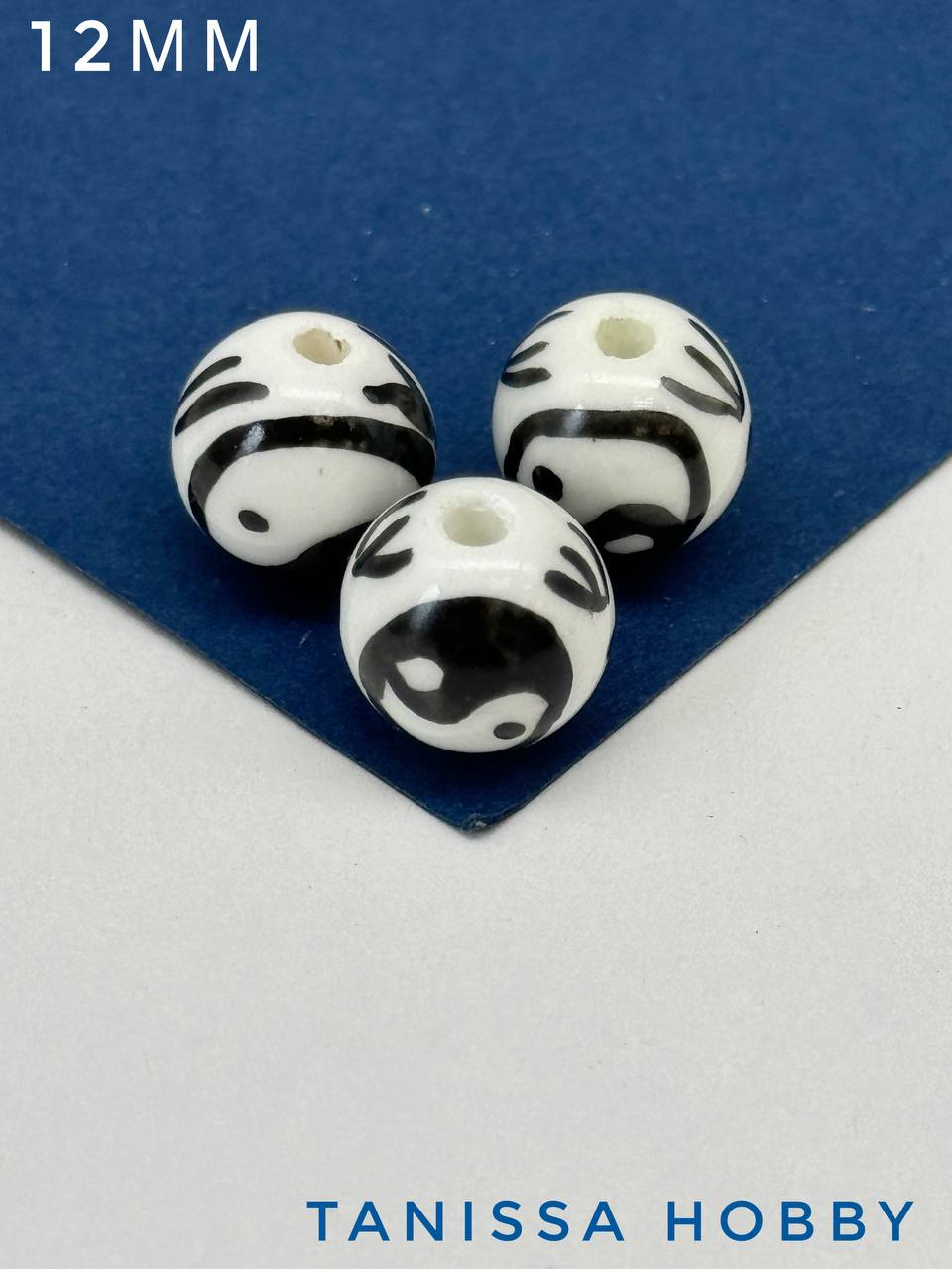 Бусина фарфоровая, 12мм, Инь-Янь, черный, штука, П061