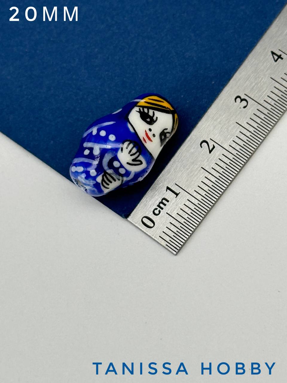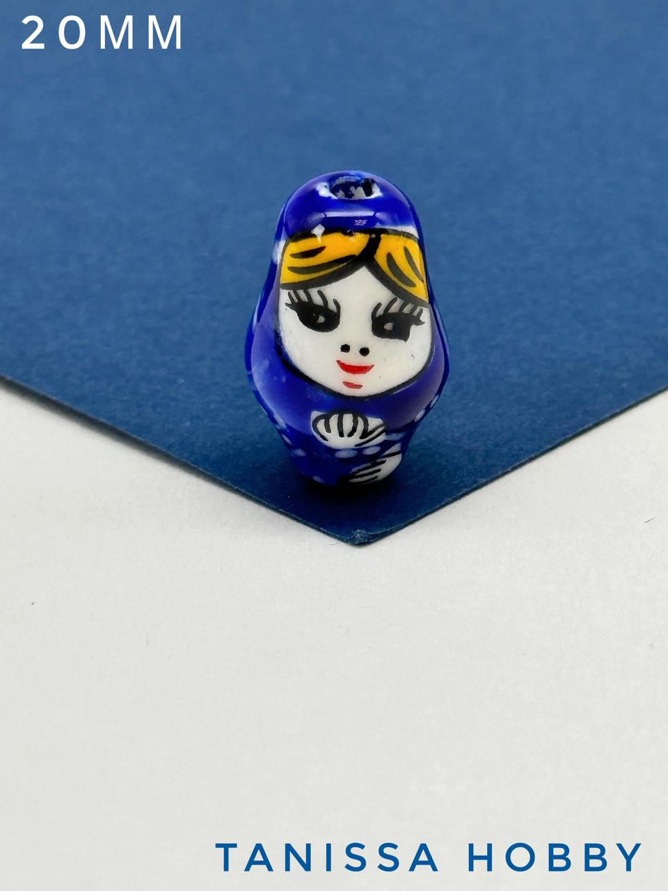 Бусина матрешка, керамика, индиго, 20мм, П086