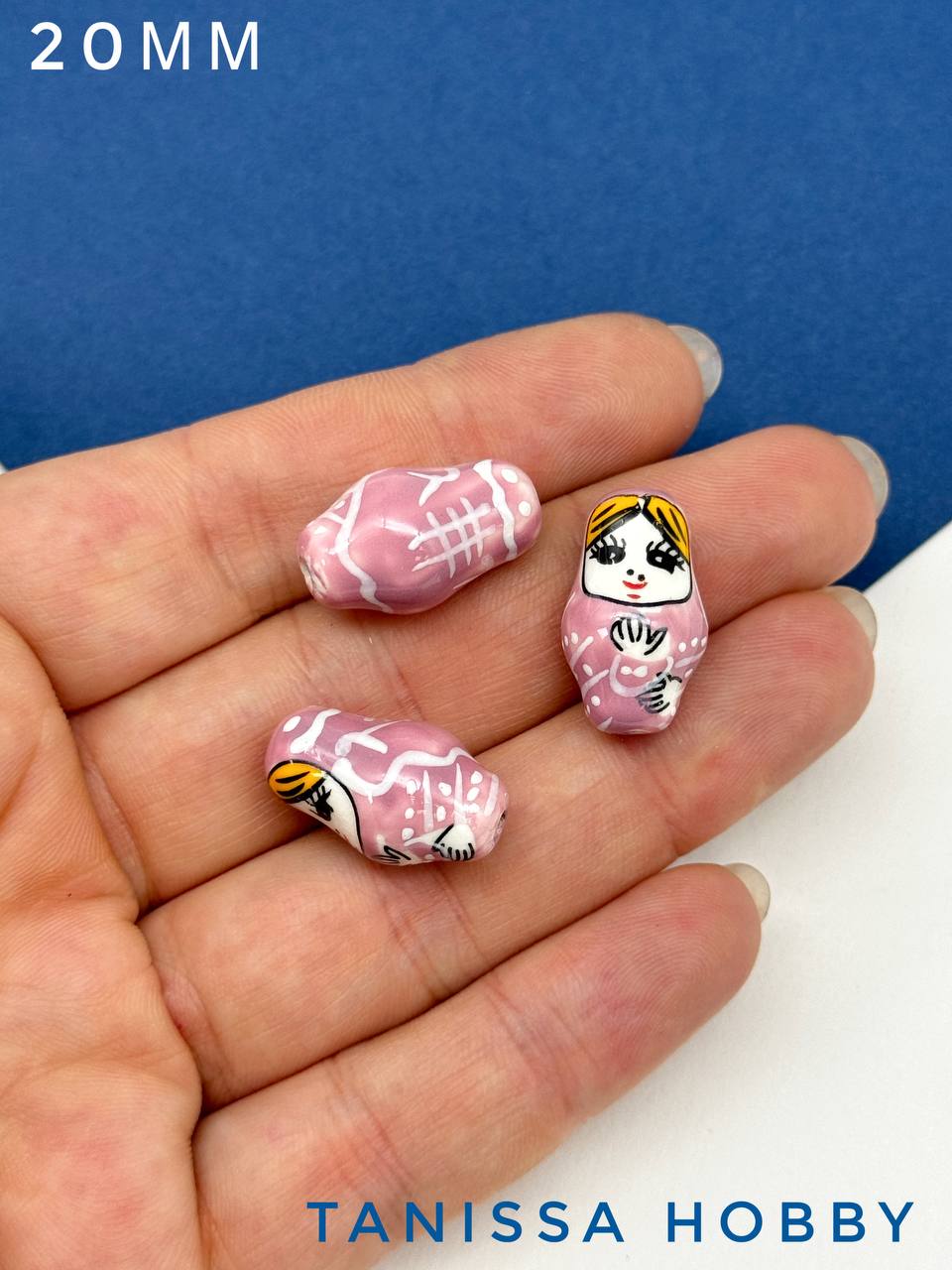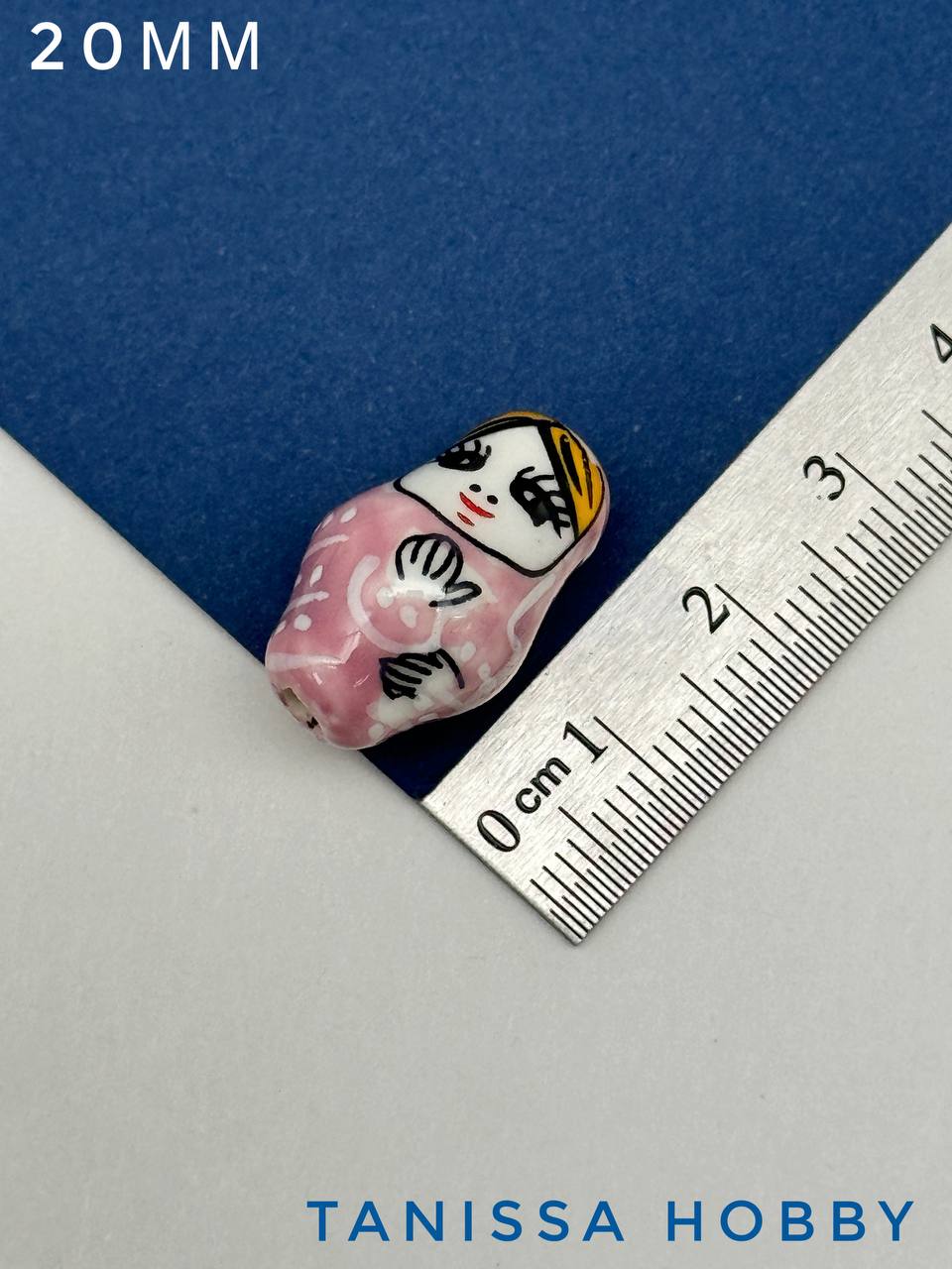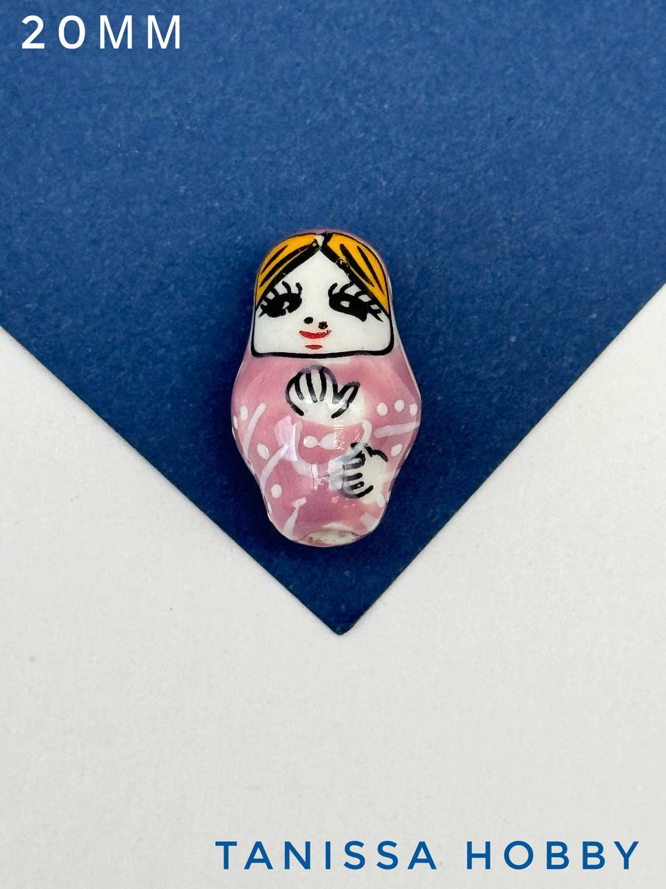 Керамическая бусина ручной работы в виде матрешки