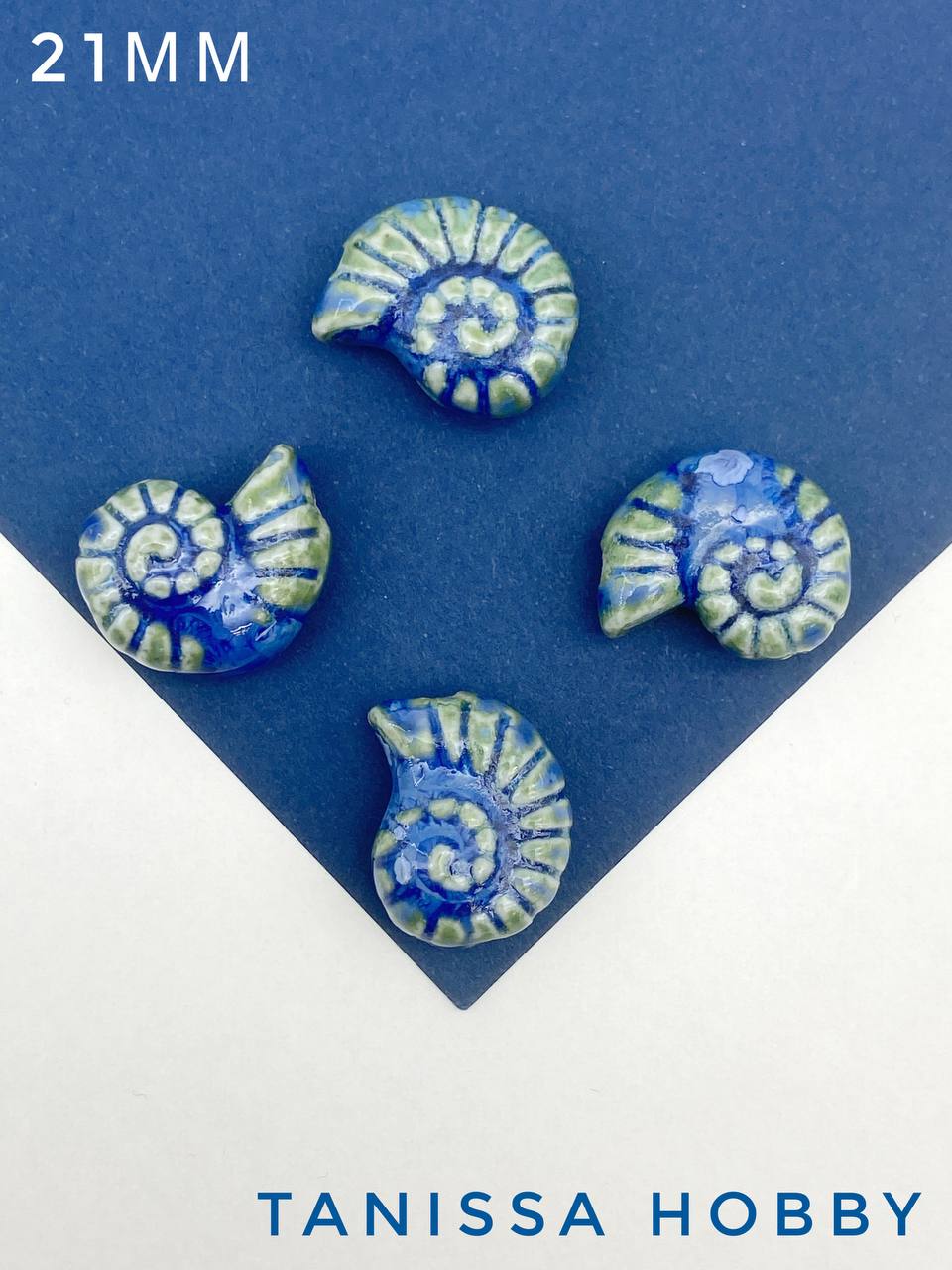 Бусина ракушка, керамика, бирюзовый голубой, штука, П167