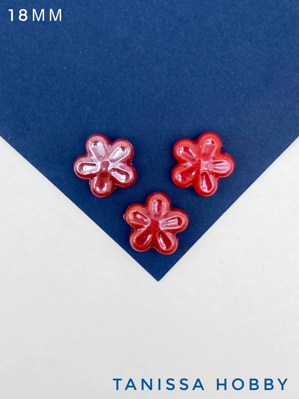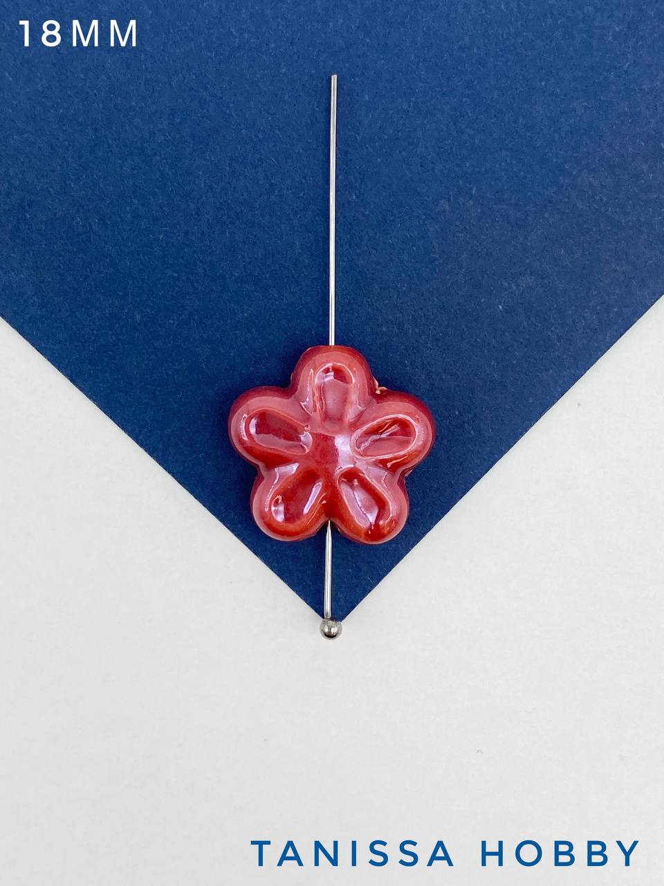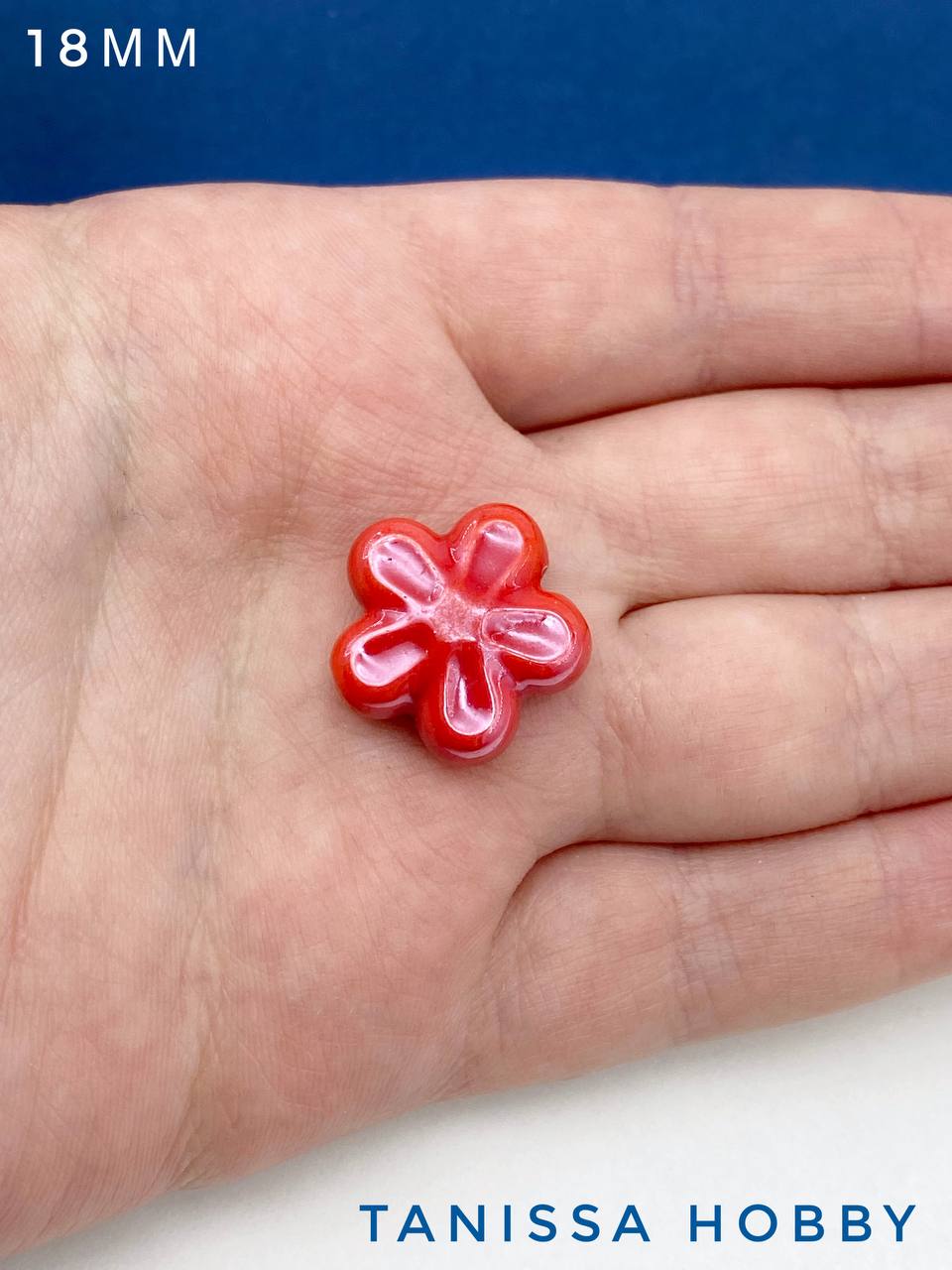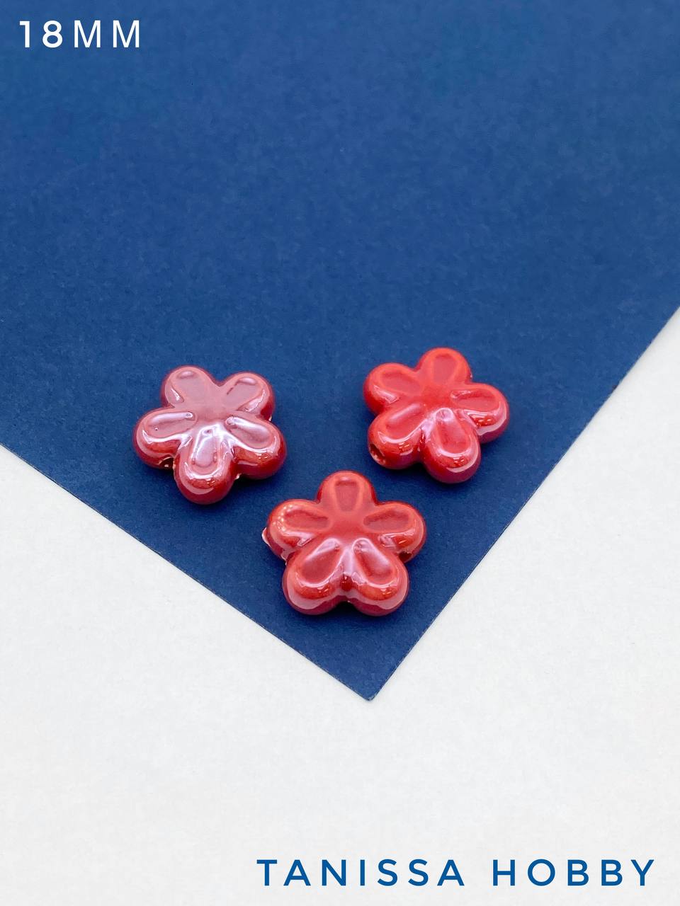 Бусина цветок, керамика, 18мм, красный, штука, П158