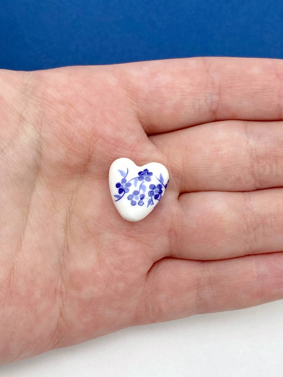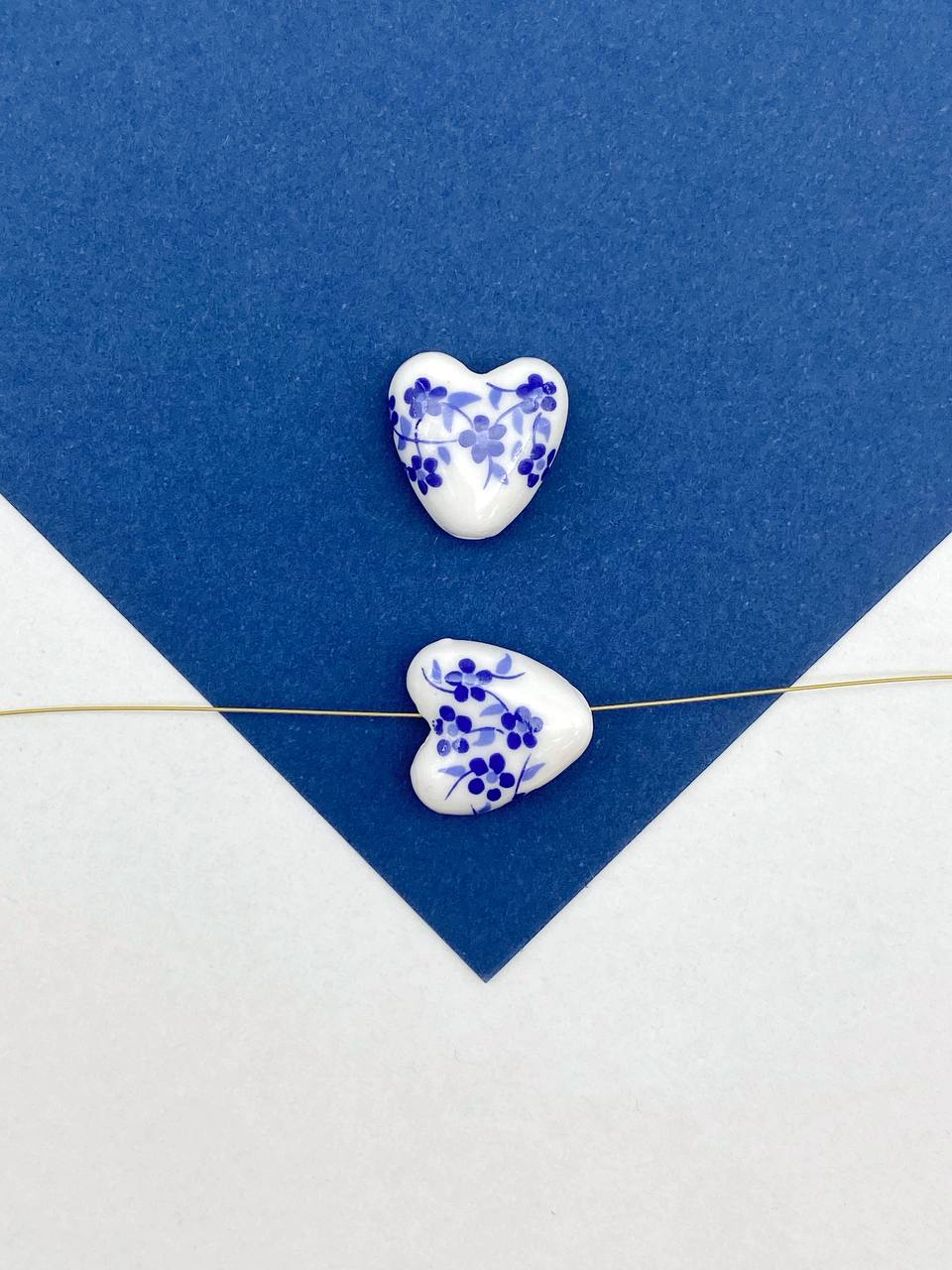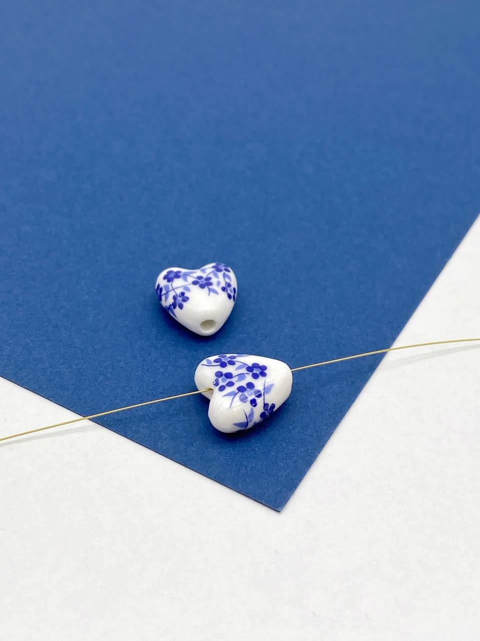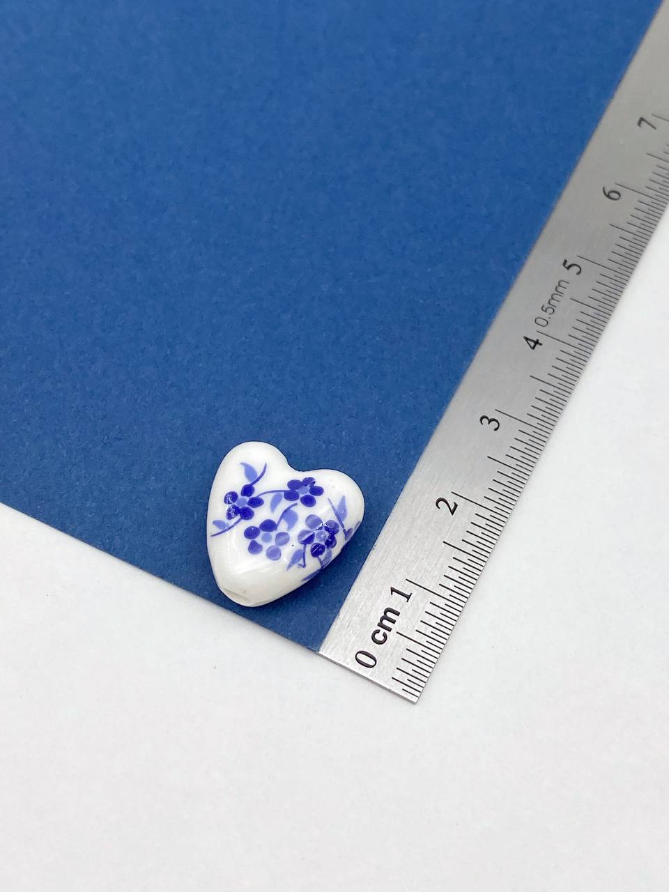 Бусина фарфоровая, керамика, 15мм, сердце, синий, гжель, штука, П251