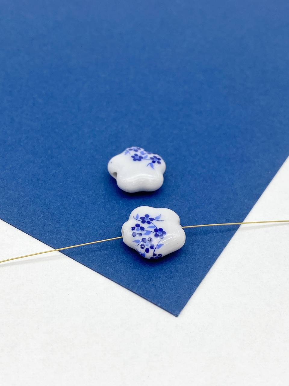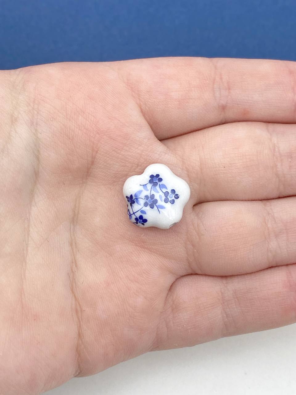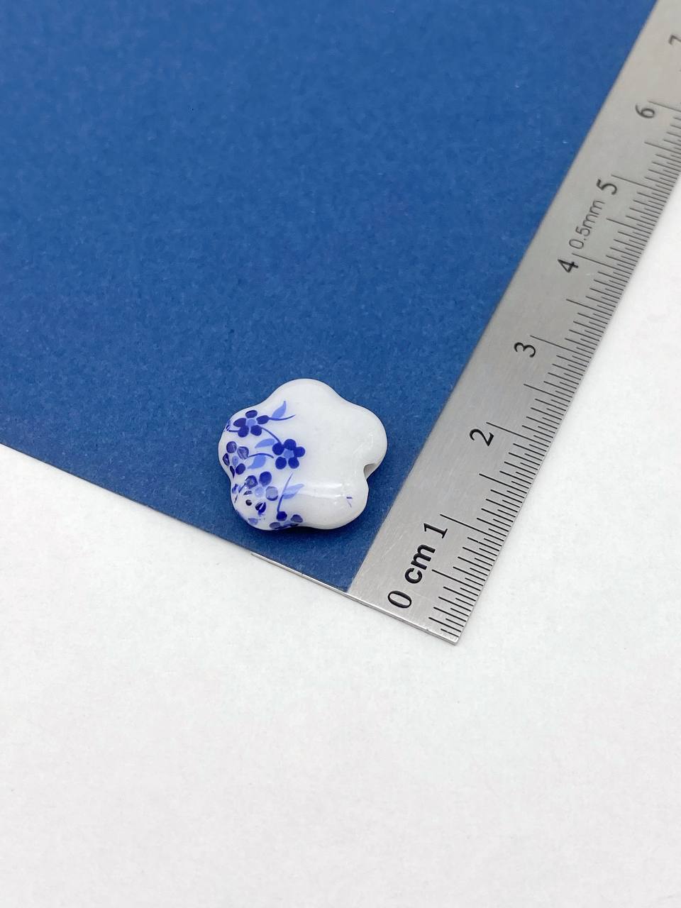 Бусина фарфоровая, керамика, 14мм, цветок, синий, штука, П255