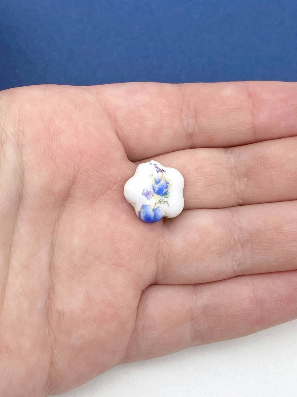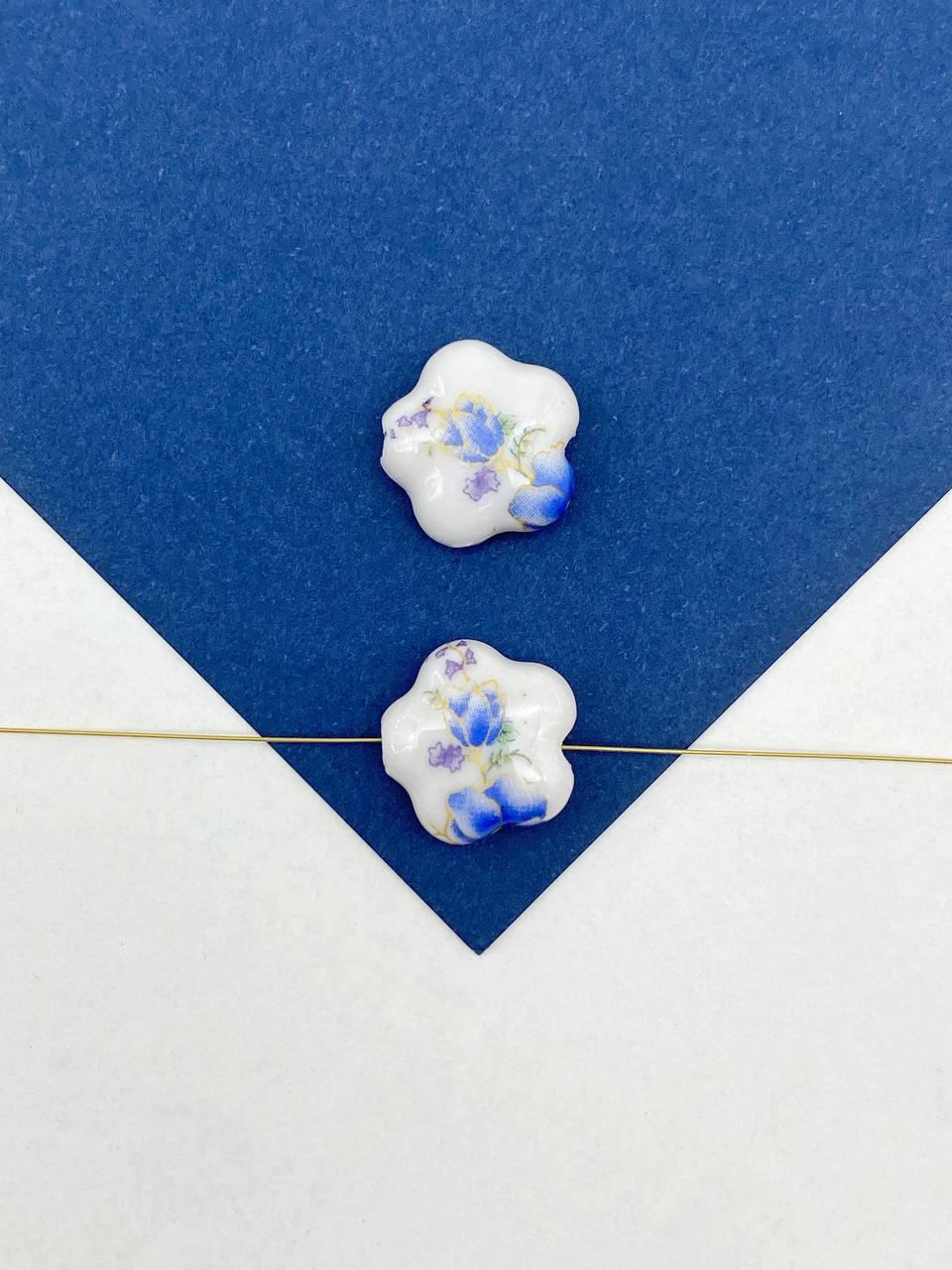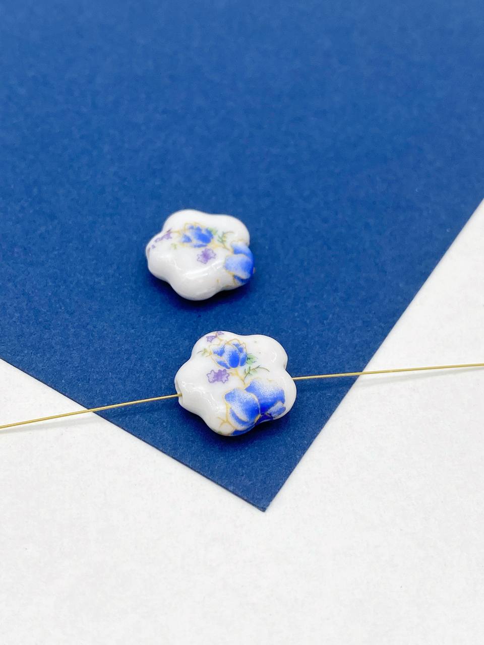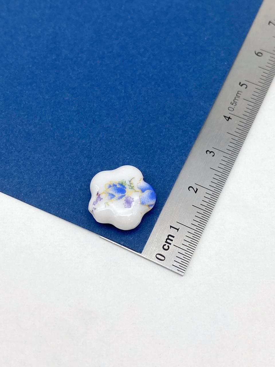 Бусина фарфоровая, керамика, 14мм, цветок, синий, штука, П256