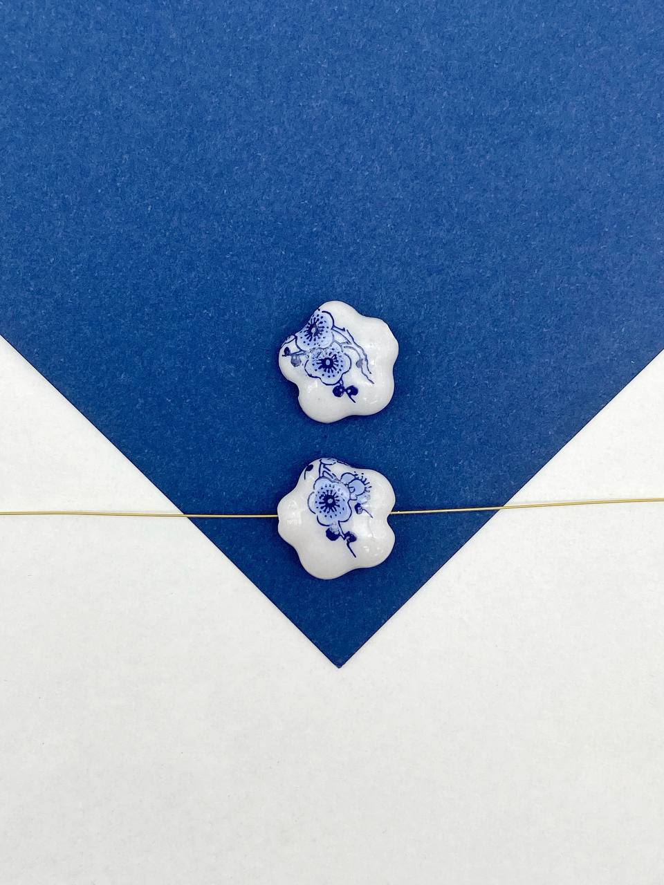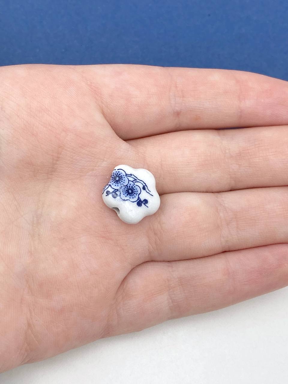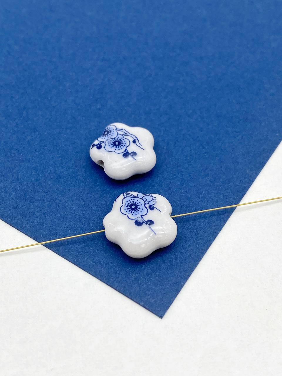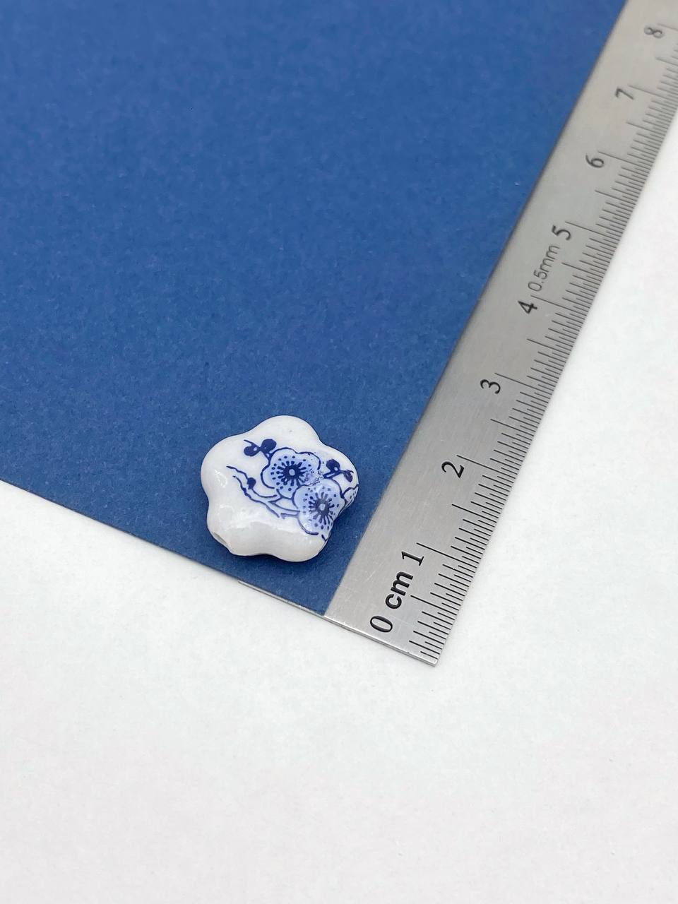 Бусина фарфоровая, керамика, 14мм, цветок, синий, штука, П257