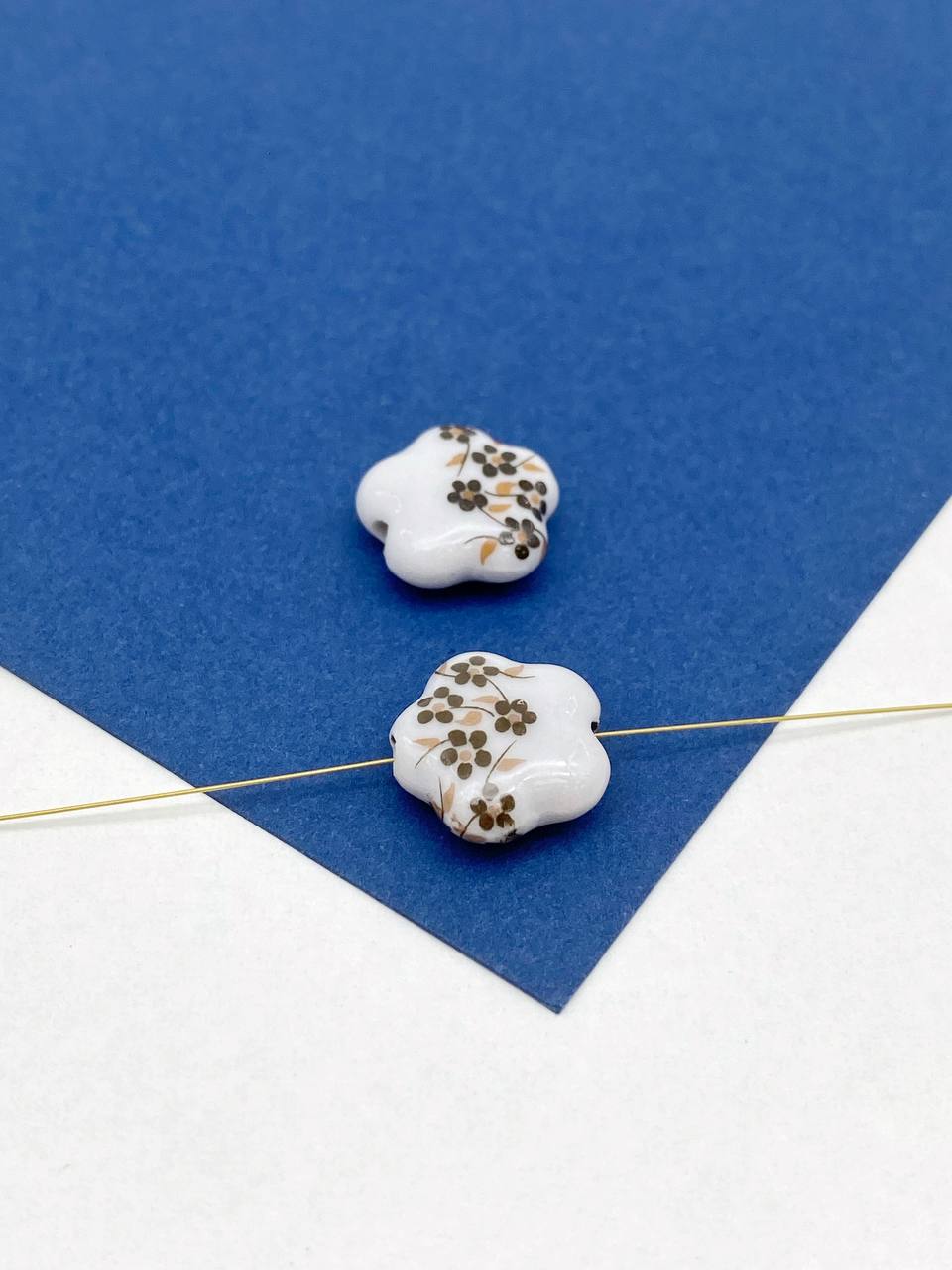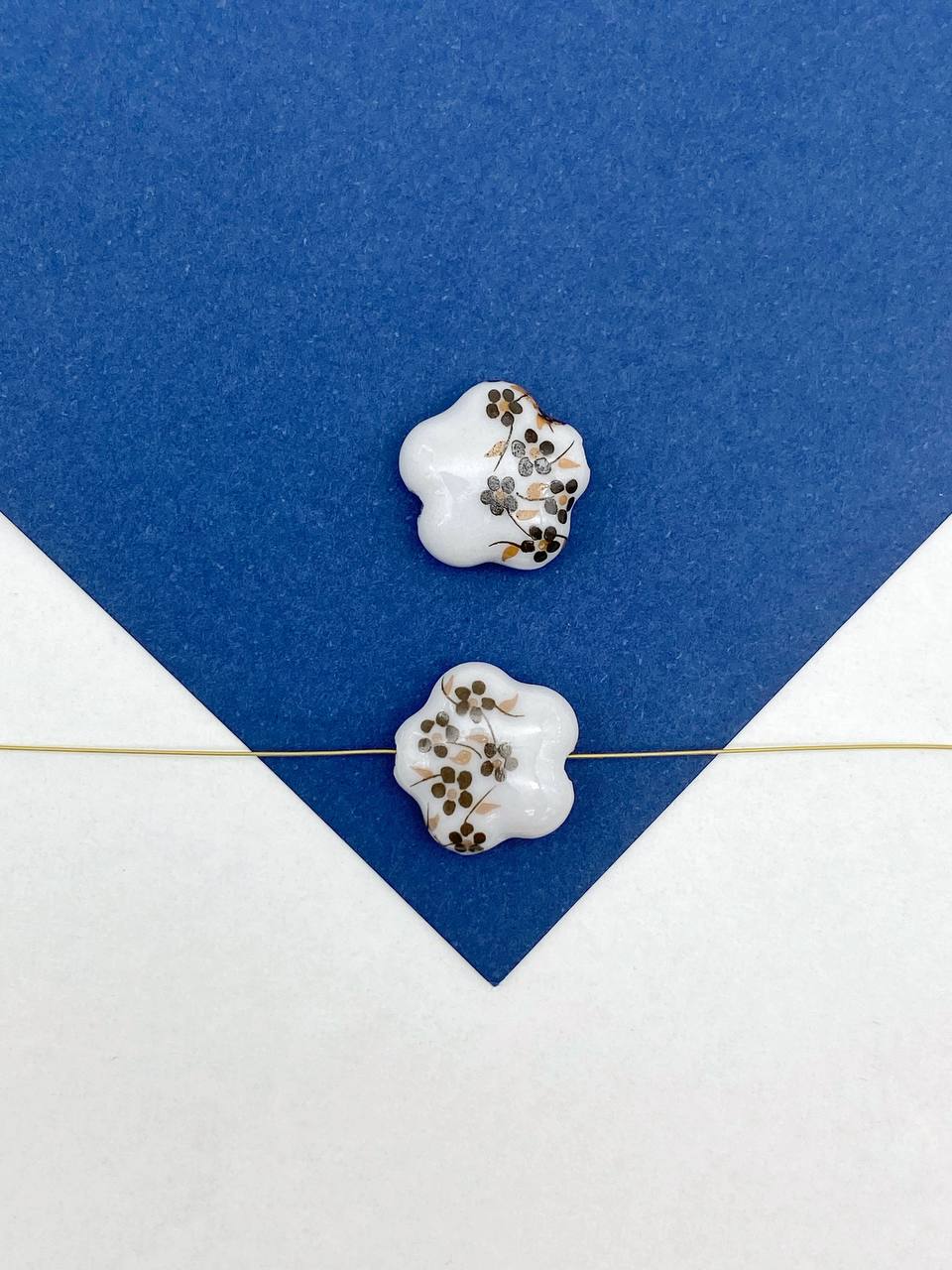 Бусина фарфоровая с изображением цветов