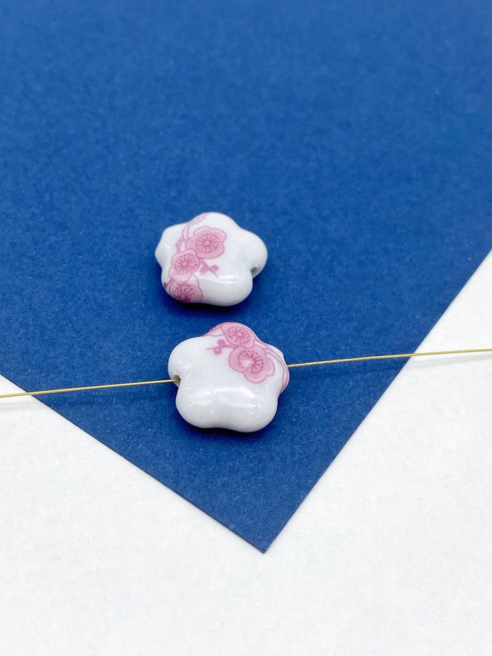 Бусина фарфоровая, керамика, 14мм, цветок, розовый, штука, П262