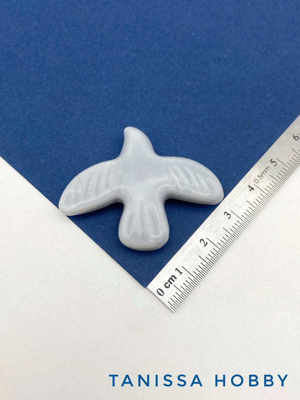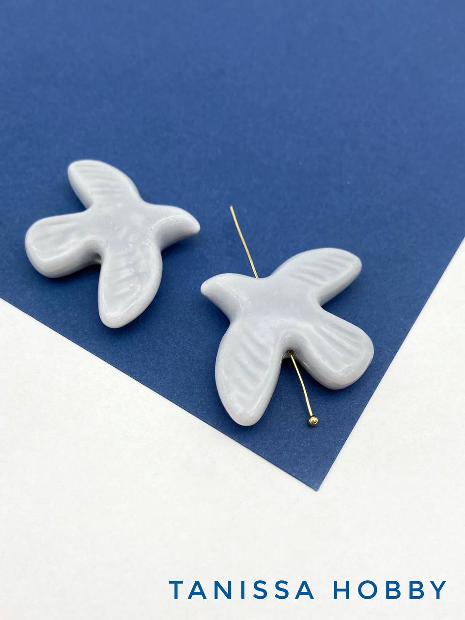 Бусина серая фарфоровая птица, керамика, 34х42мм, П188