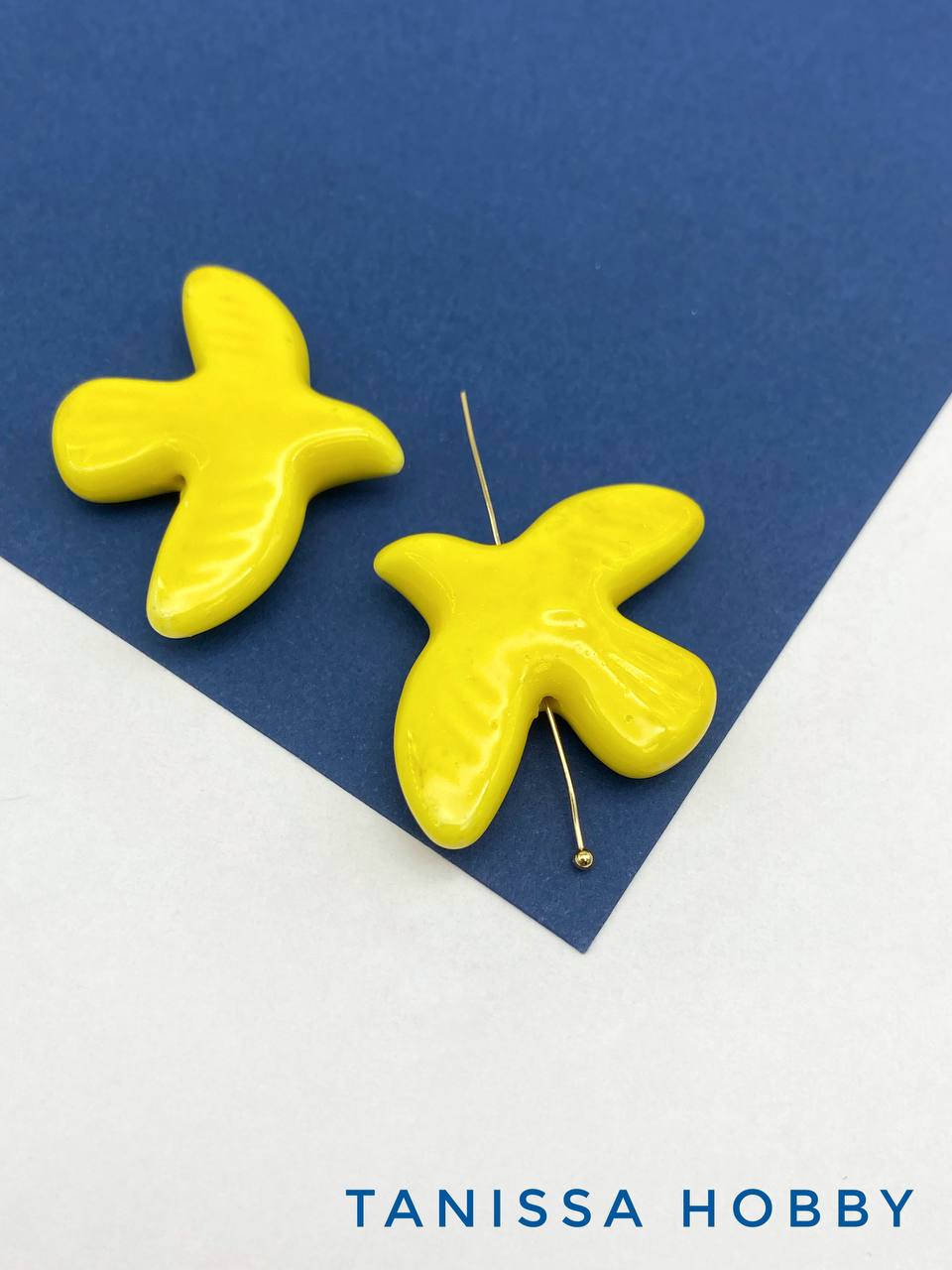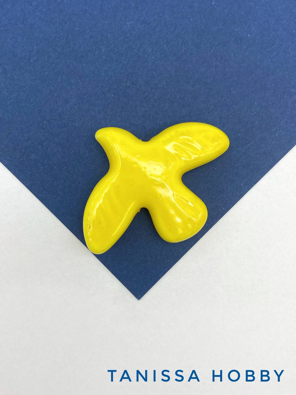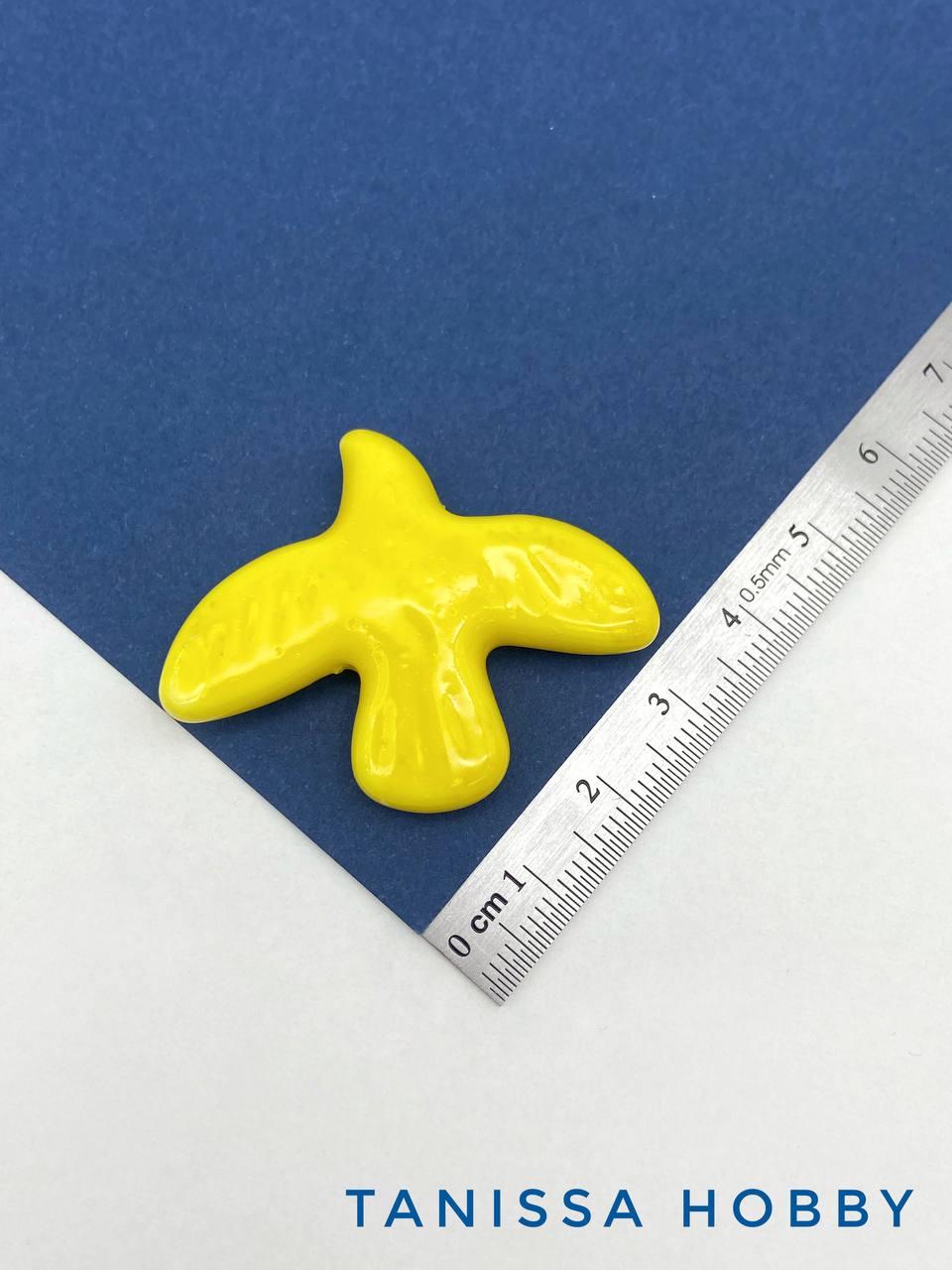 Бусина желтая фарфоровая птица, керамика, 34х42мм, П189