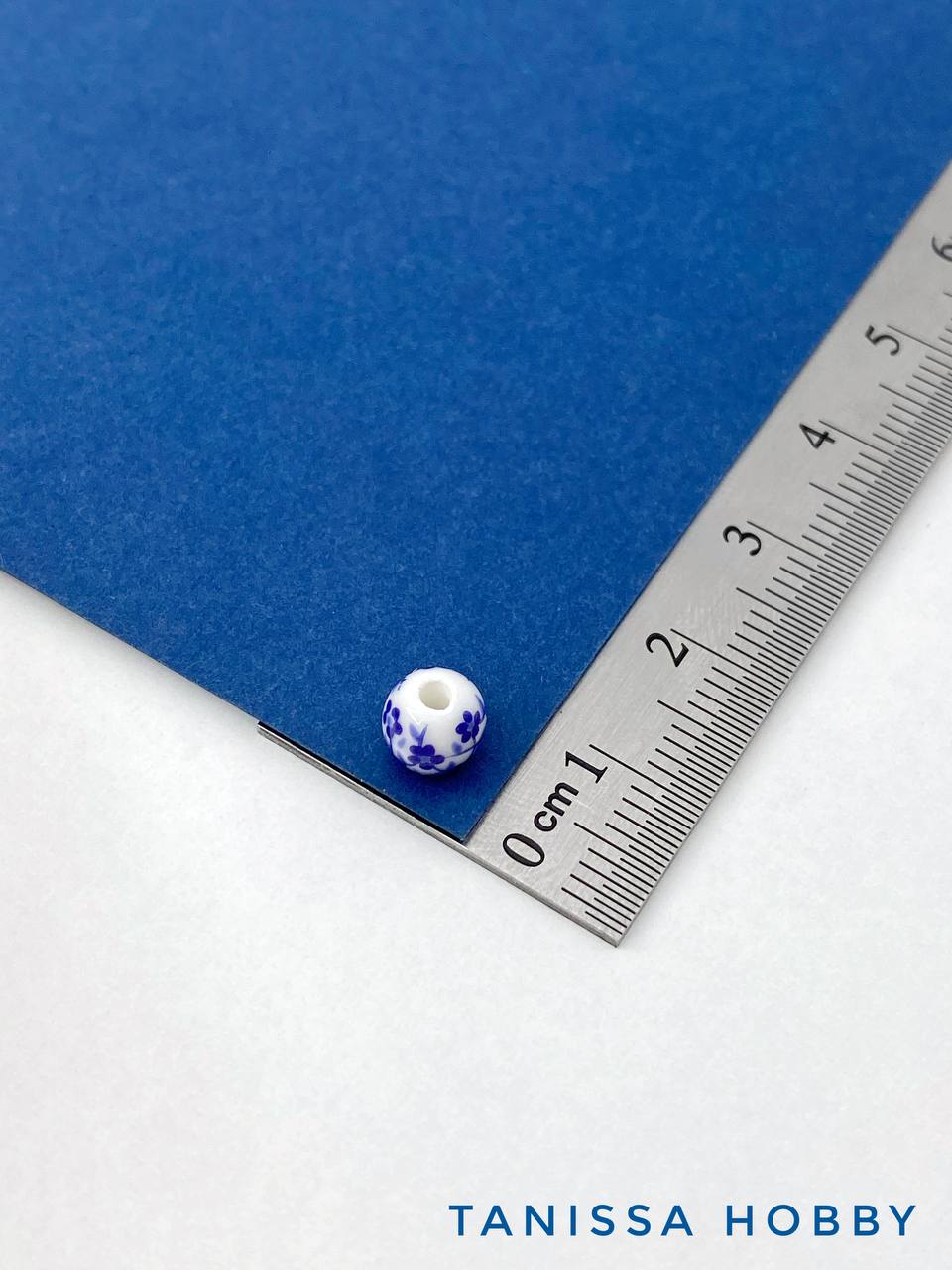 Бусина фарфоровая, керамика, 6мм, круглая, синий, гжель, штука, П293