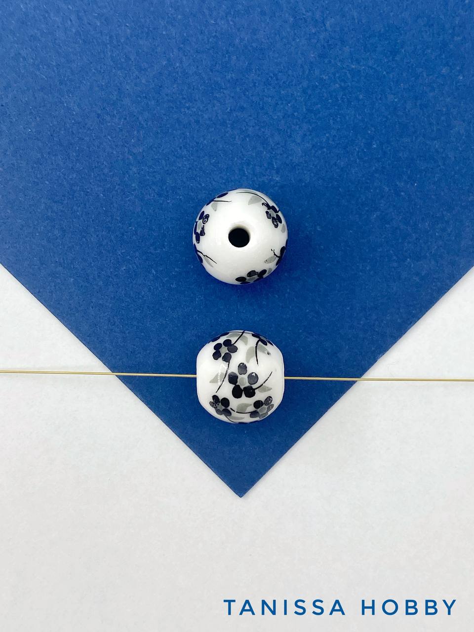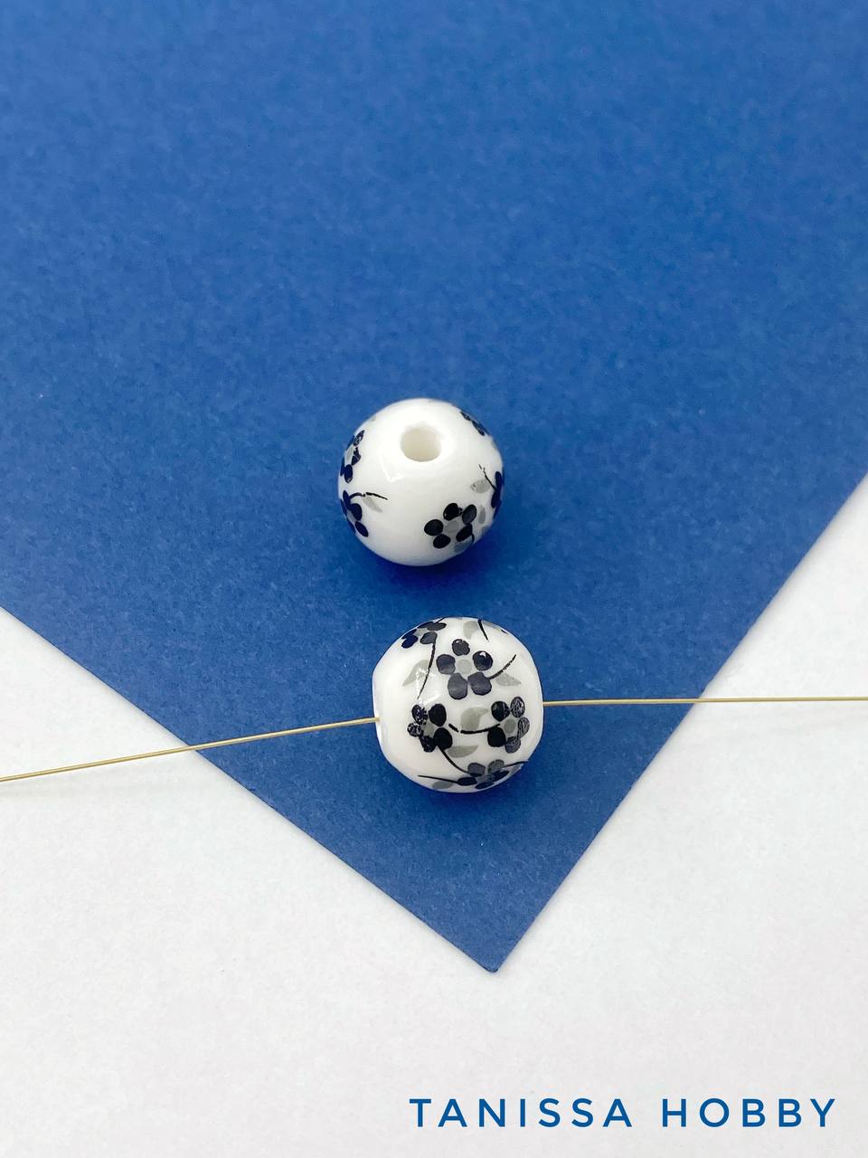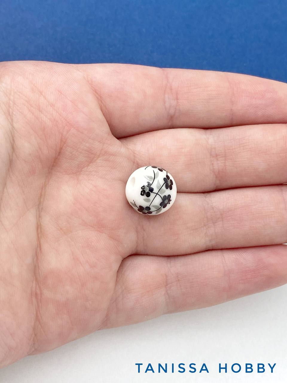 Бусина фарфоровая с изображением цветов