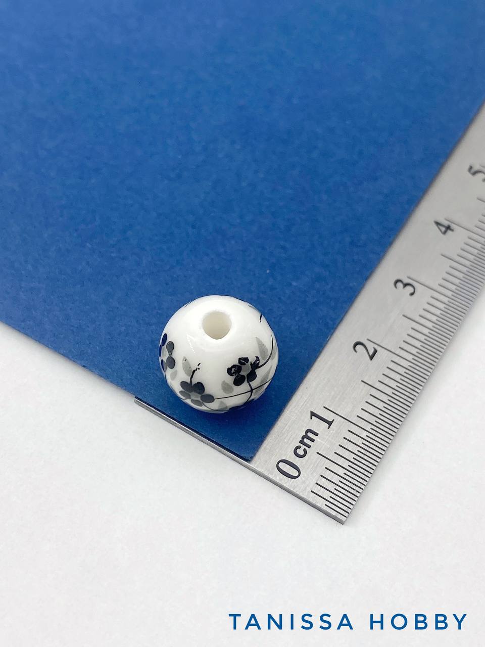 Бусина фарфоровая, керамика, 12мм, круглая, черный, гжель, штука, П304