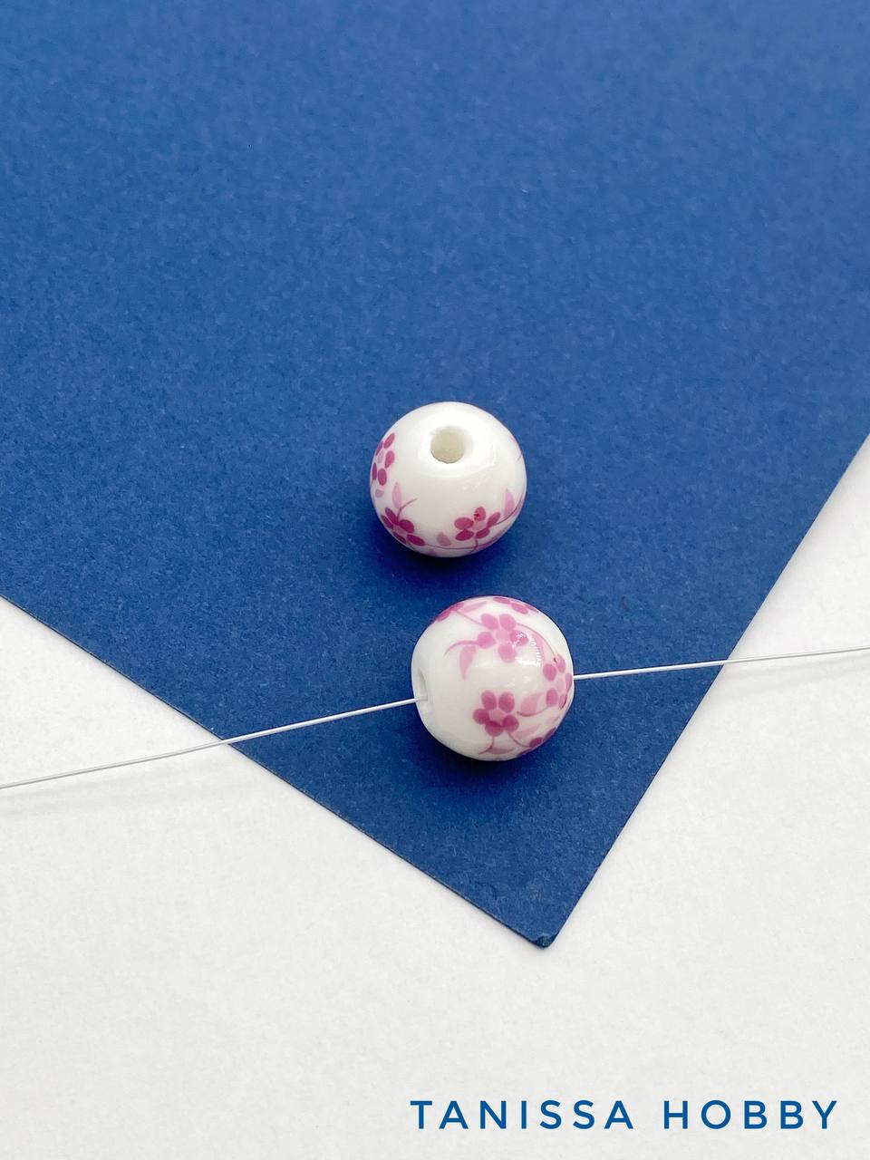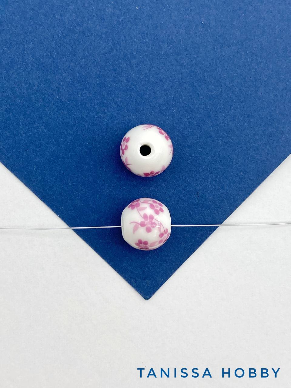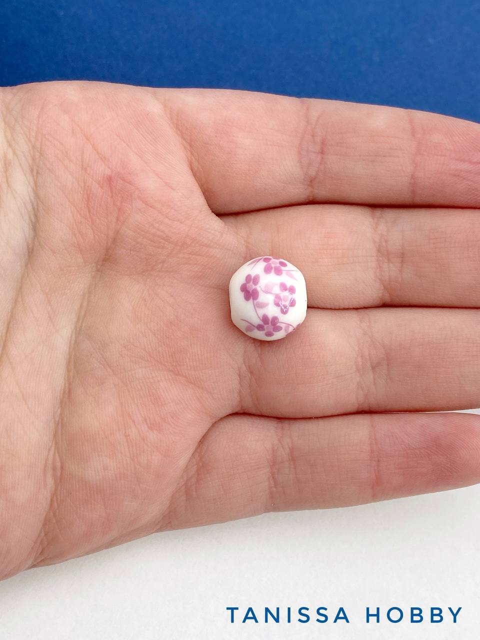 Бусина фарфоровая с изображением цветов