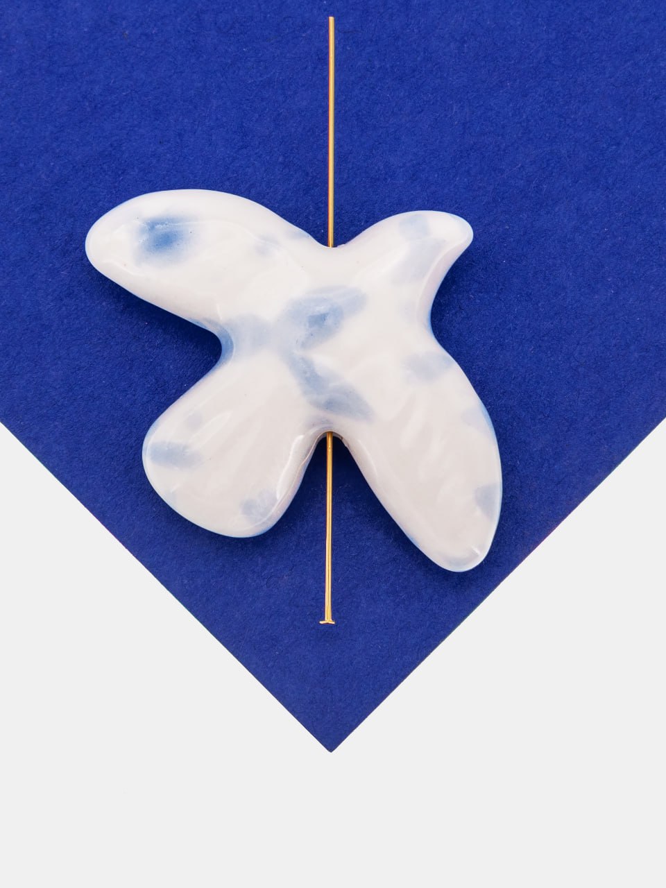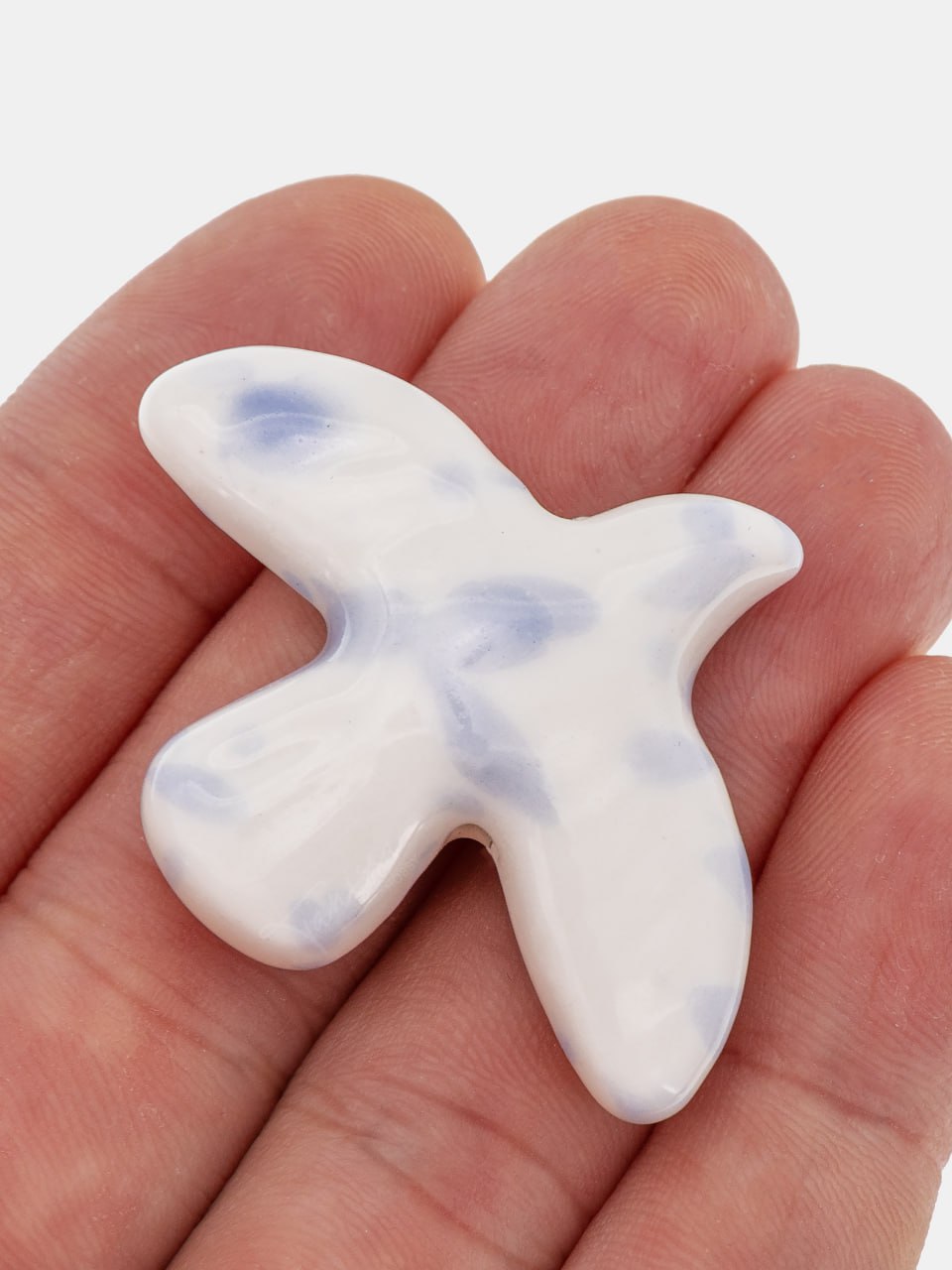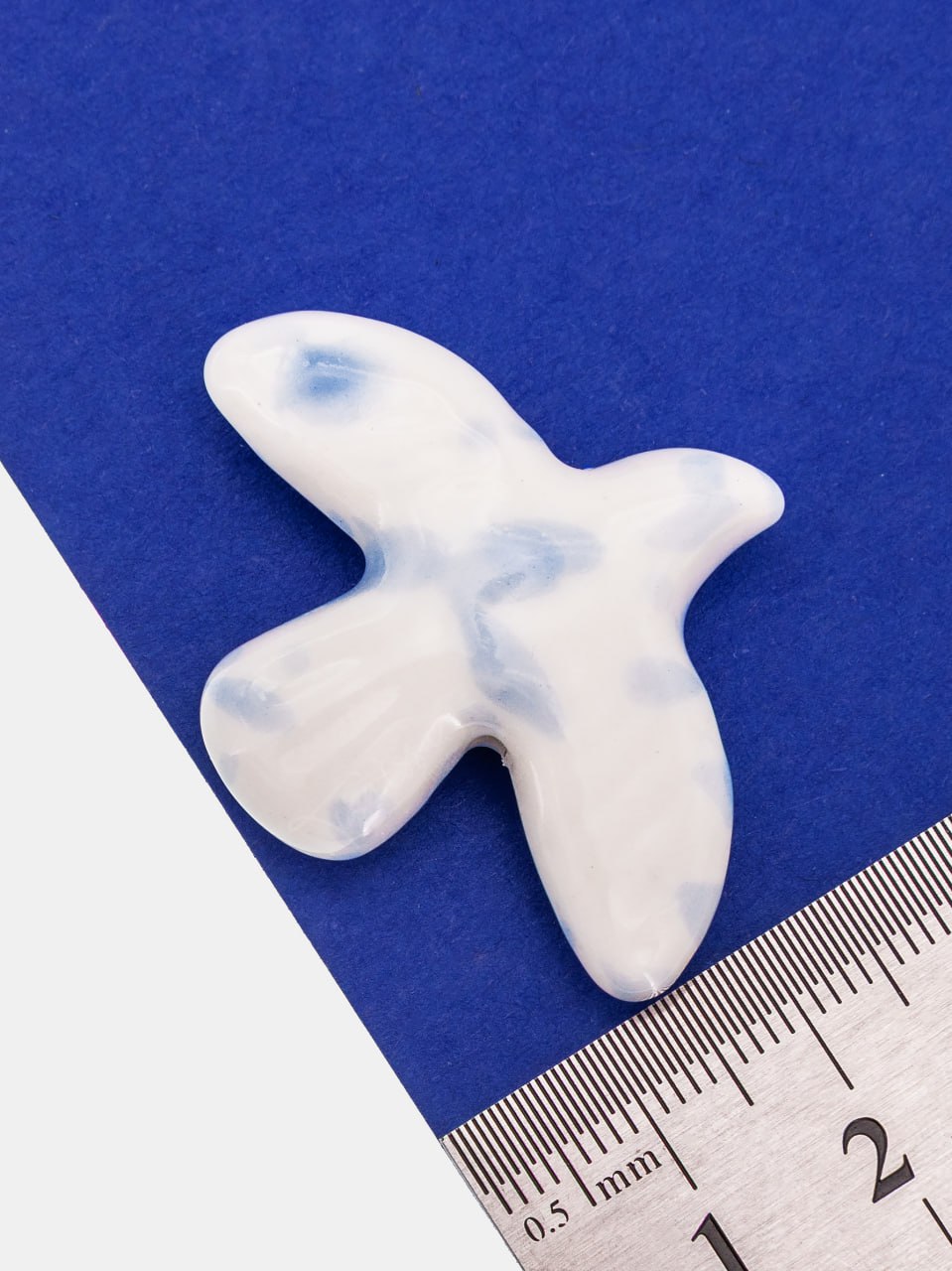 Бусина белая с голубым фарфоровая птица, керамика, 34х42мм, П297