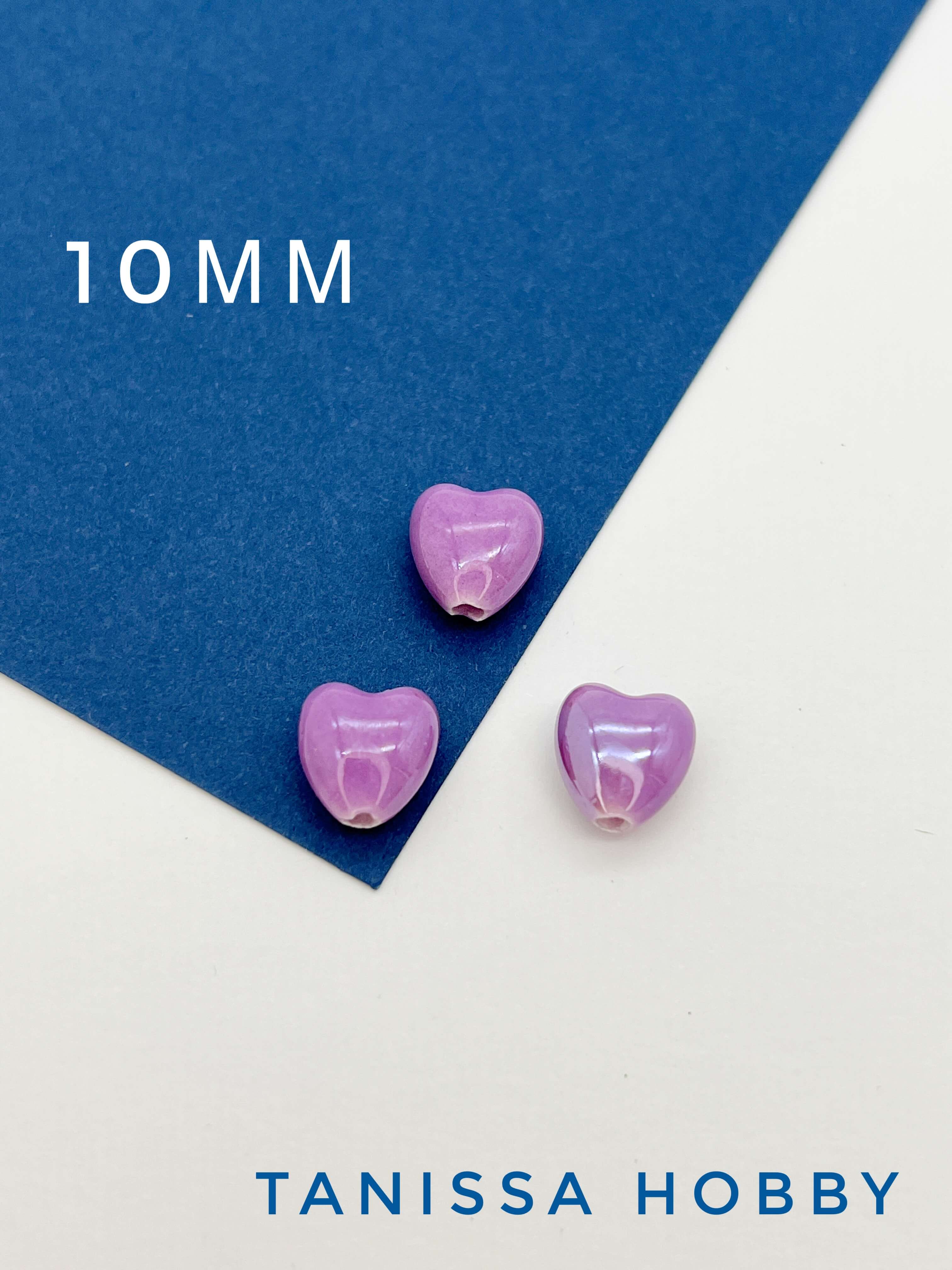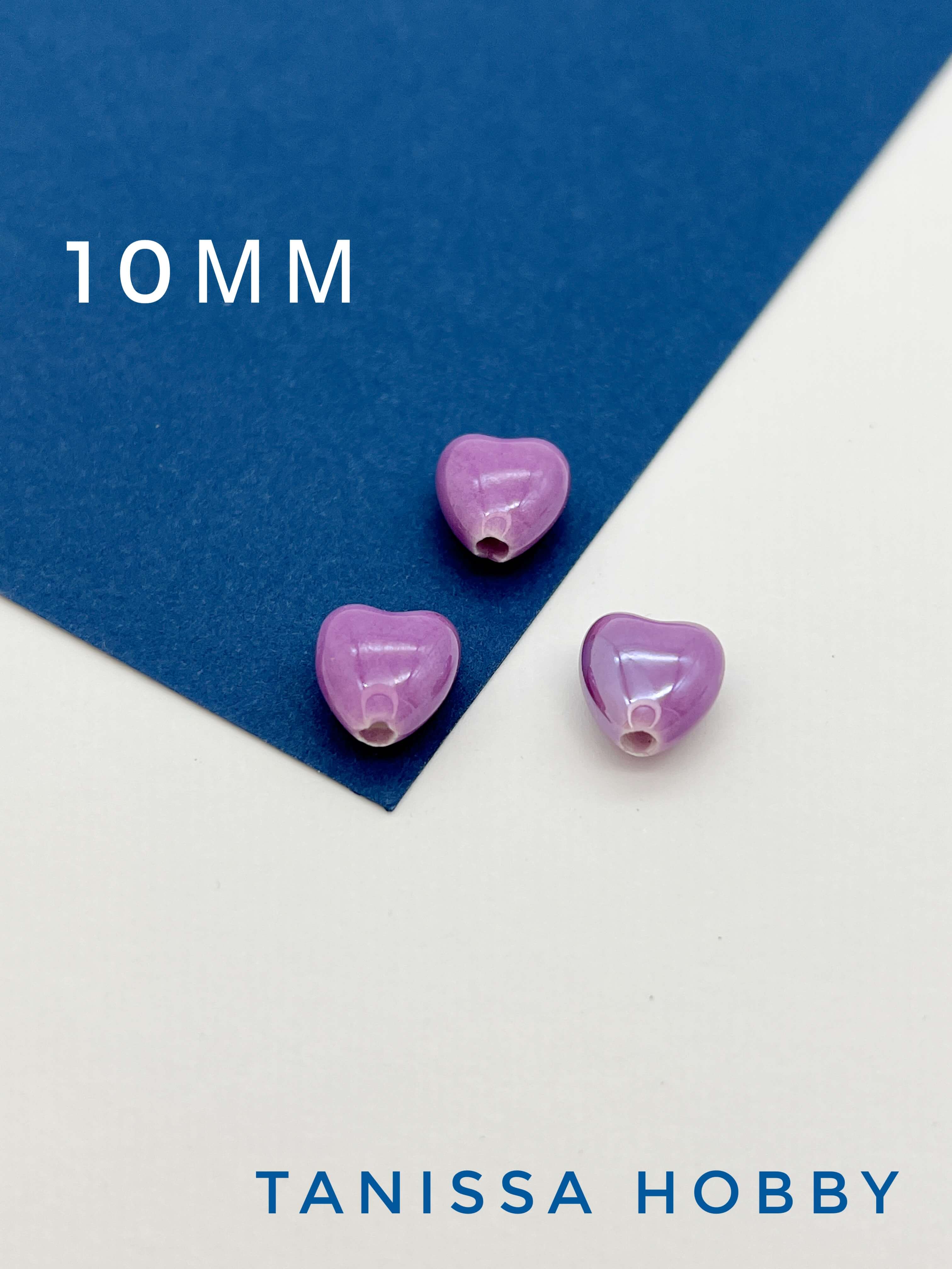 Бусина фиолетовая фарфоровое сердце, Категория В, 10мм, ШТУКА, П153
