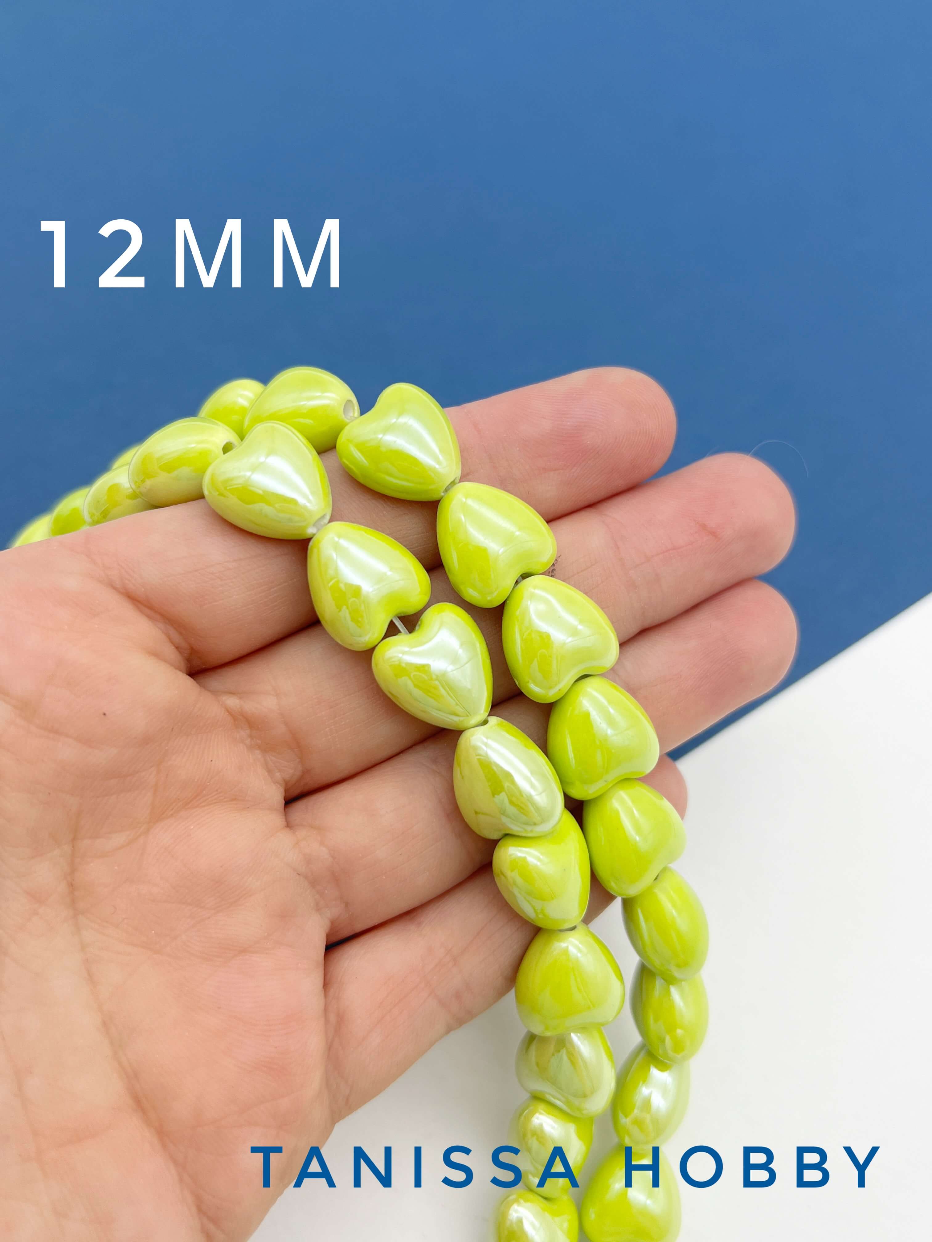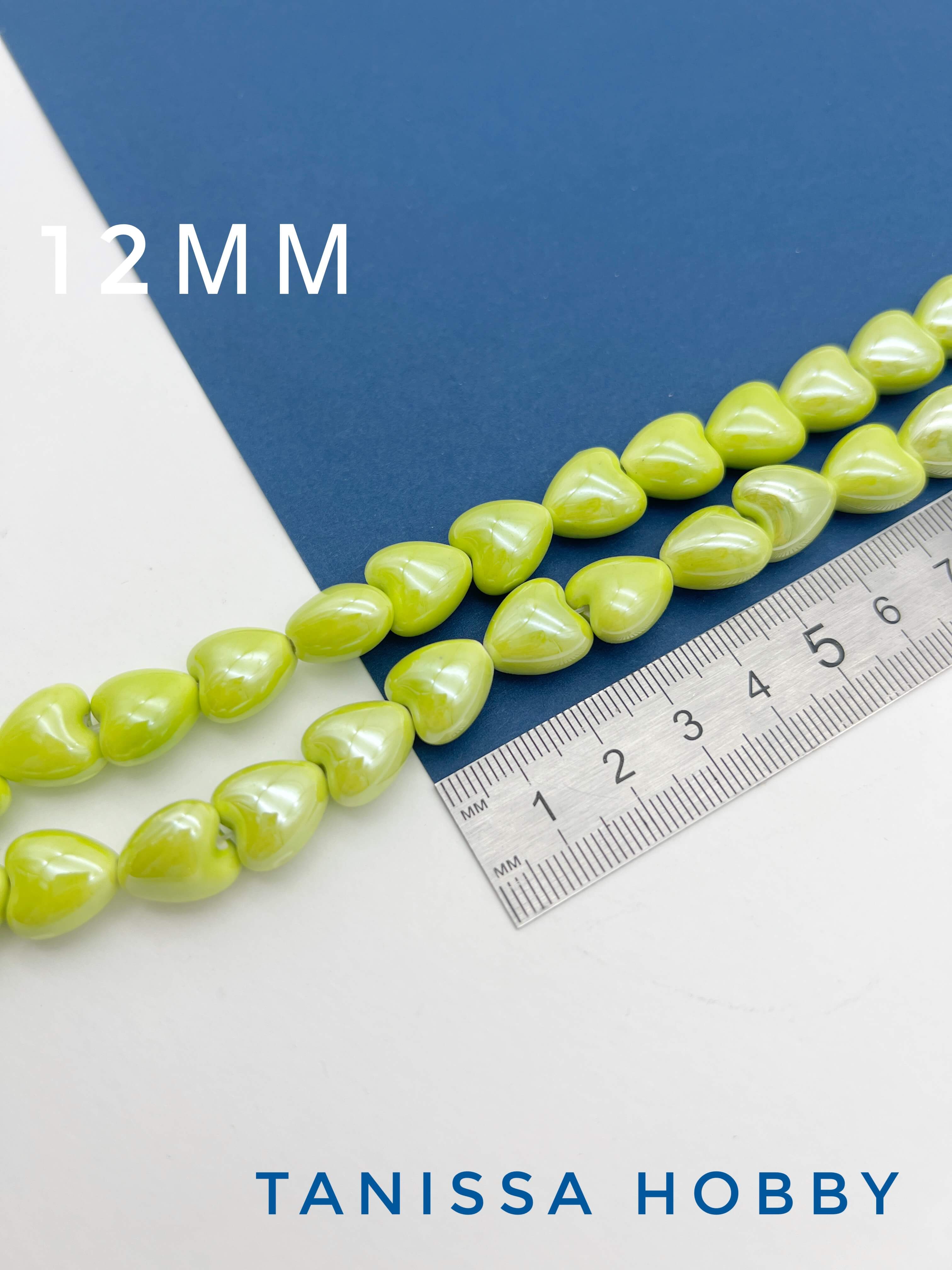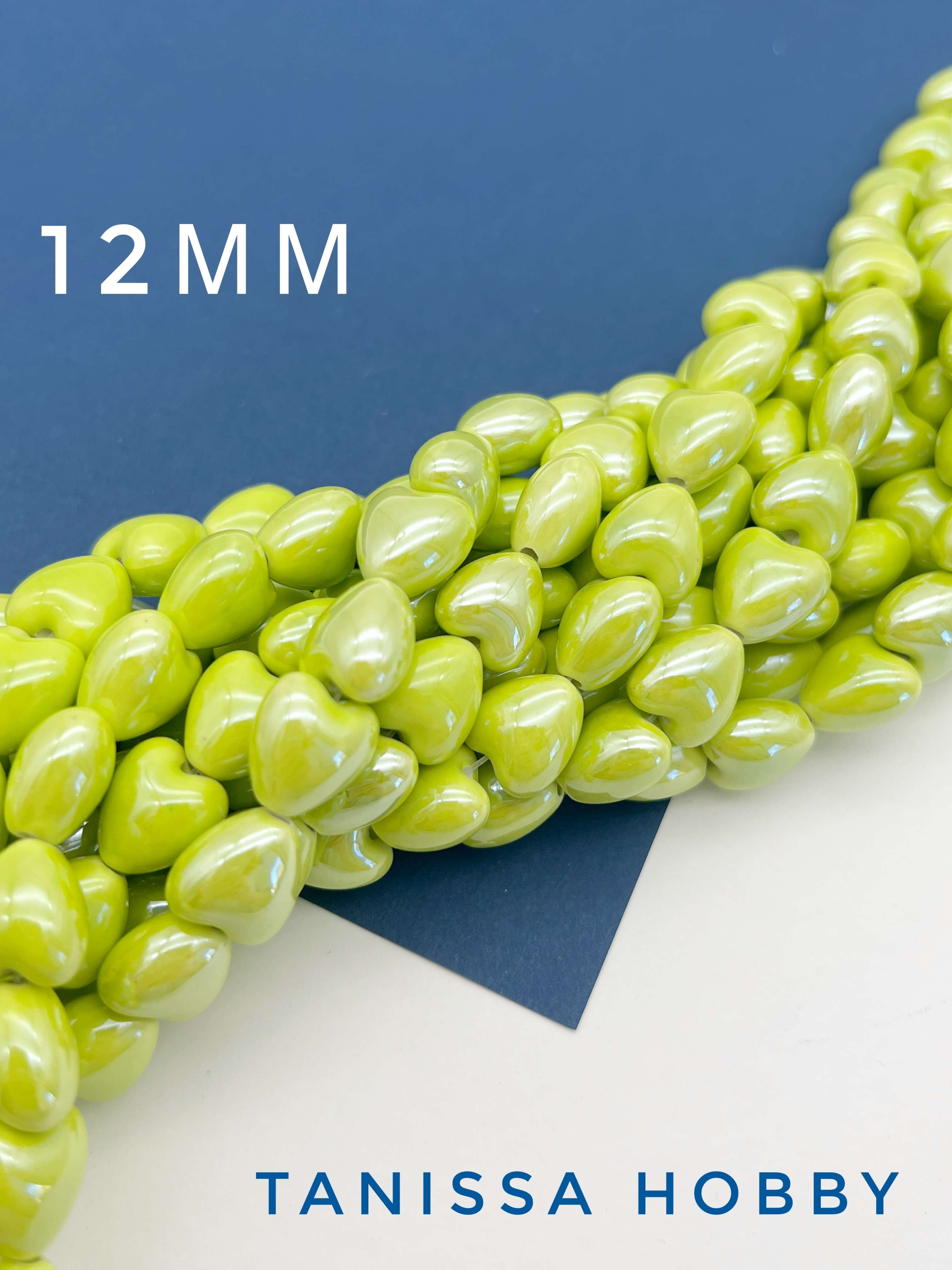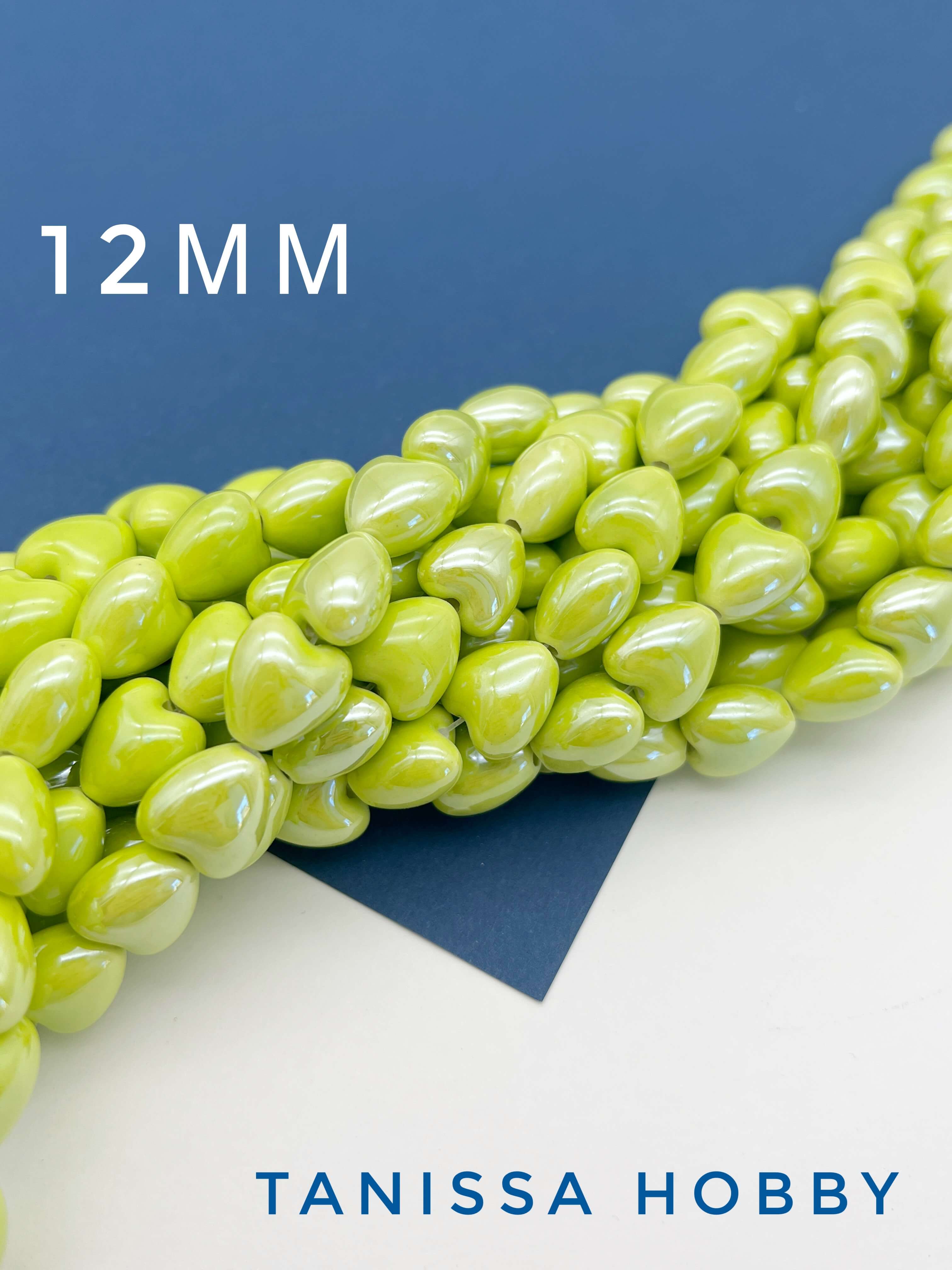 Бусина желто-зеленая фарфоровое сердце, керамика, 12мм, ШТУКА, П122