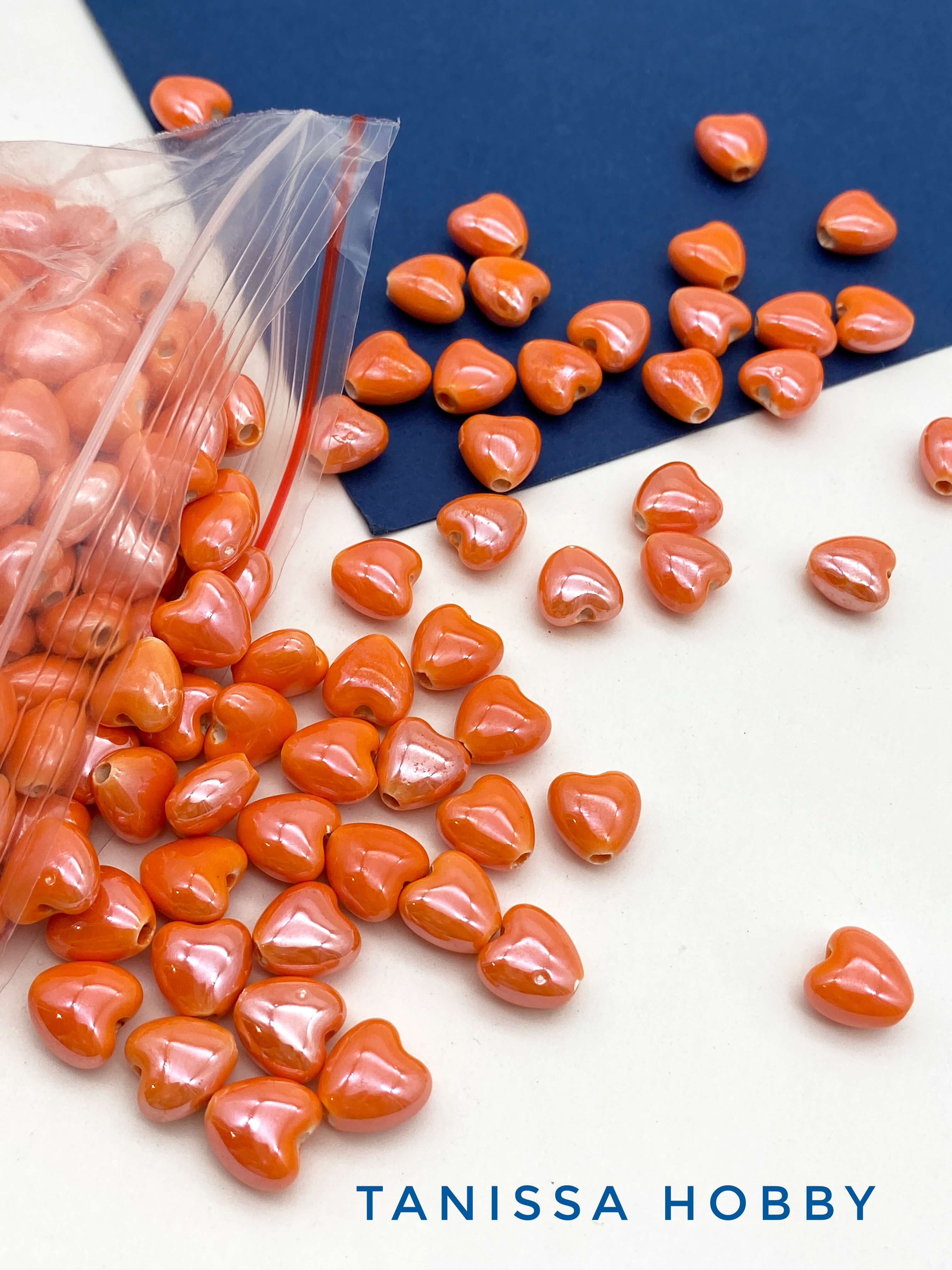 Бусина оранжевая фарфоровое сердце, 10мм, Категория В, ШТУКА, П169