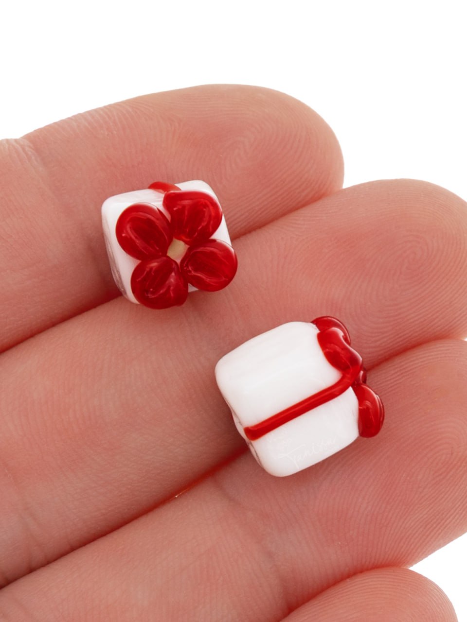 Стеклянная бусина в виде подарка
