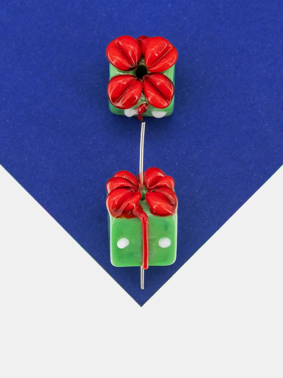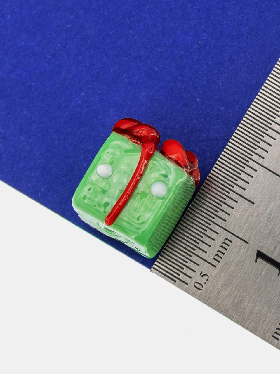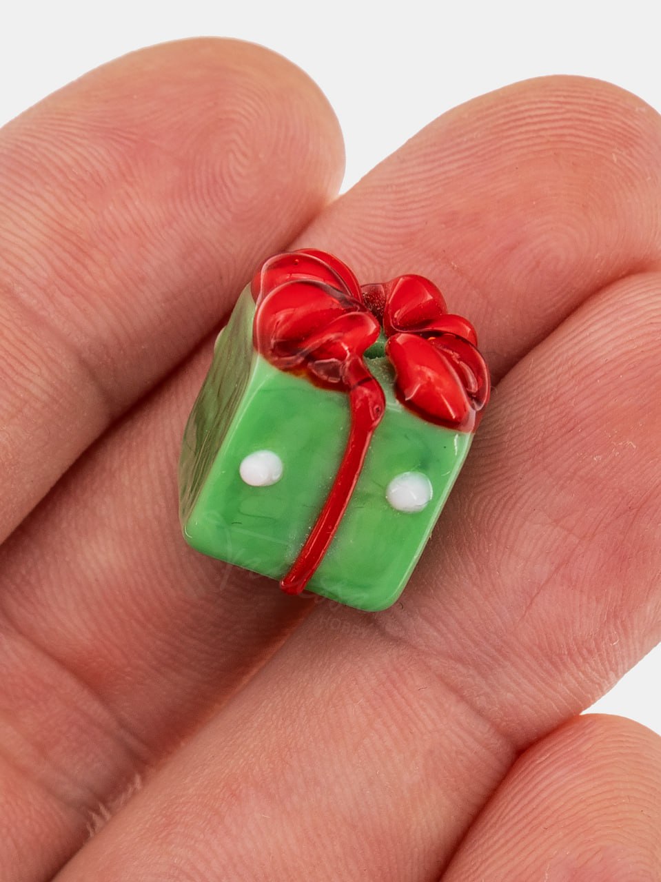 Стеклянная бусина в виде подарка.