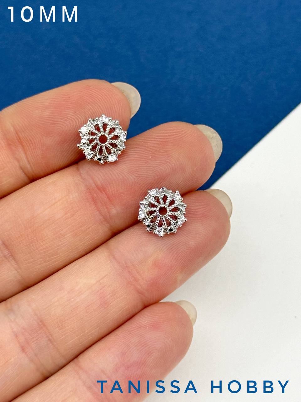 Шапочка для бусин ажурная 10мм, родий, ШТУКА, К402