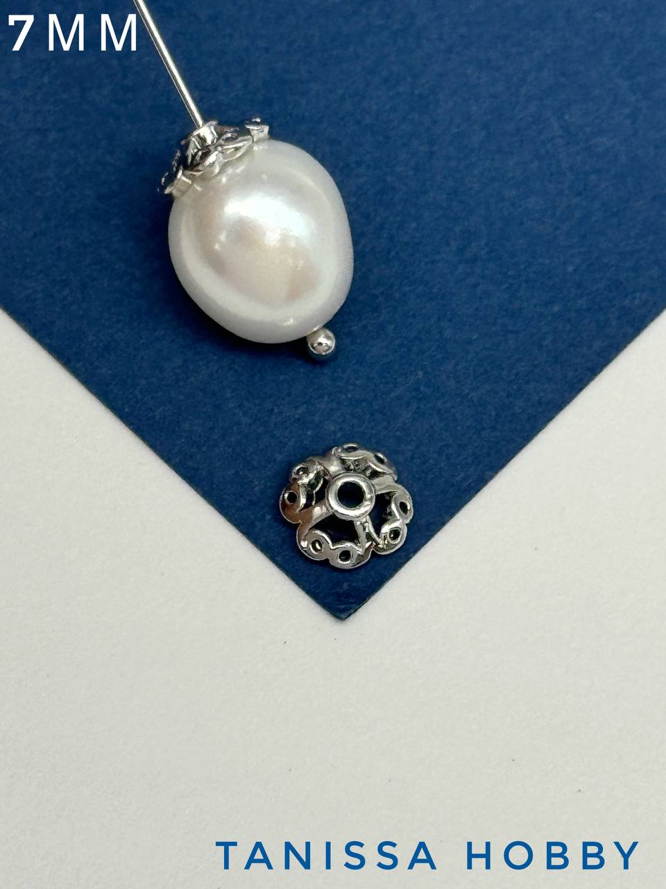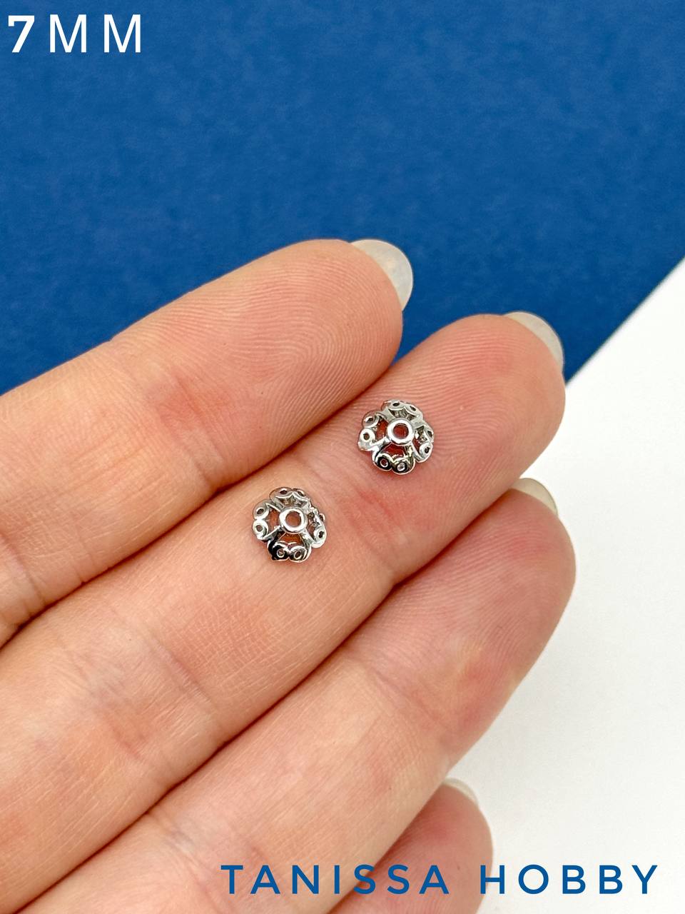 Шапочка для бусин ажурная 7мм, родий, ШТУКА, К403