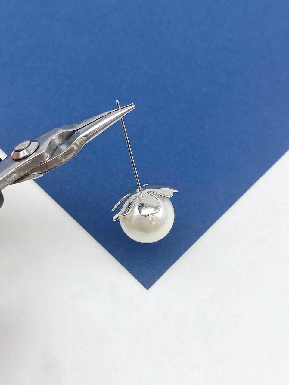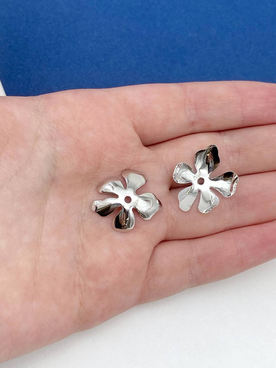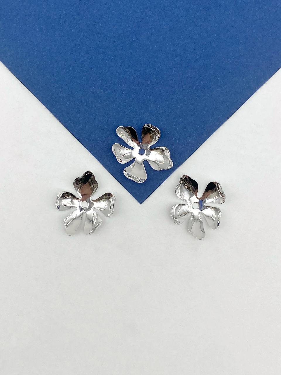 Шапочка для бусин цветок, 22х19мм, родий, В030