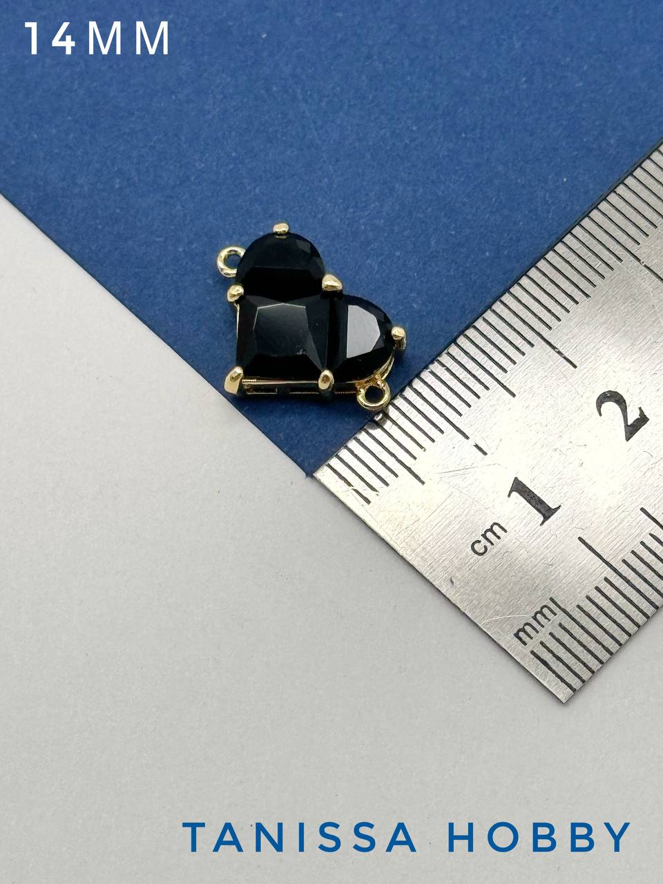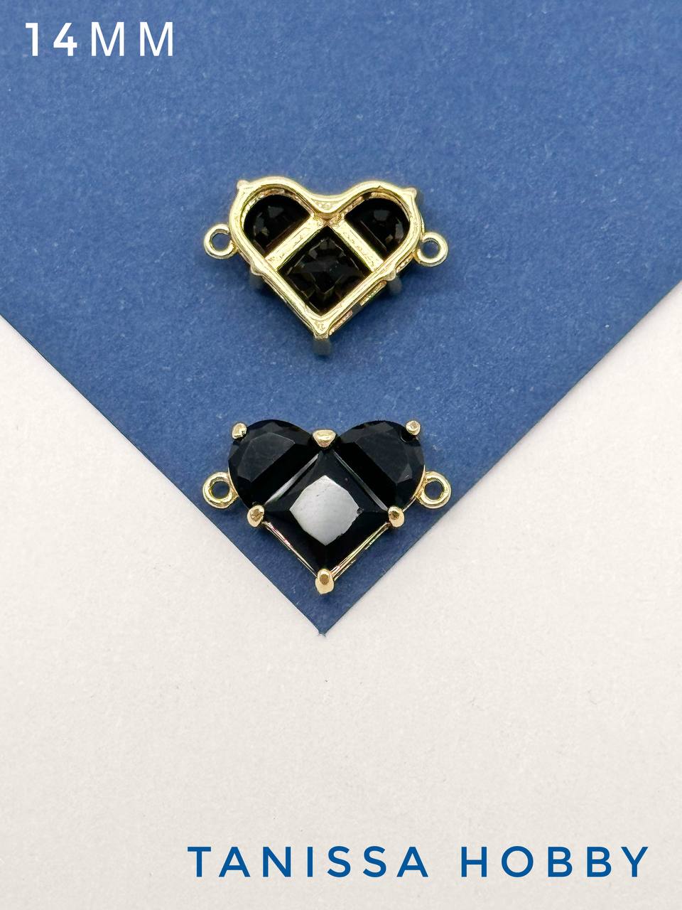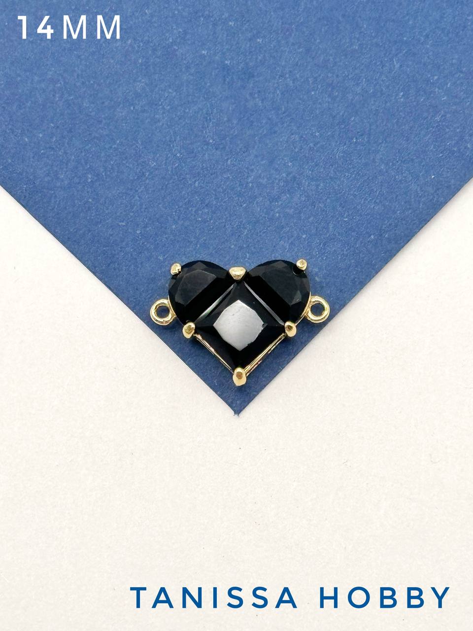 Коннектор сердце фианит, 14мм, черный, позолота, А734