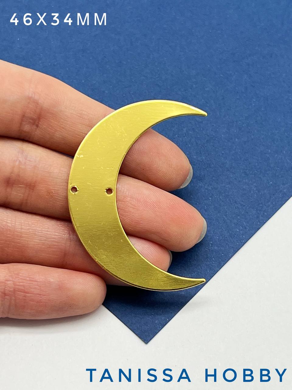 Коннектор лунница, 2 отверстия, 46х34мм, позолота, ЛС026