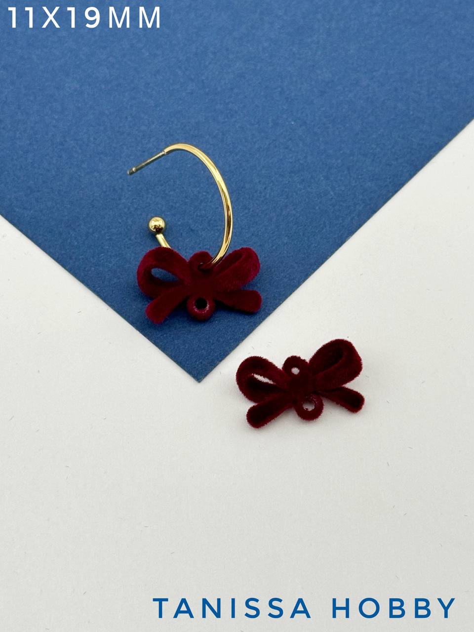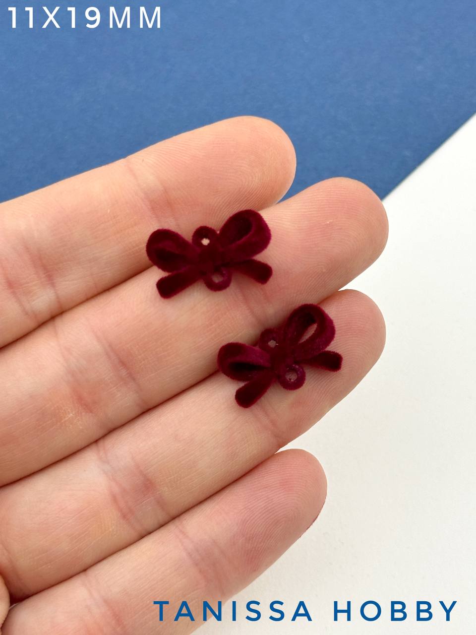 Коннектор плюшевый бантик, бордовый бархат, Ю027