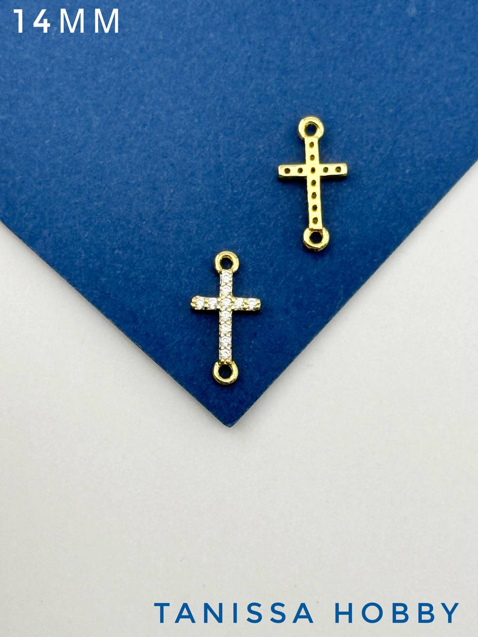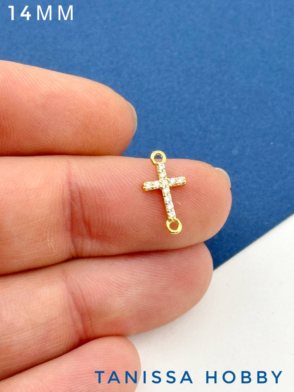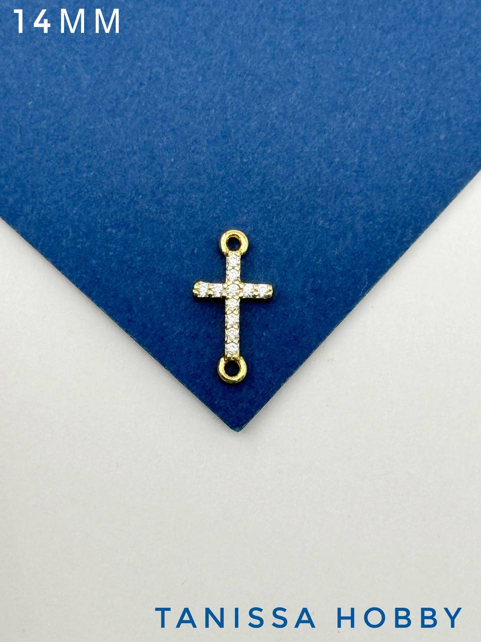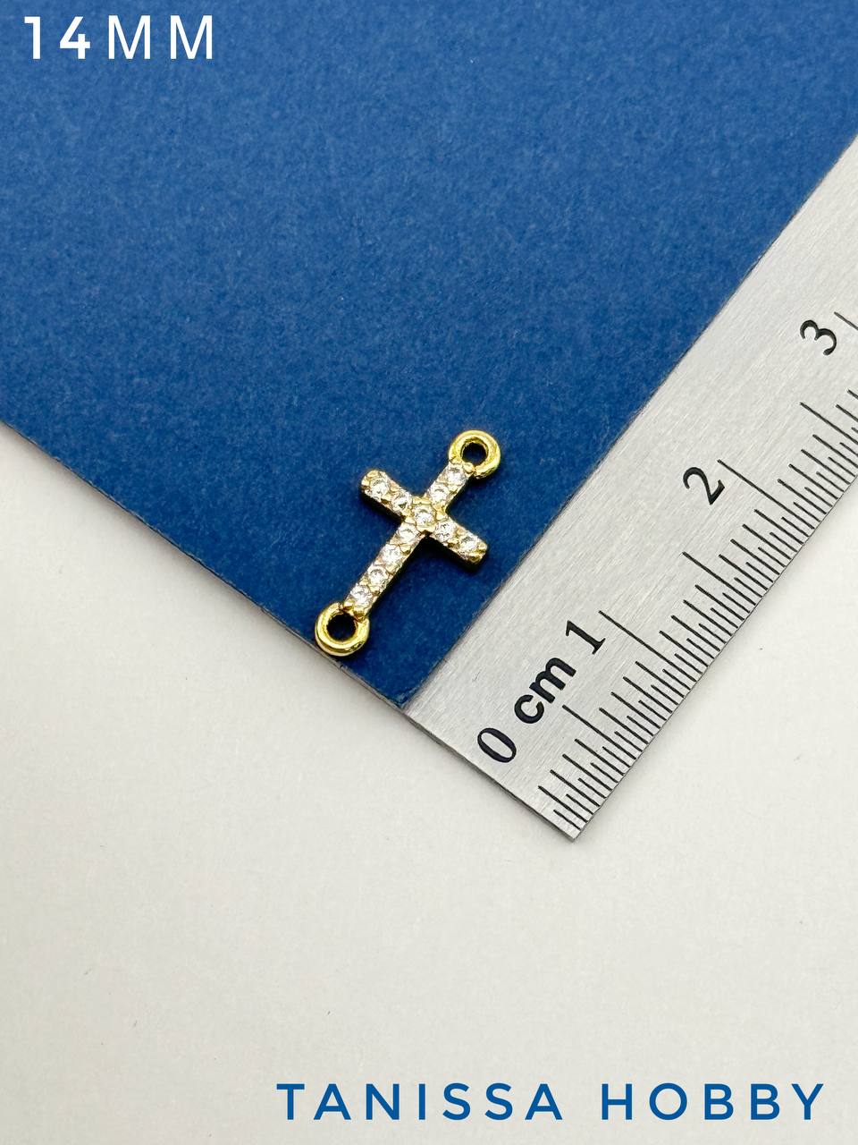 Коннектор крест с фианитами, 14мм, позолота, Ю209