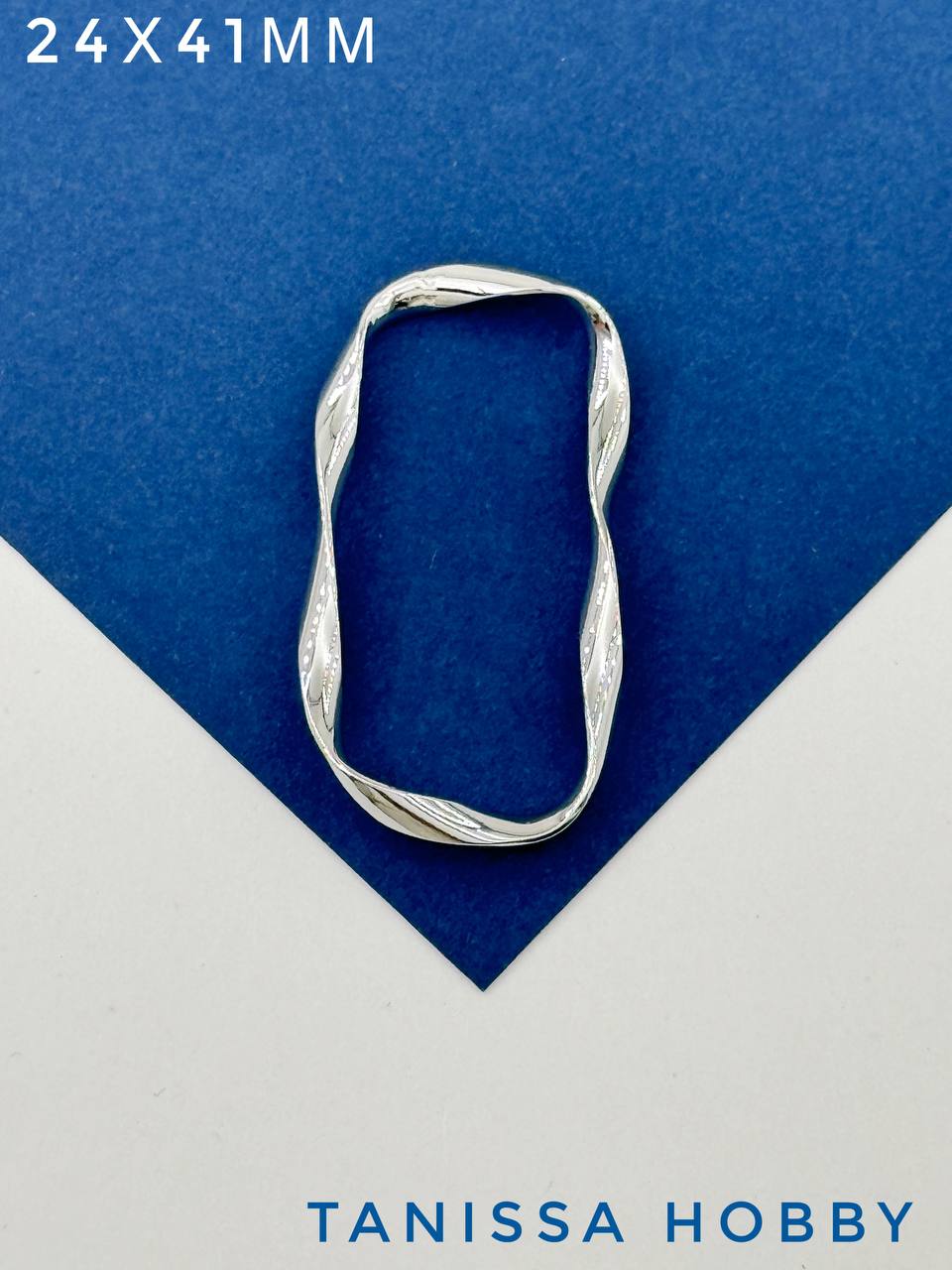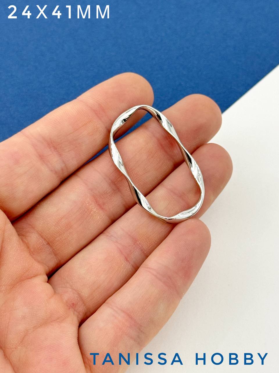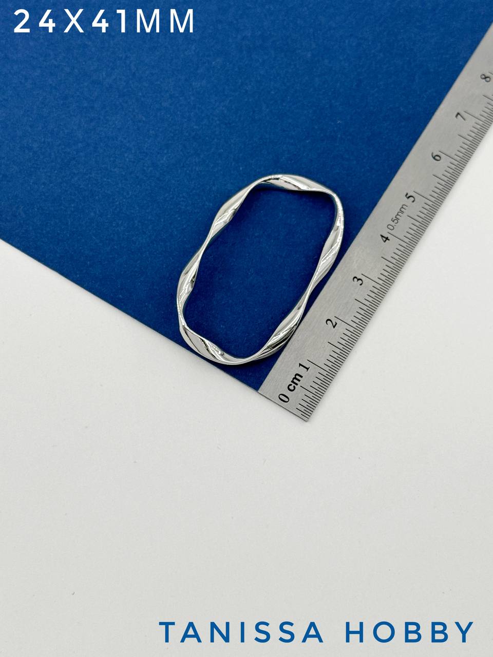 -Коннектор витой овал мятый металл 24х41мм, родий, А013