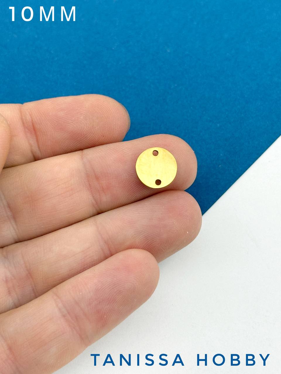Коннектор шильдик круг 10мм, сталь, позолота, Ш209
