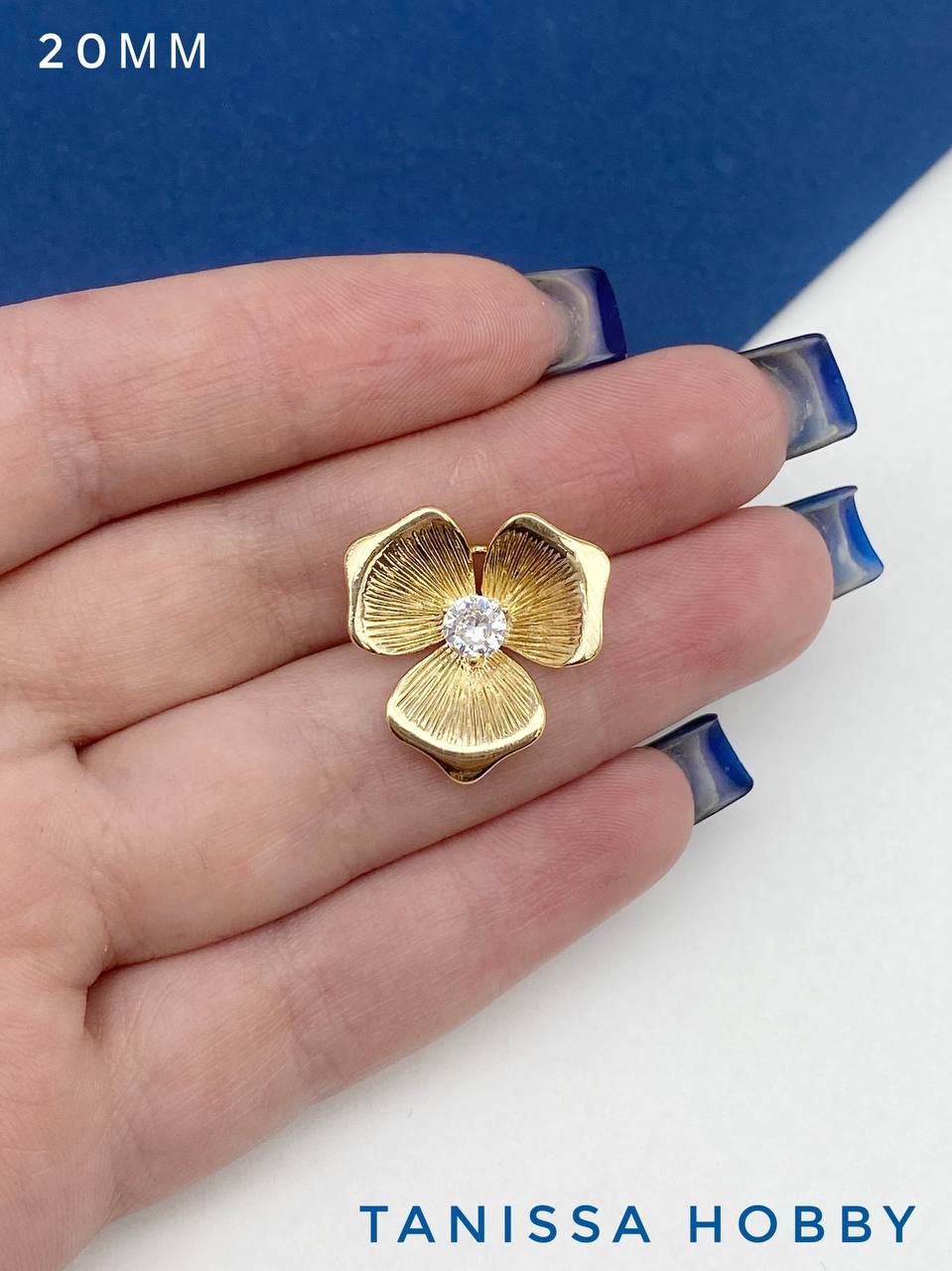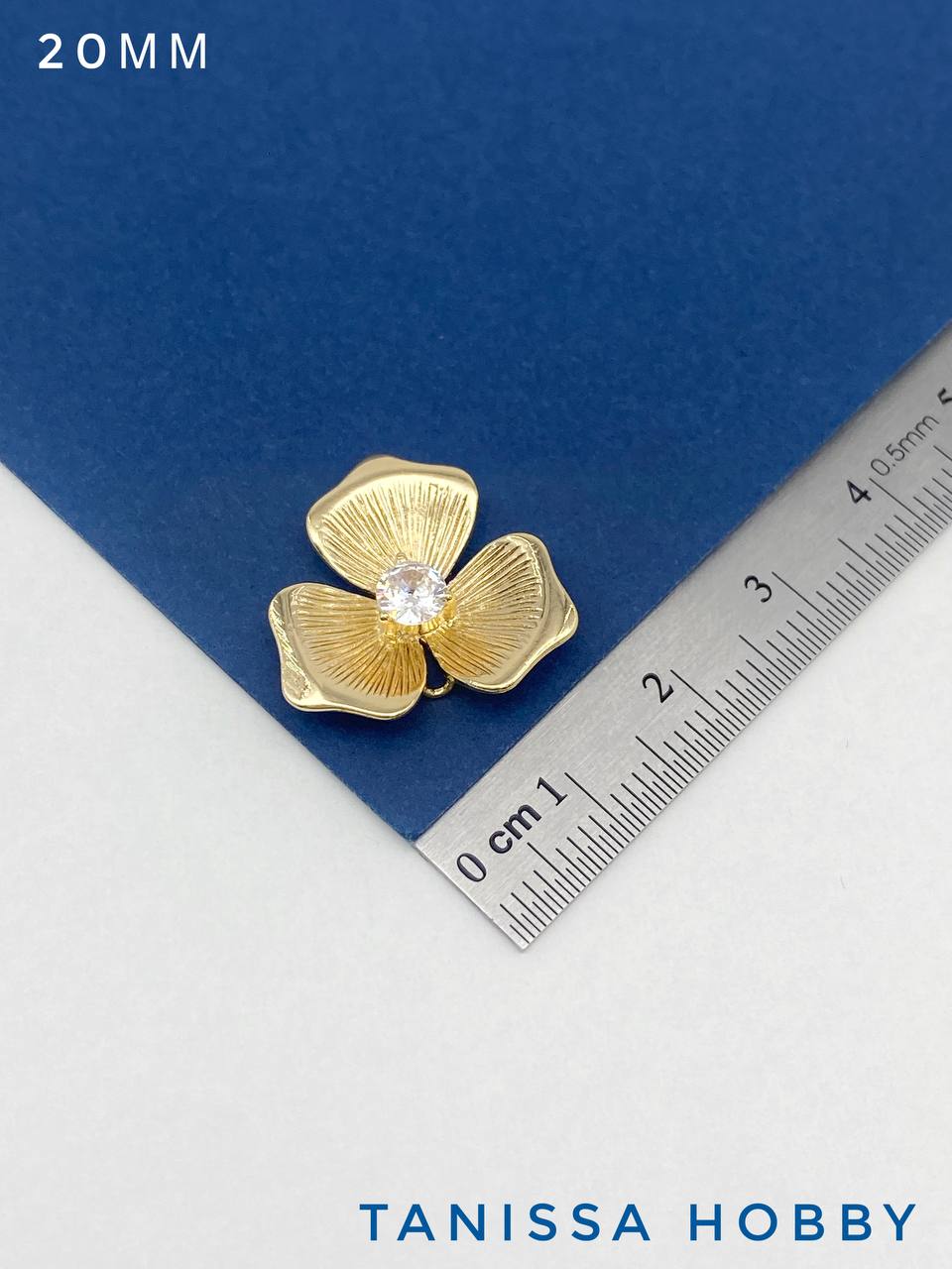 Коннектор цветок с фианитом, 20мм, позолота, С622