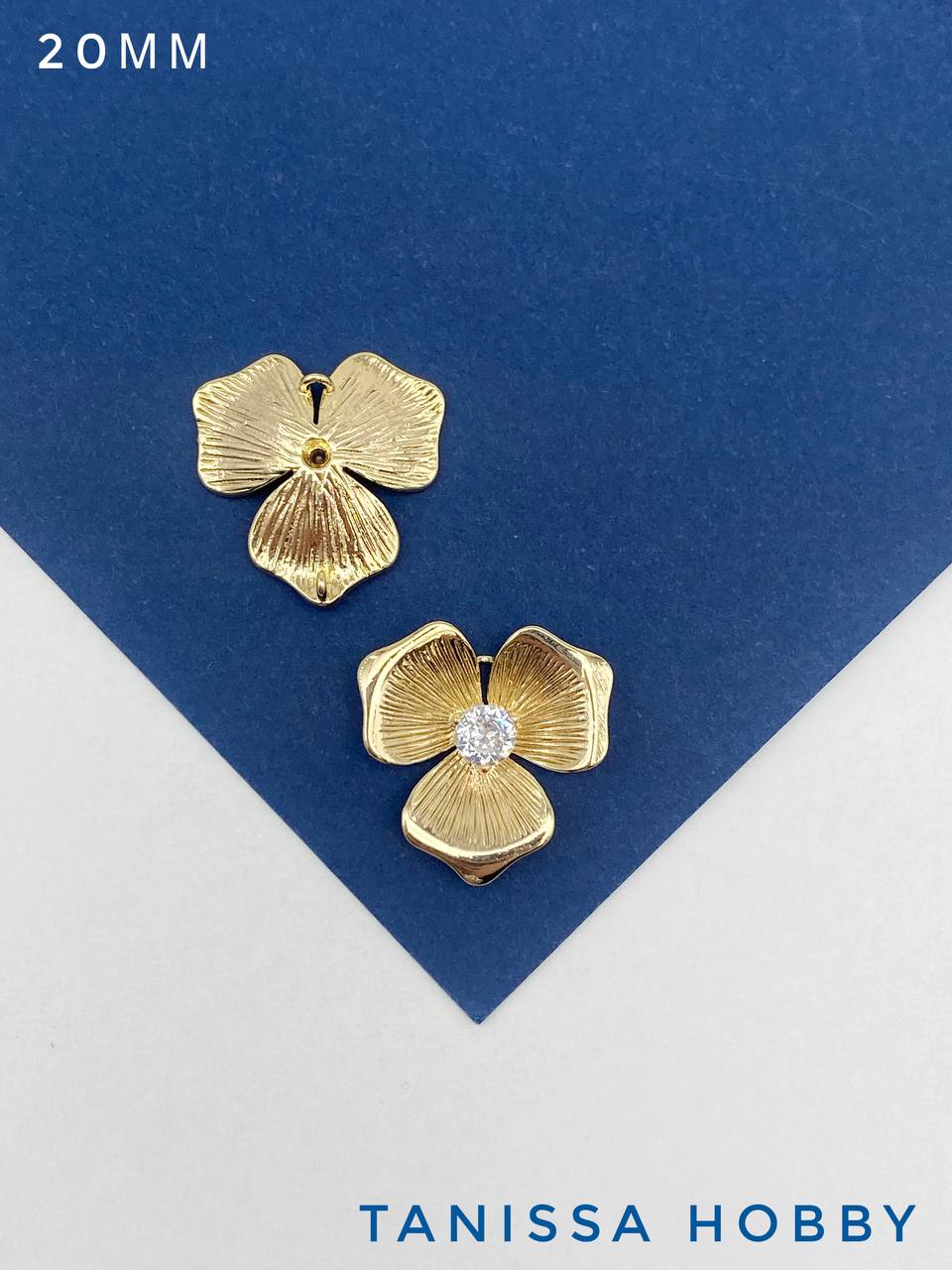 • Коннектор цветок с фианитом, 20мм, позолота, С622