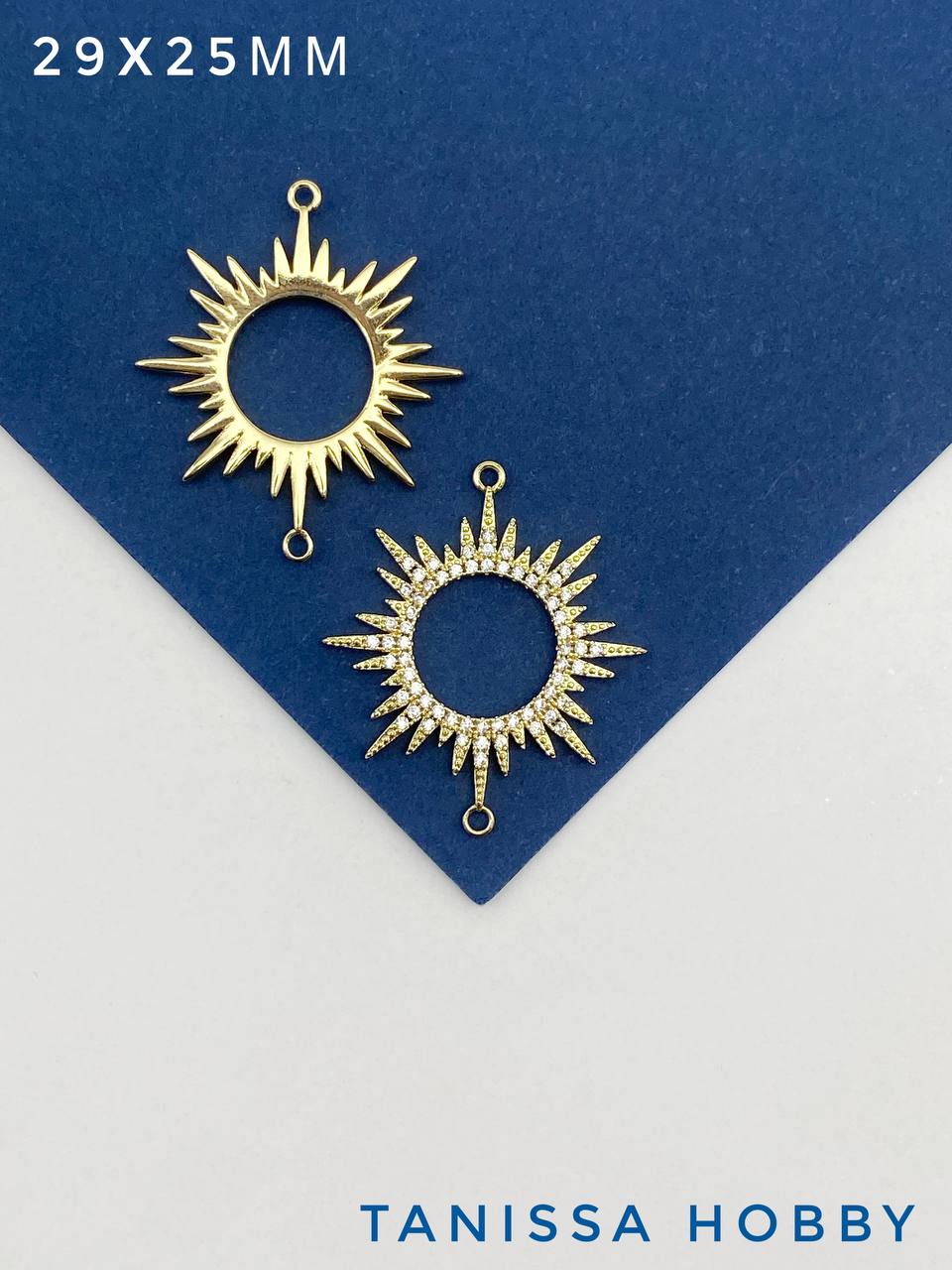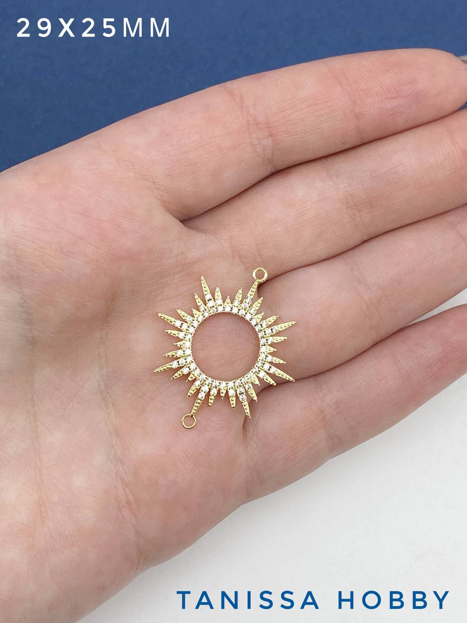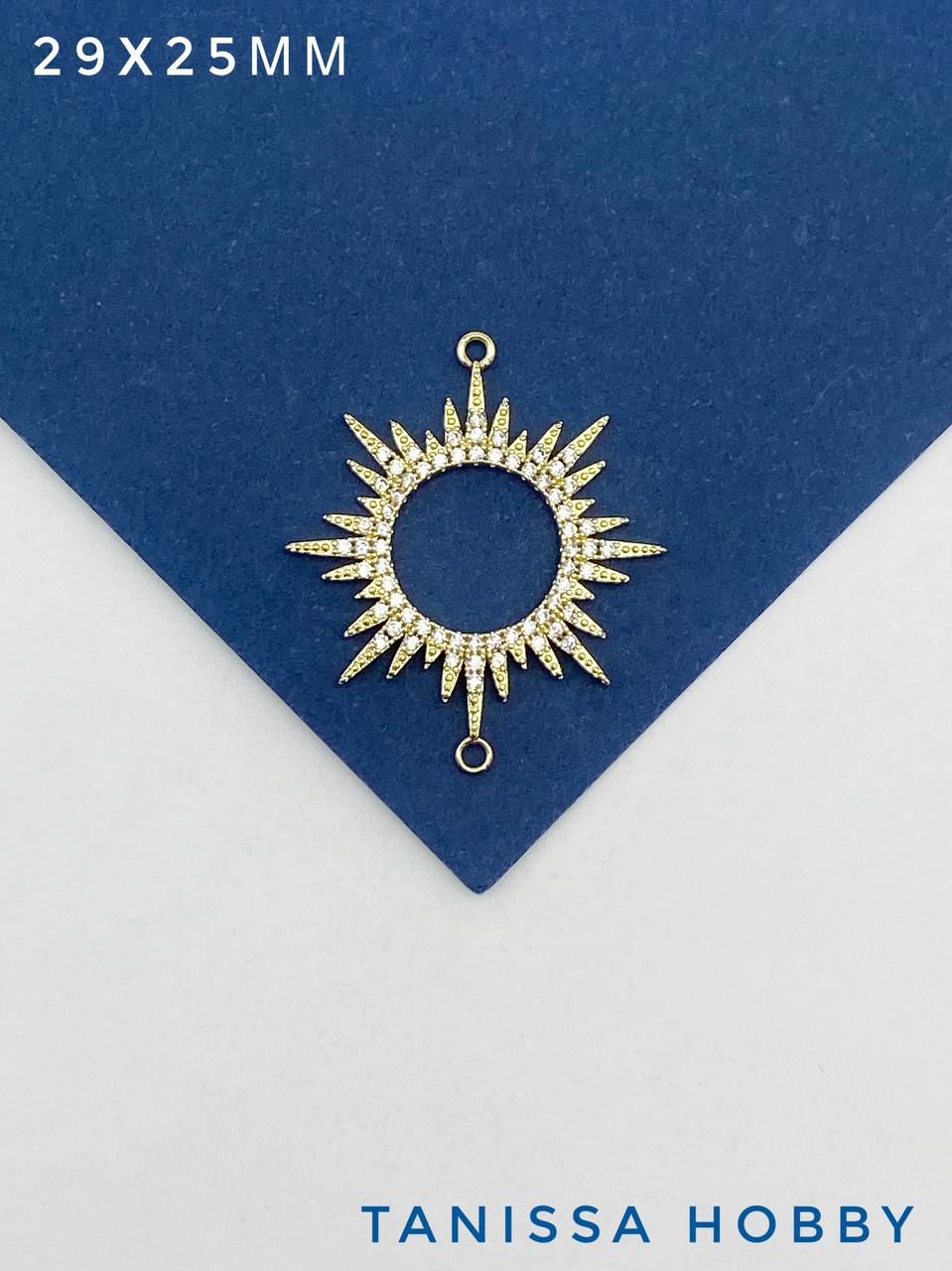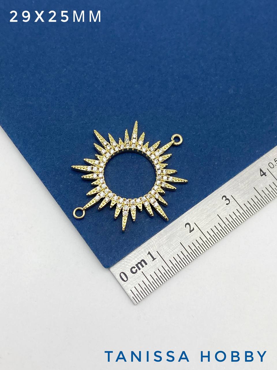 Коннектор солнце звезда с фианитами 29х25мм, позолота, С121