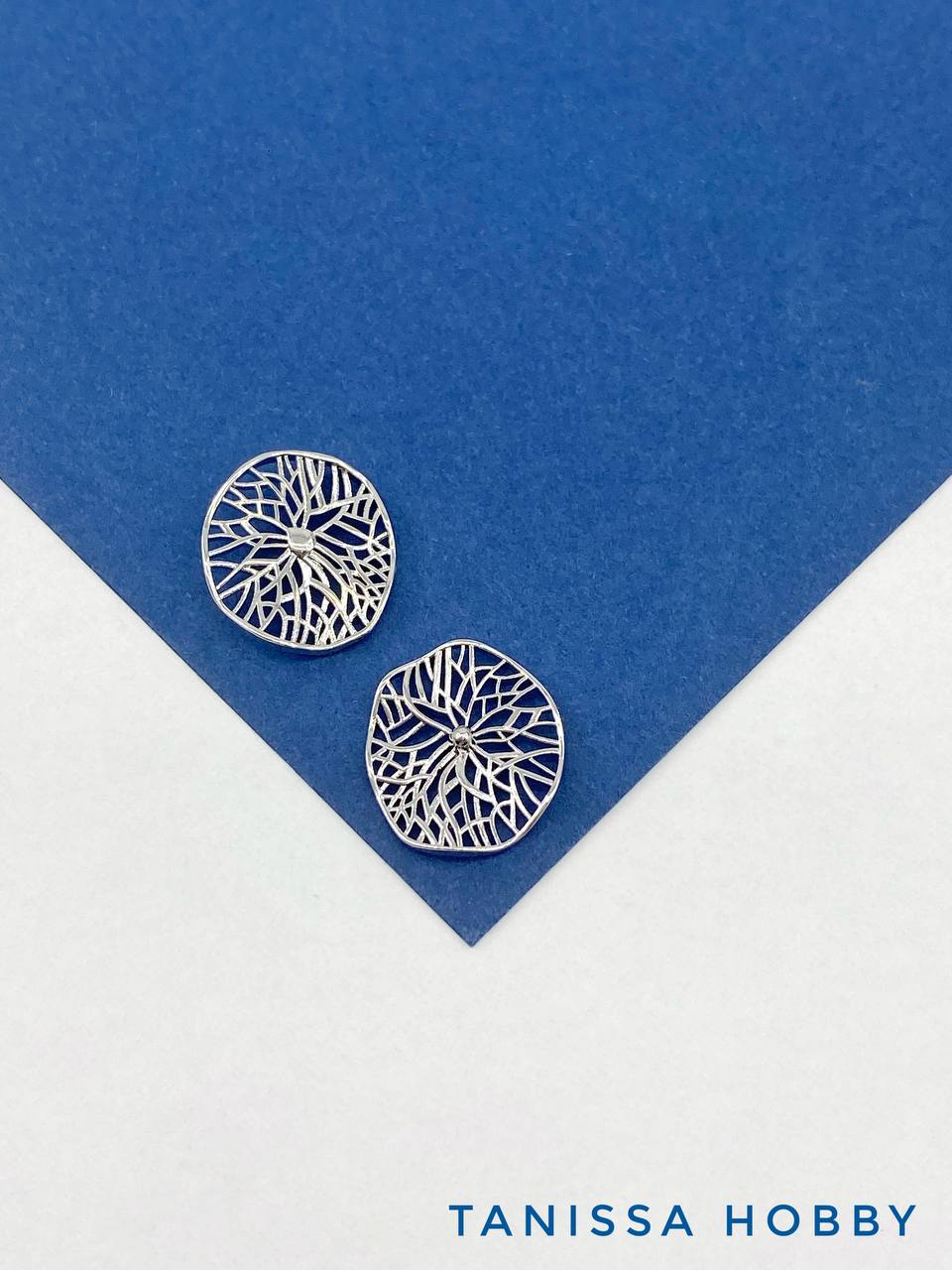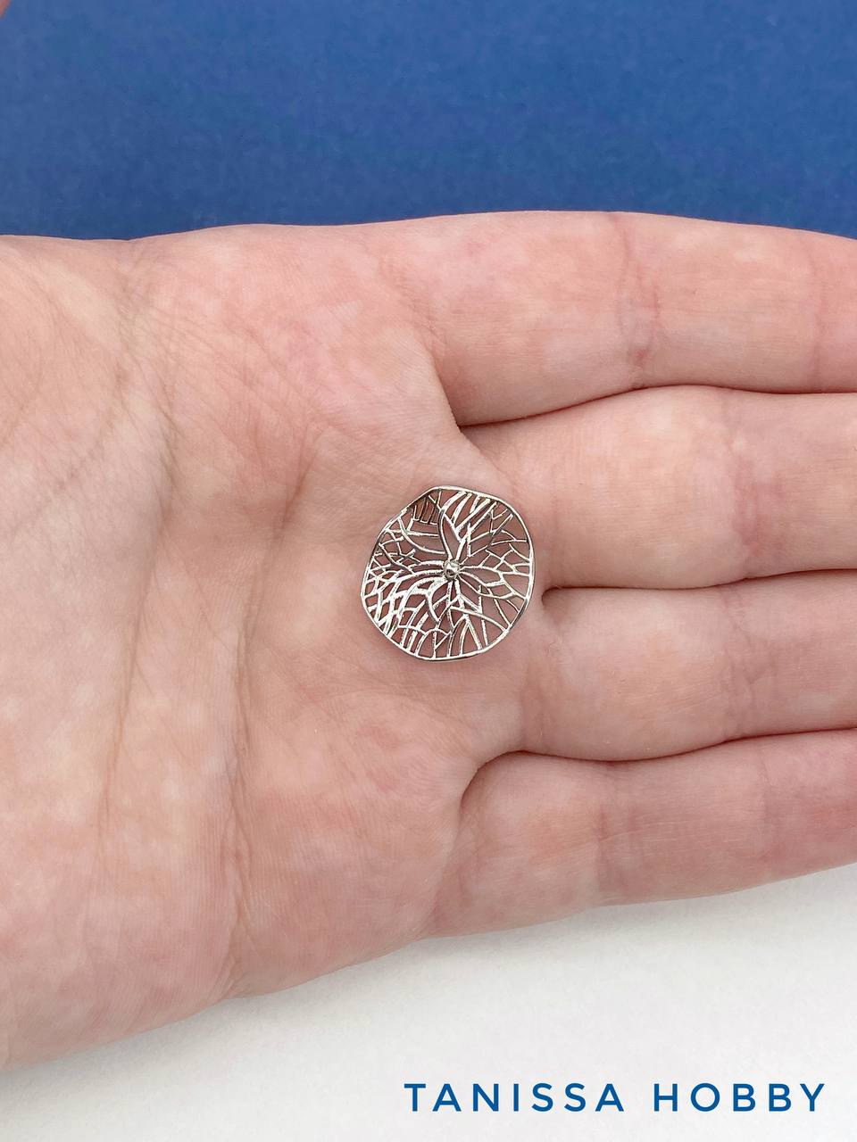 Коннектор ажурный круг мятый металл, 15мм, родий, Д426