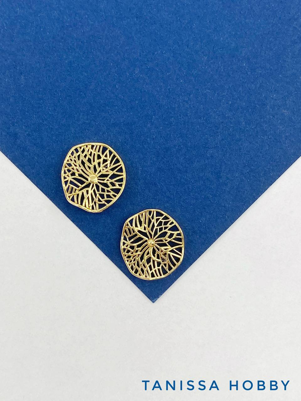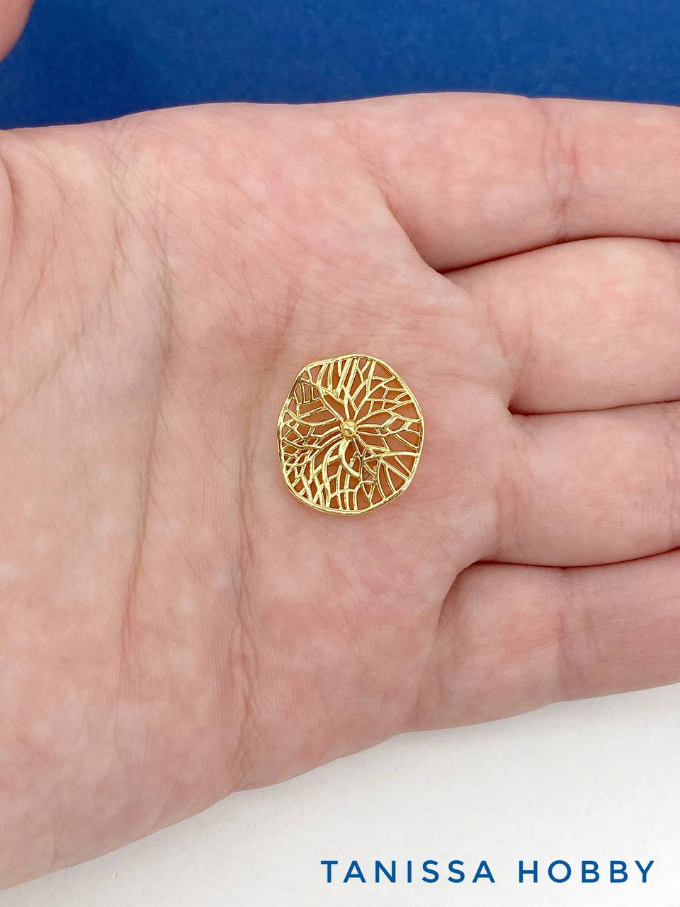 Коннектор ажурный круг мятый металл, 15мм, позолота, Д432
